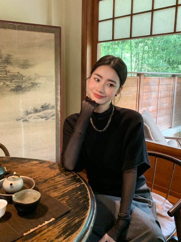 朦朧紙片人 純羊毛蝙蝠袖網紗打底套裝