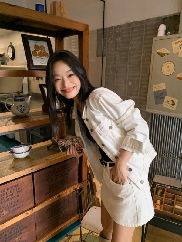 牛仔玩家 美式復古牛仔半裙 白
