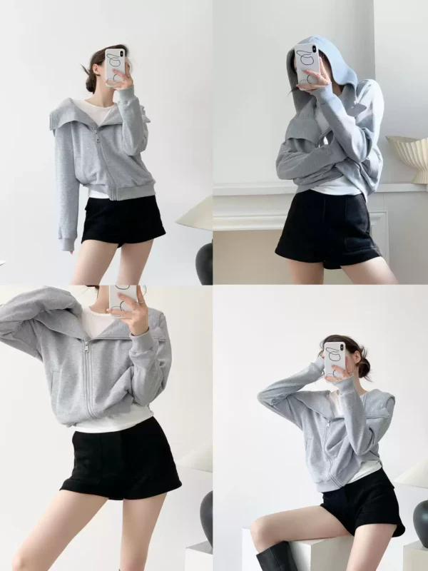 美式率性 不規則領純棉連帽外套 灰