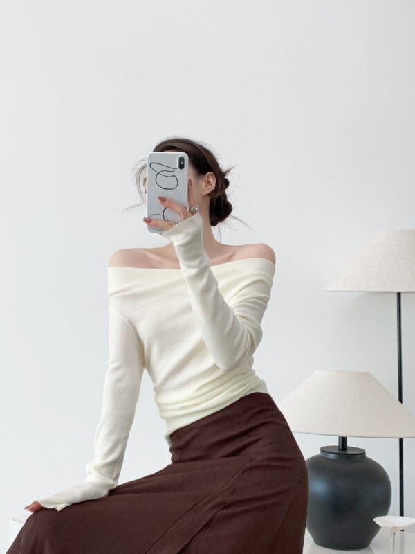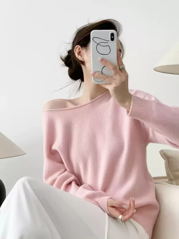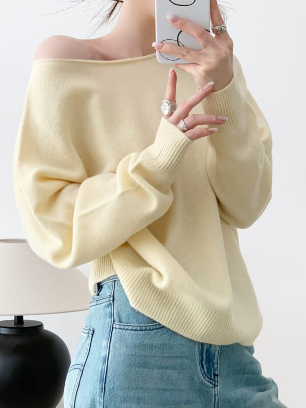 自由拉伸 裸感彈性慵懶羊毛蕩領衫