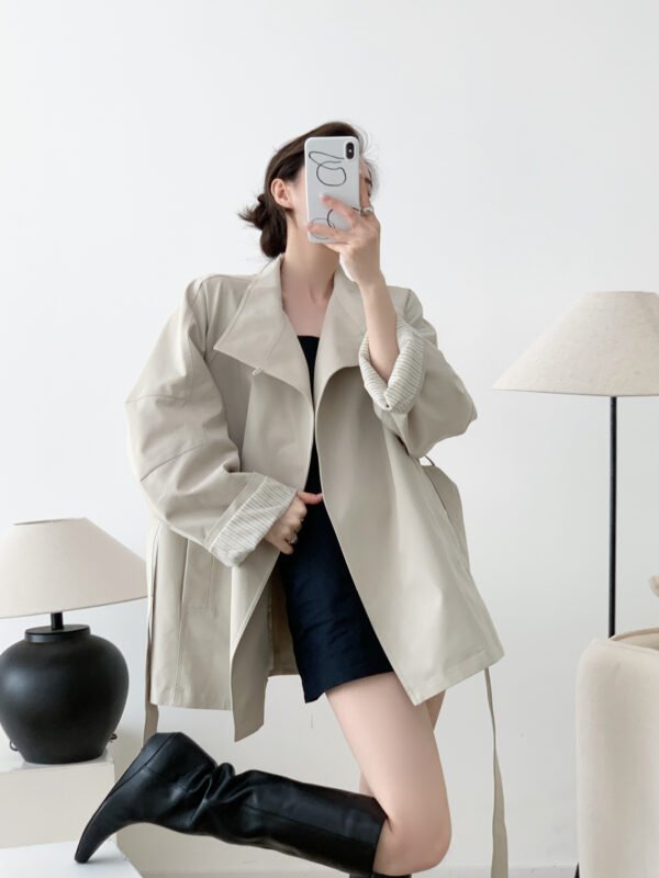 英倫情書 杏仁白色立領風衣外套