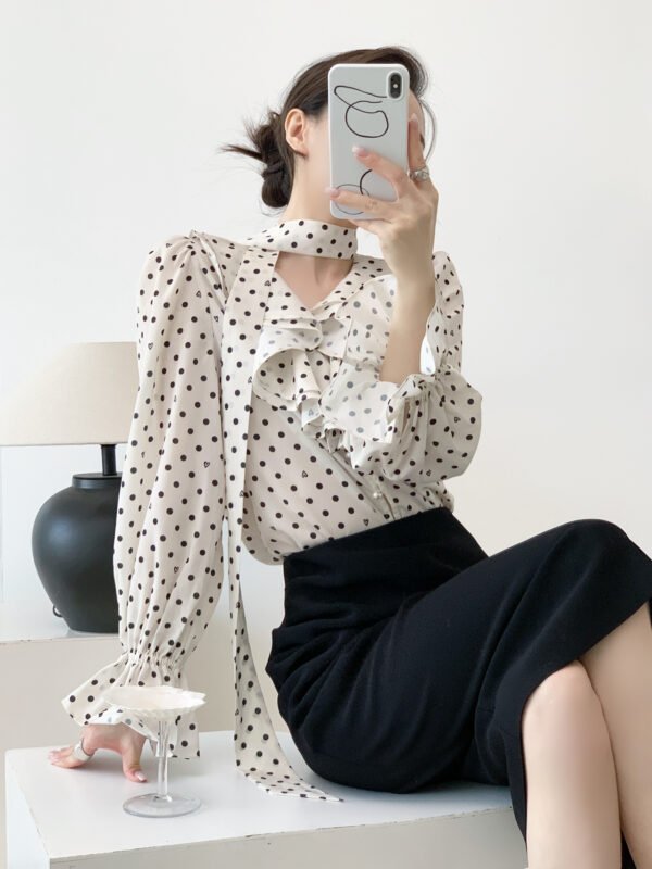 波爾卡 法式飄帶愛心波點襯衫