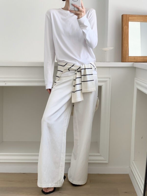 老錢知性 米白雙口袋唇直筒褲