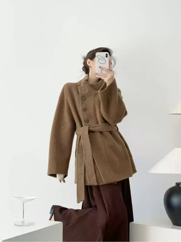 高奢剪裁 琥珀棕羊絨雙面呢短大衣