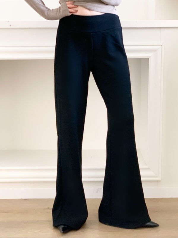 漫畫腿 鬆緊寬腰頭加絨黑微喇褲