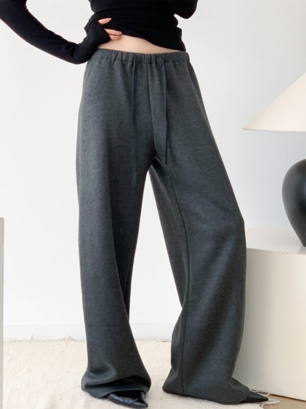 鬆弛通勤 高克重醋酸羊毛灰直筒褲