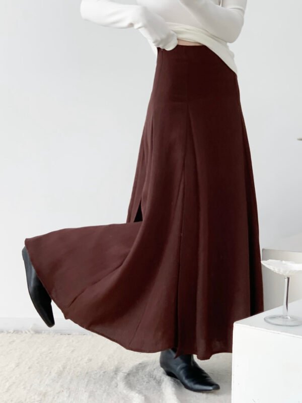 立體活頁設計 天絲亞麻茶褐開衩半裙