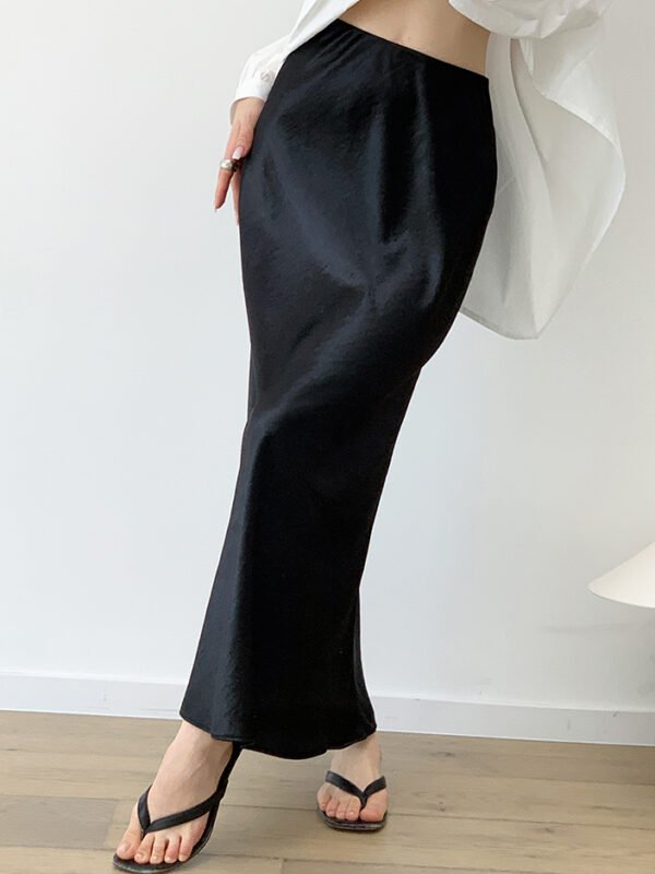 韓系赫本 光澤肌理感緞面黑半裙