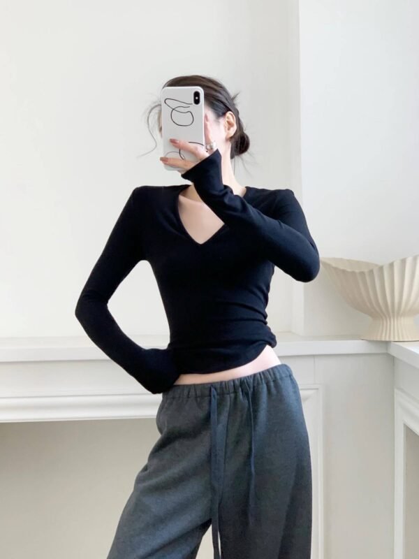 絲滑微絨 基本V領黑打底針織衫