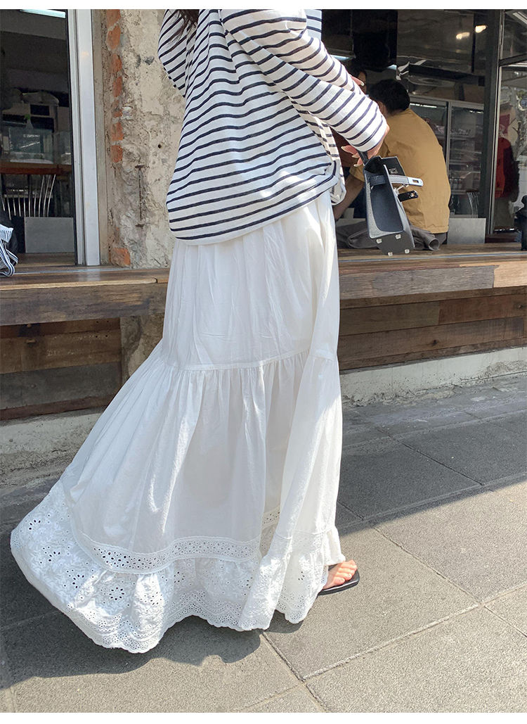 氛圍白裙 法式鏤空蕾絲蛋糕半裙 數量