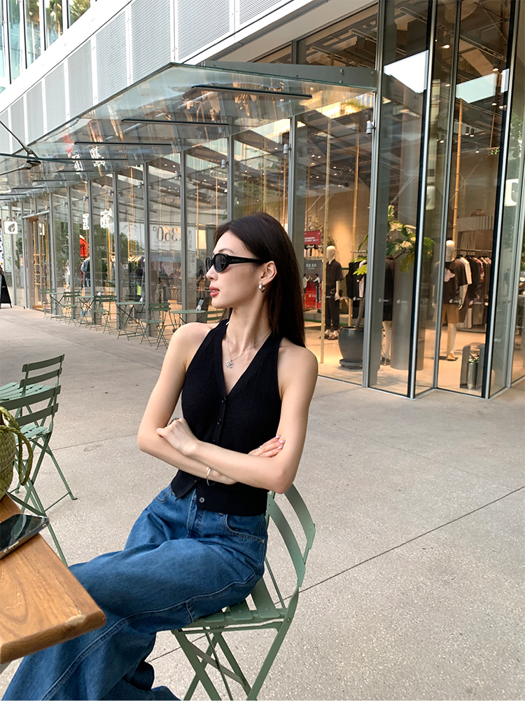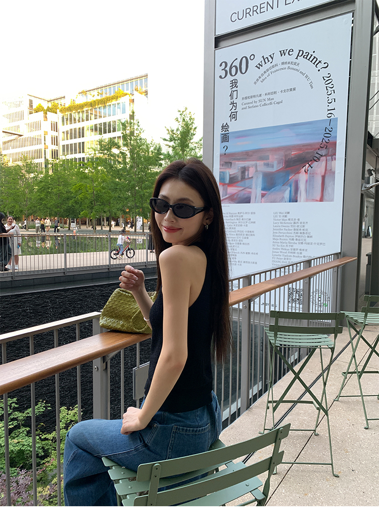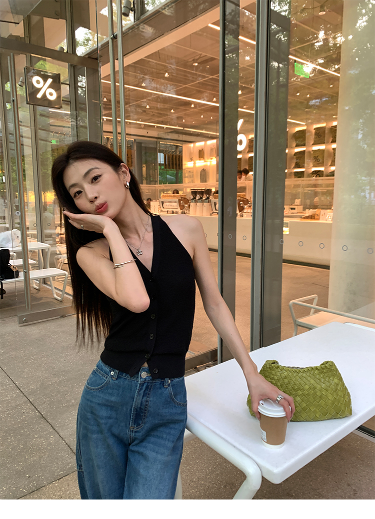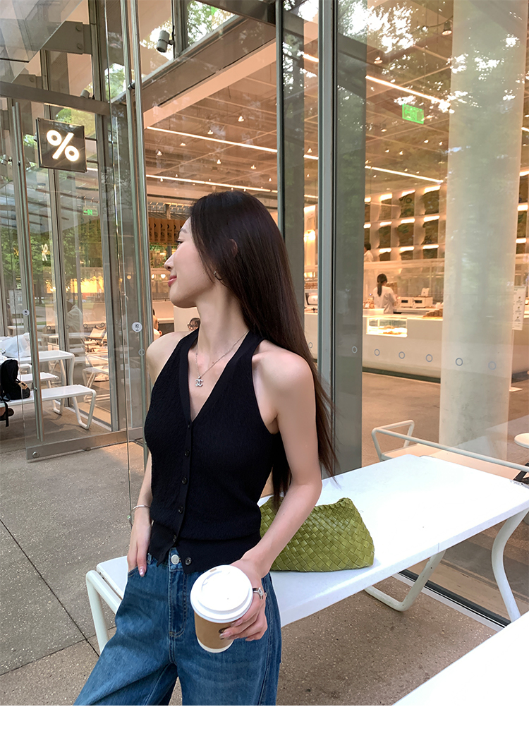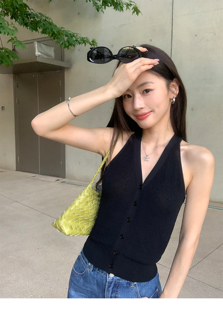 溫柔狙擊 飄帶鏤空坎肩上衣 黑