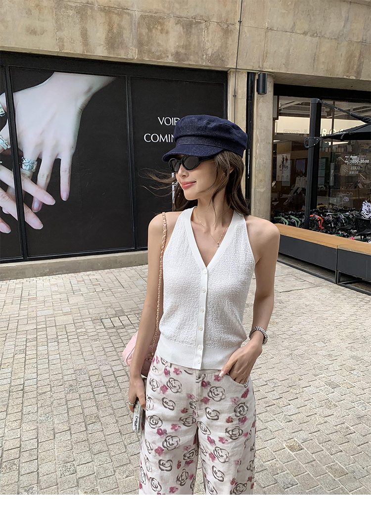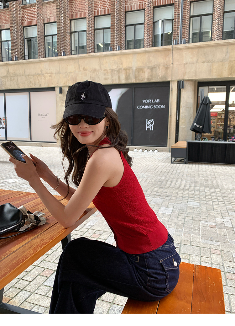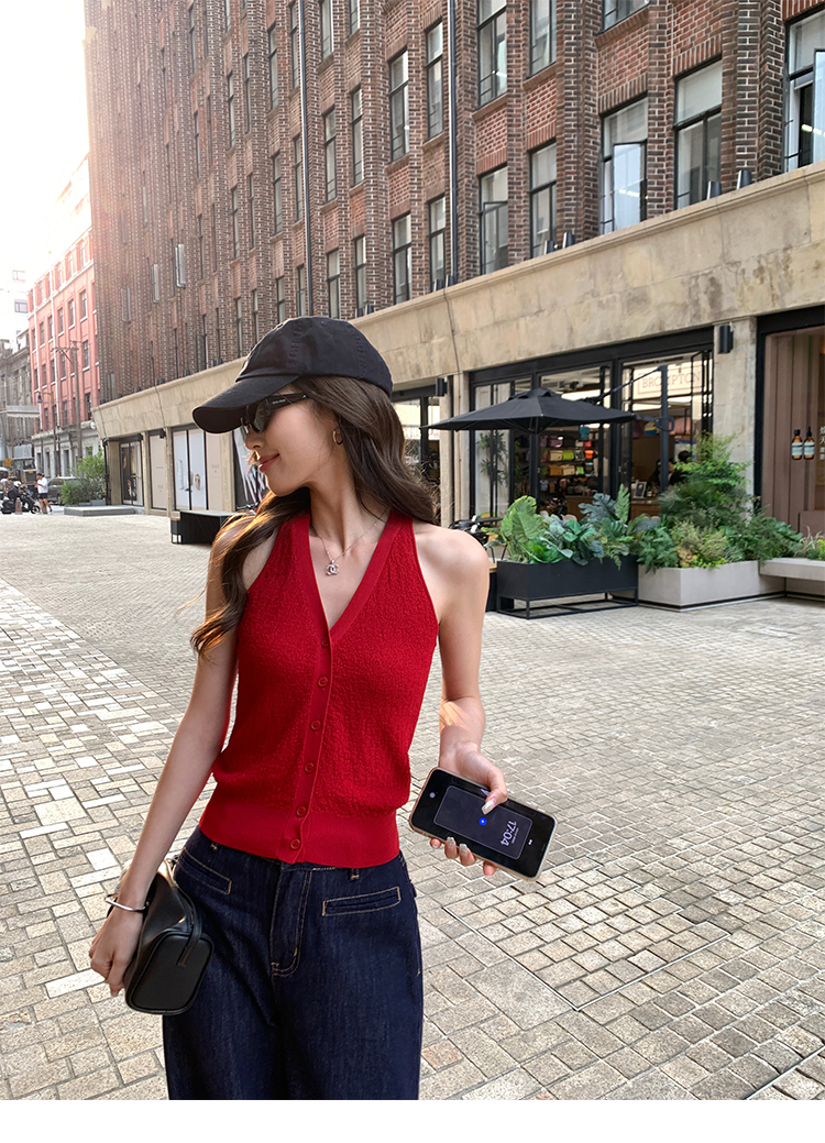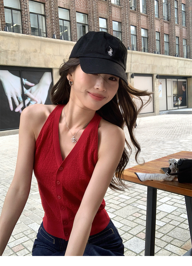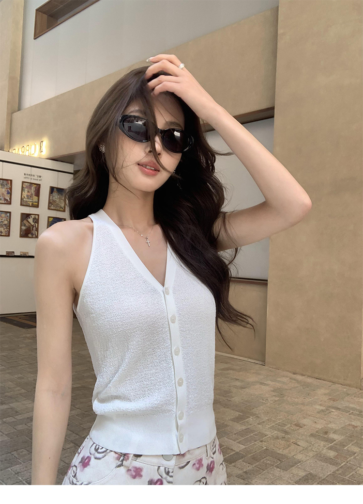 溫柔狙擊 飄帶鏤空坎肩上衣 黑