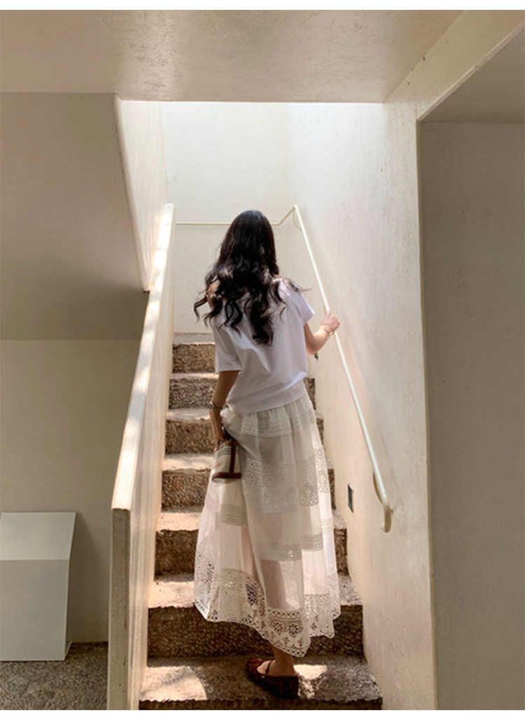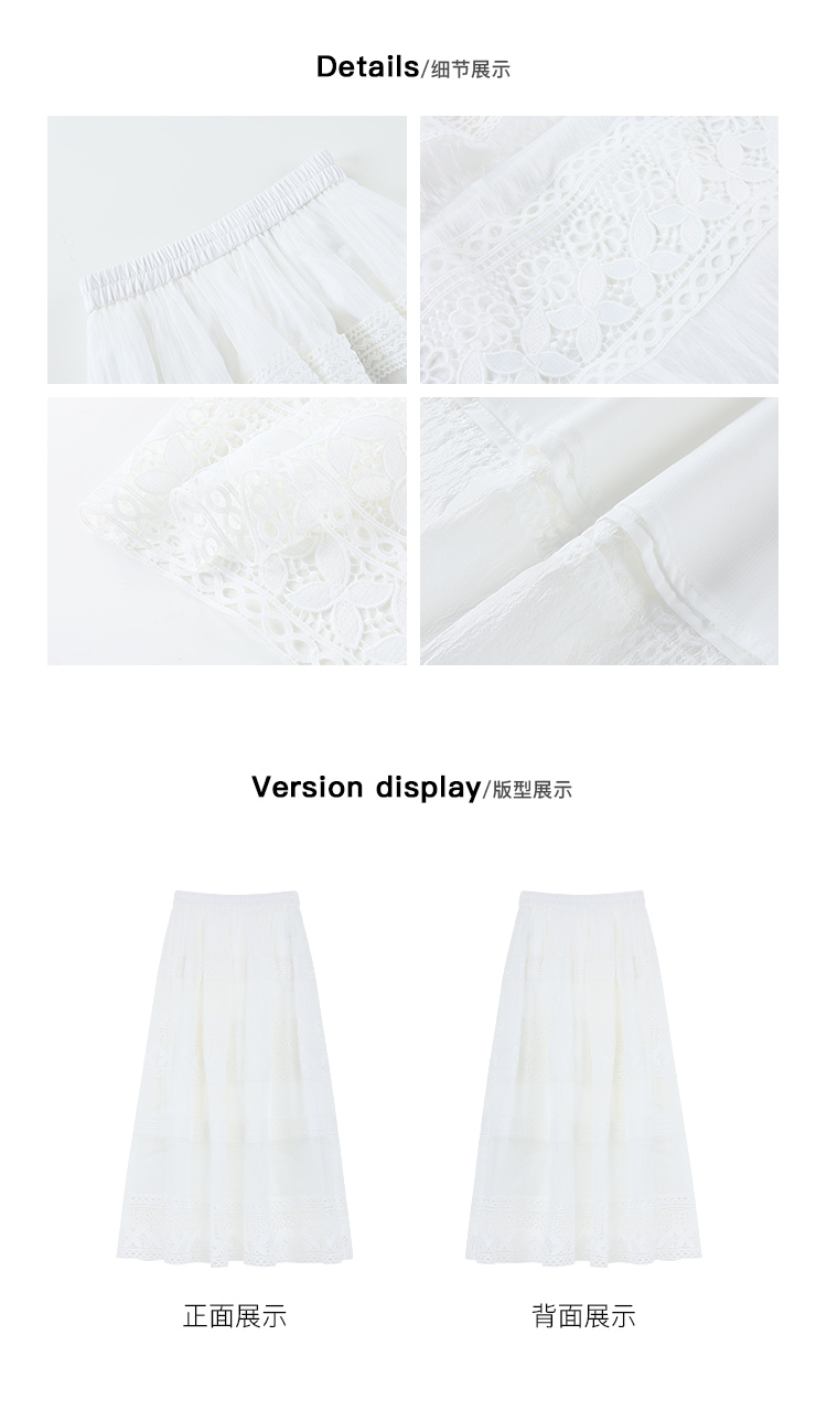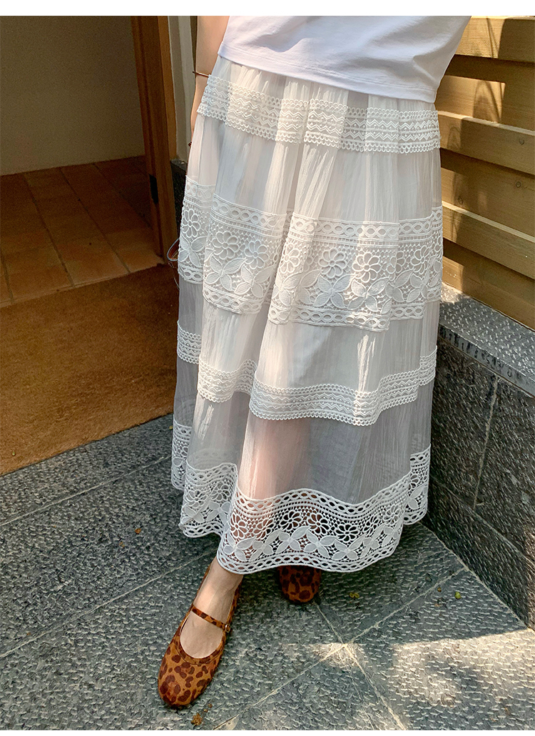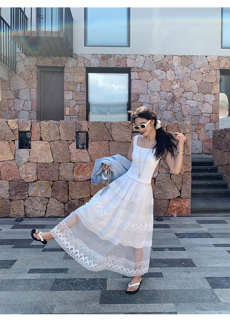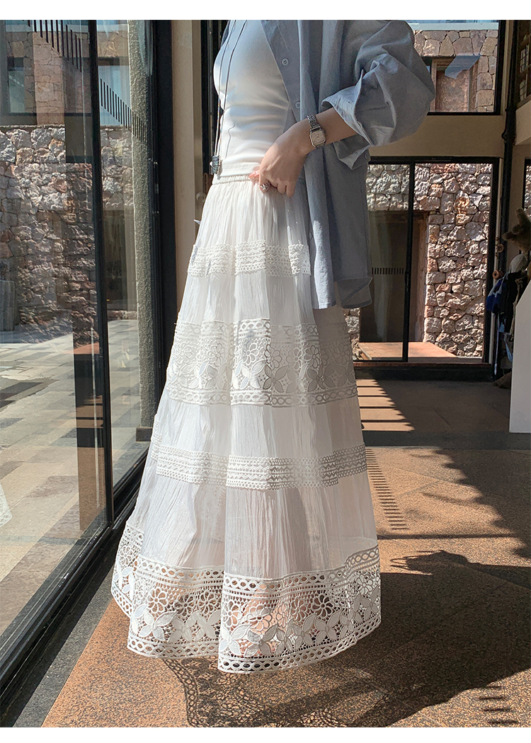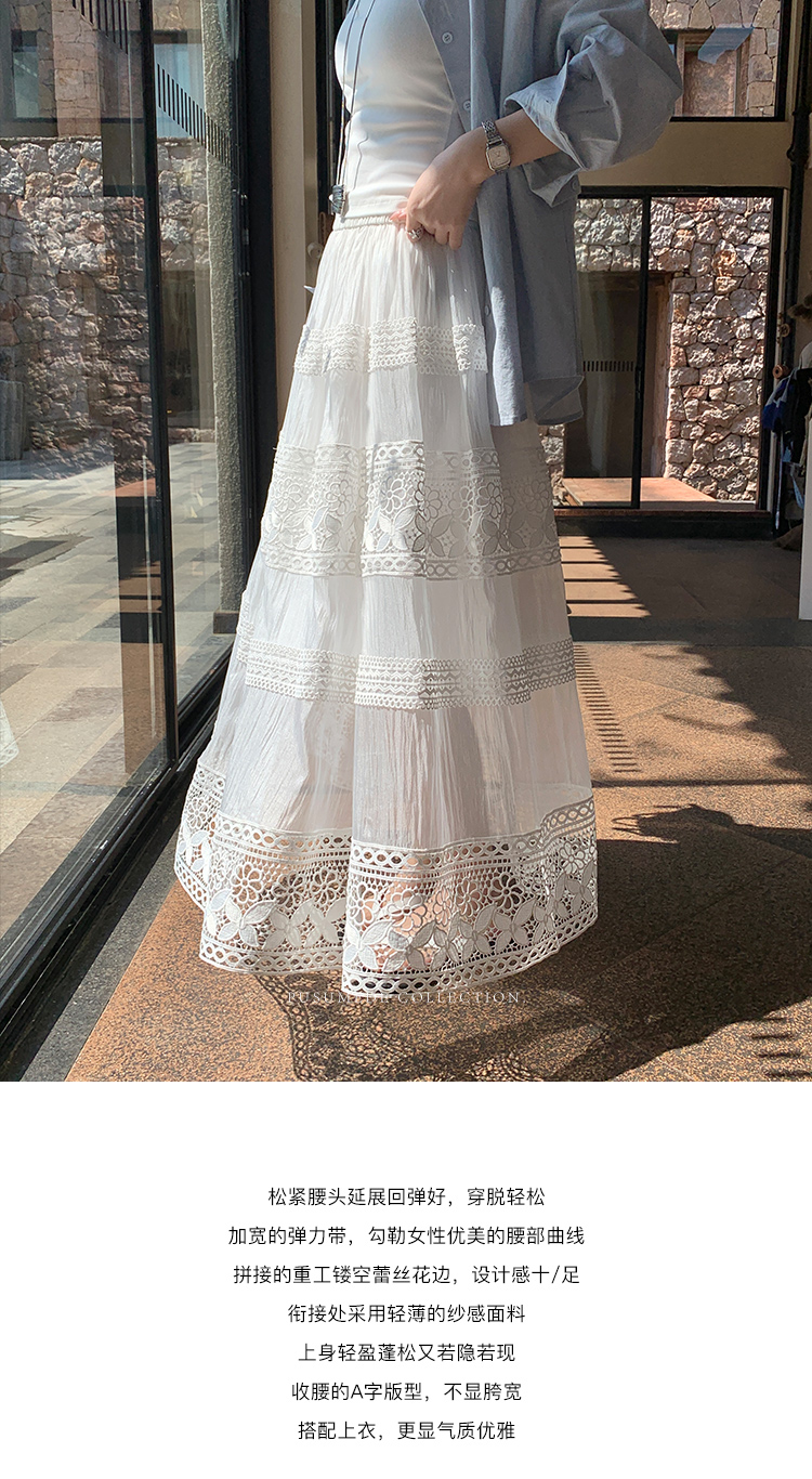 氛圍白裙 法式鏤空蕾絲蛋糕半裙