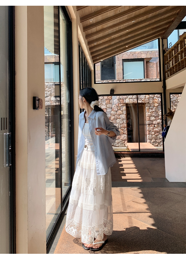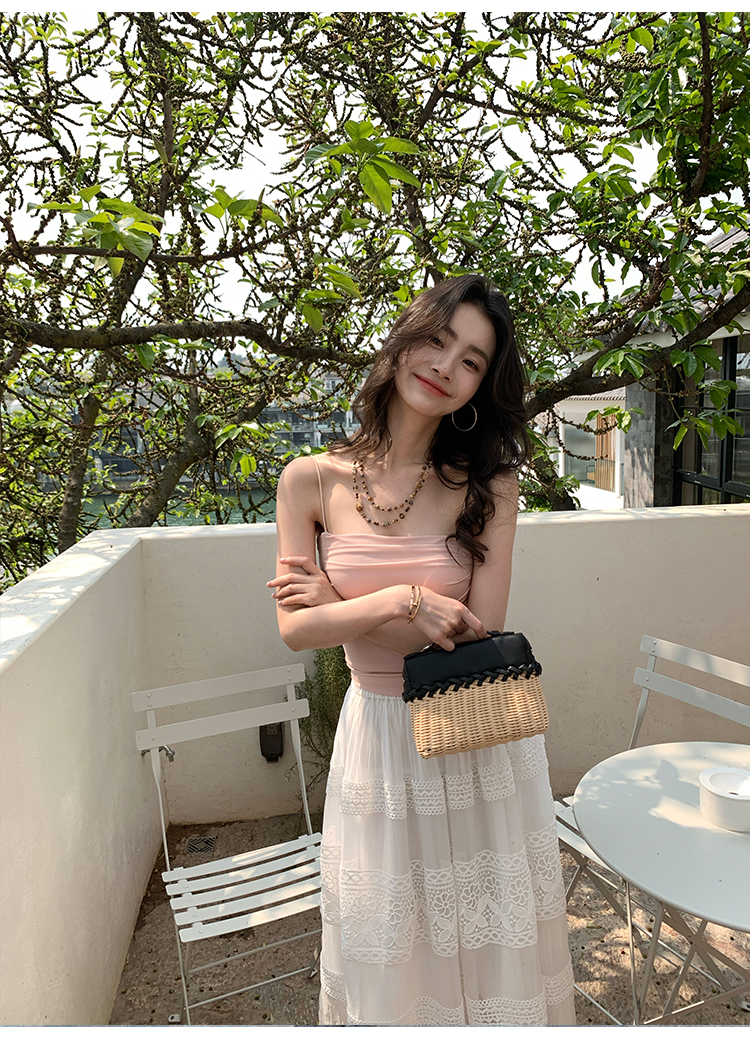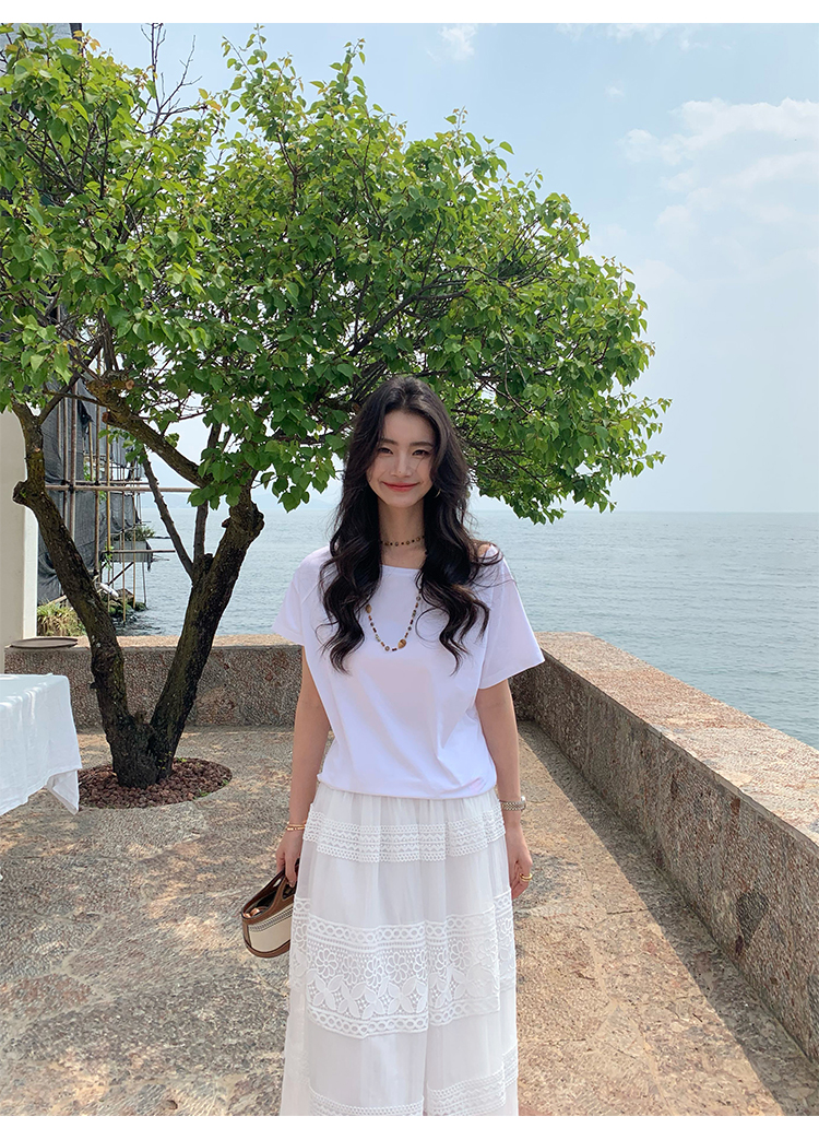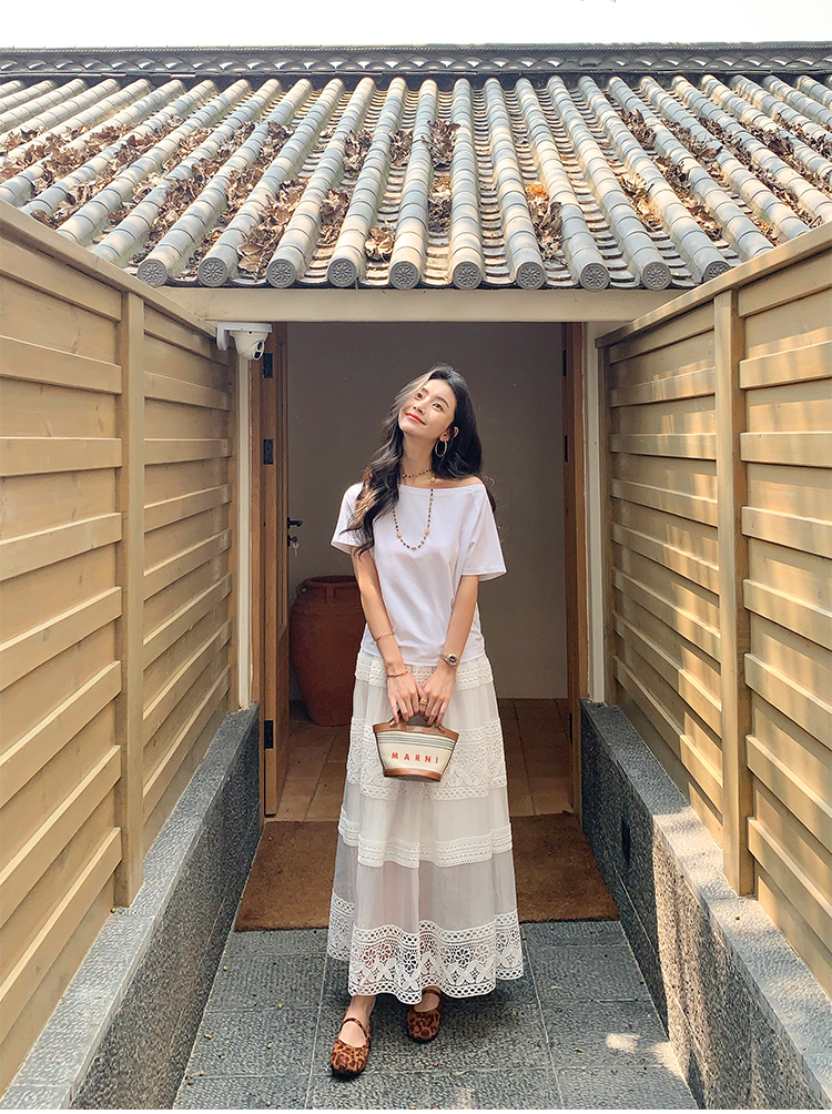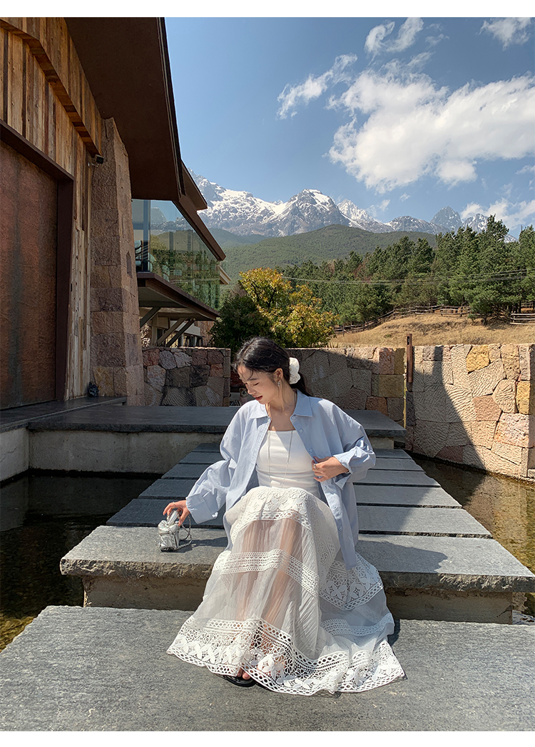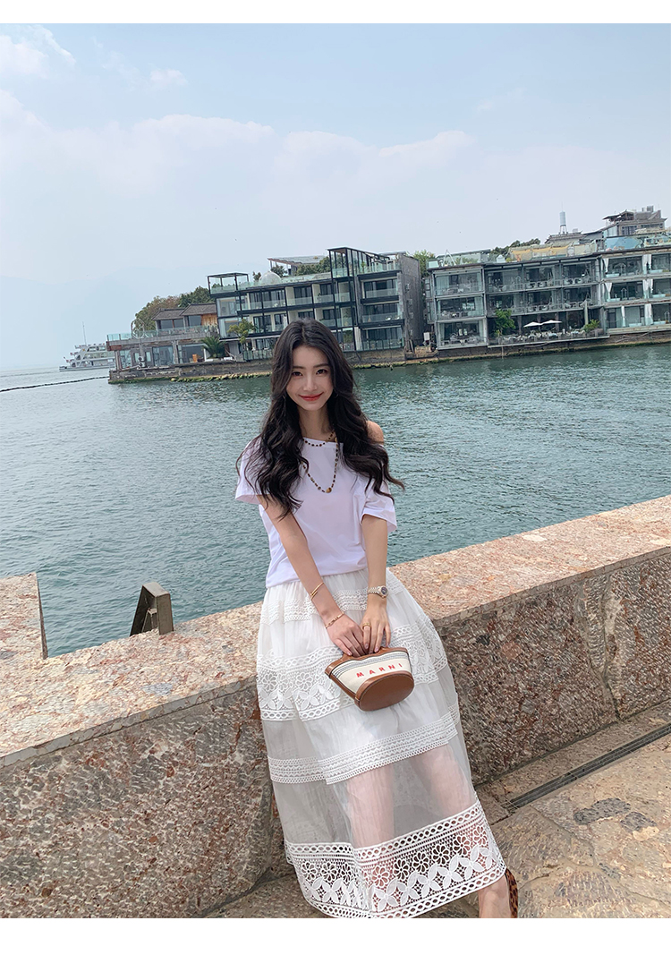氛圍白裙 法式鏤空蕾絲蛋糕半裙