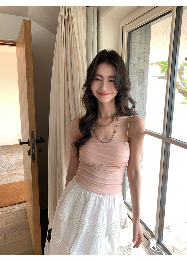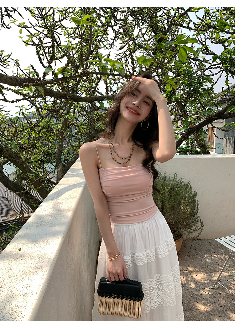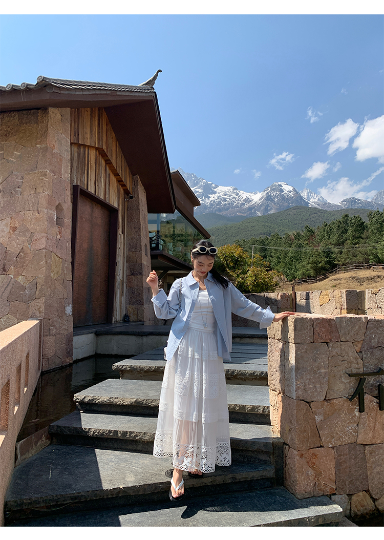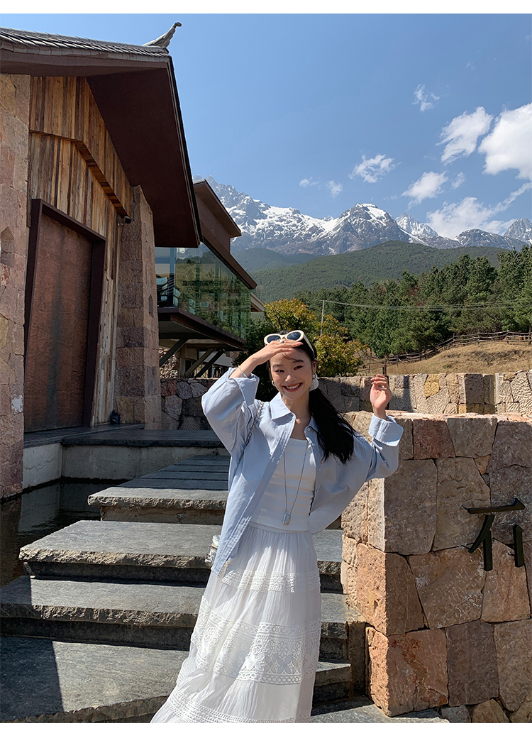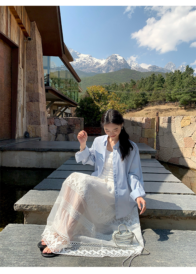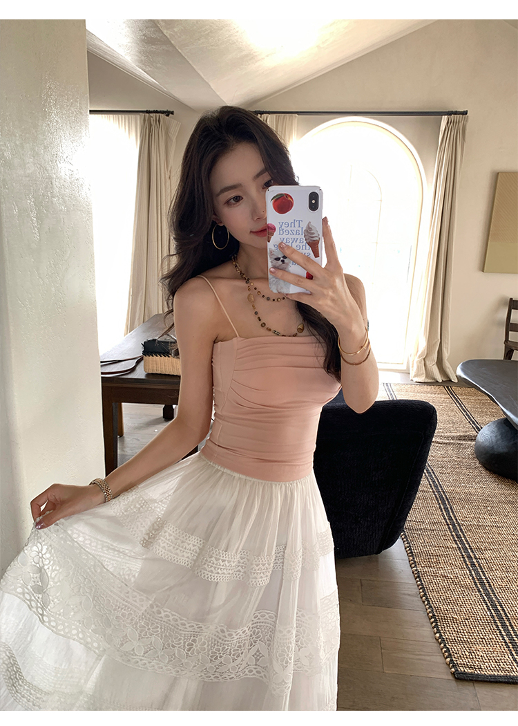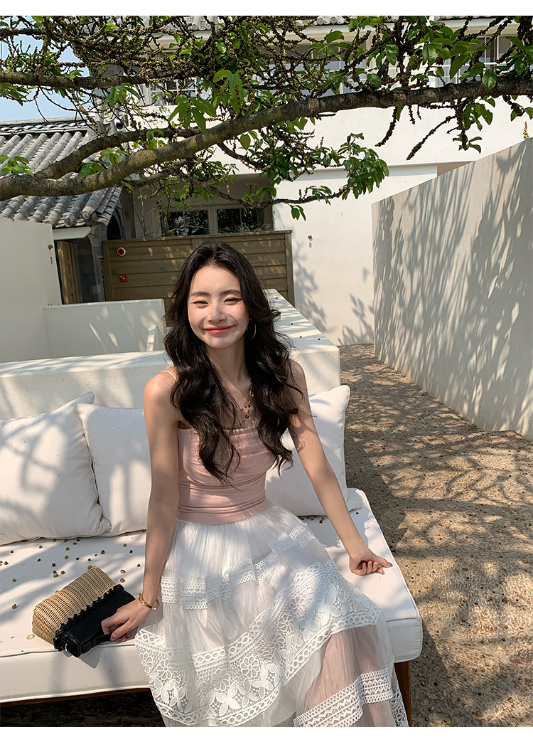 氛圍白裙 法式鏤空蕾絲蛋糕半裙