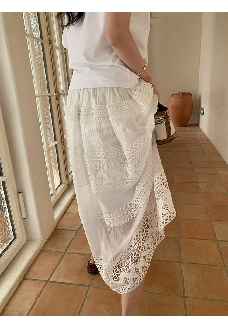 輕薄紗感 重工鏤空蕾絲半裙 數量