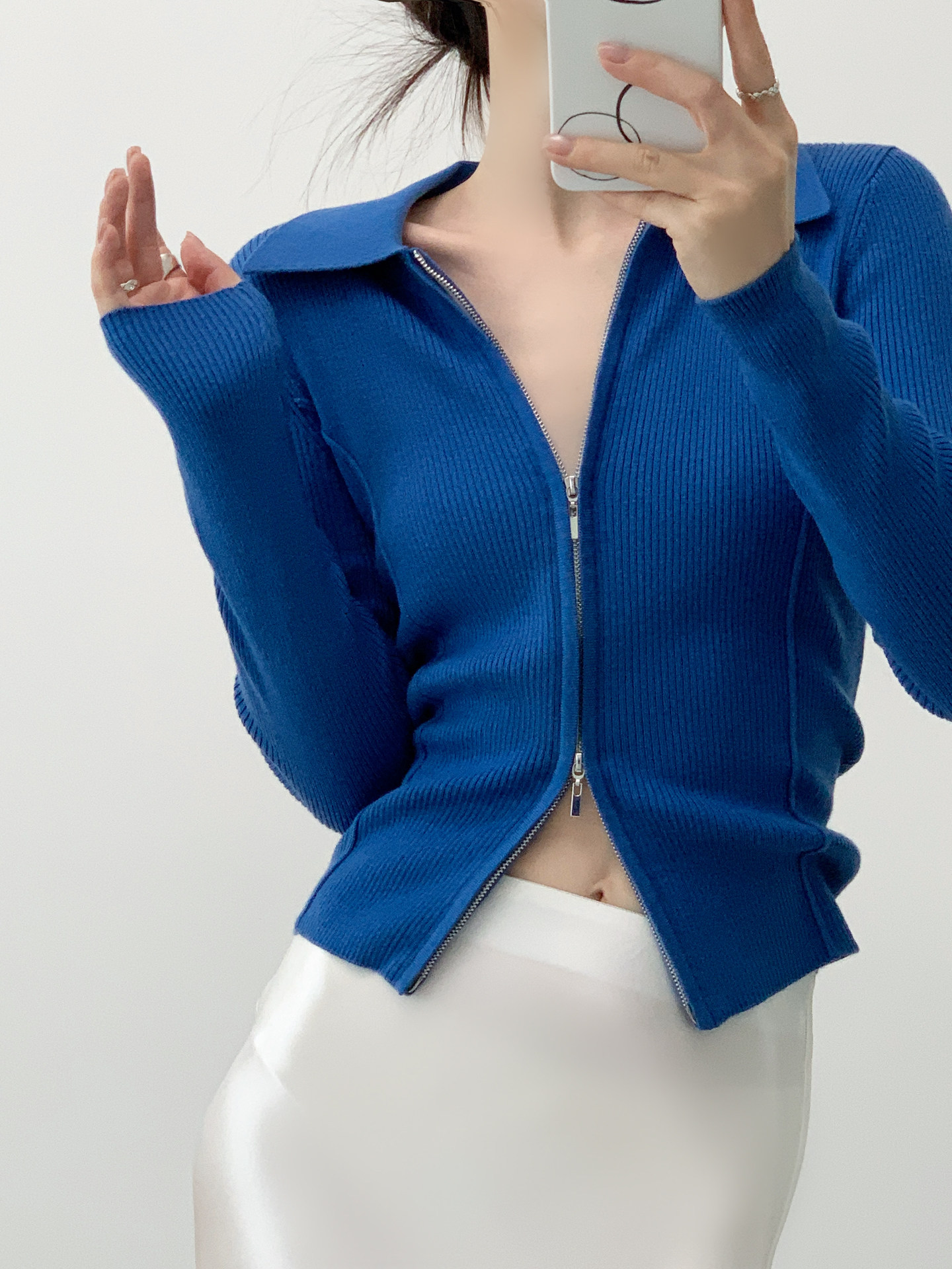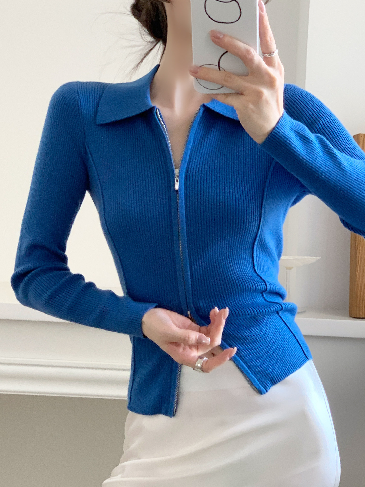 採用進口斯托爾電腦橫機14針,整件上機耗時85分鐘,採用20針盤套口,不僅有羊毛的舒適親膚,也有羊毛的光潔,感受柔軟與細膩,是一種沒有束縛的溫暖感受,坑條設計貼合身材曲線,極度修飾人體曲線,Polo領開襟衫設計,既可以外穿,又可以當打底,多種穿著方式更好搭配,雙開拉鍊設計,更添時尚濃度,腰側弧線設計,在修飾腰身的同時,視覺上更加顯苗條。
