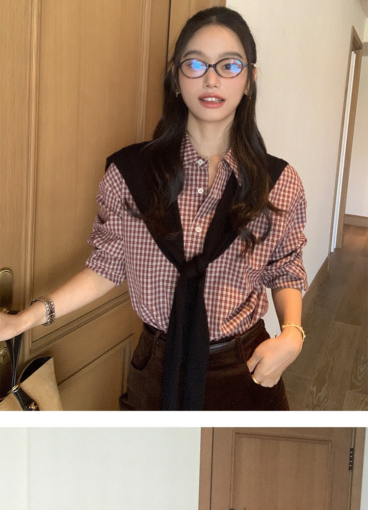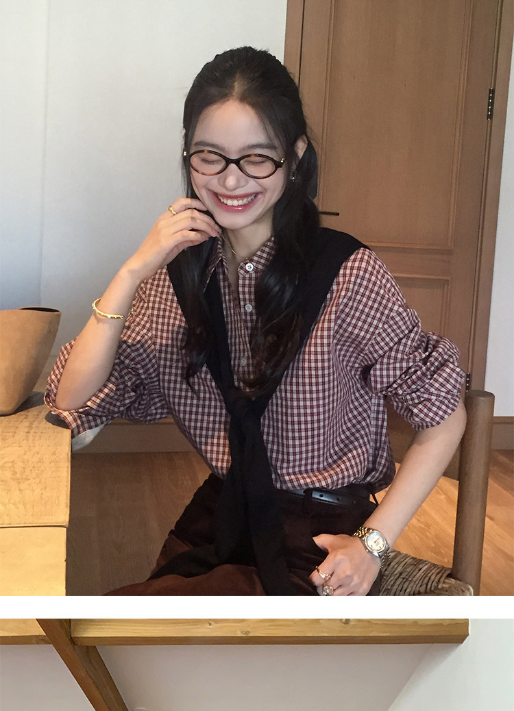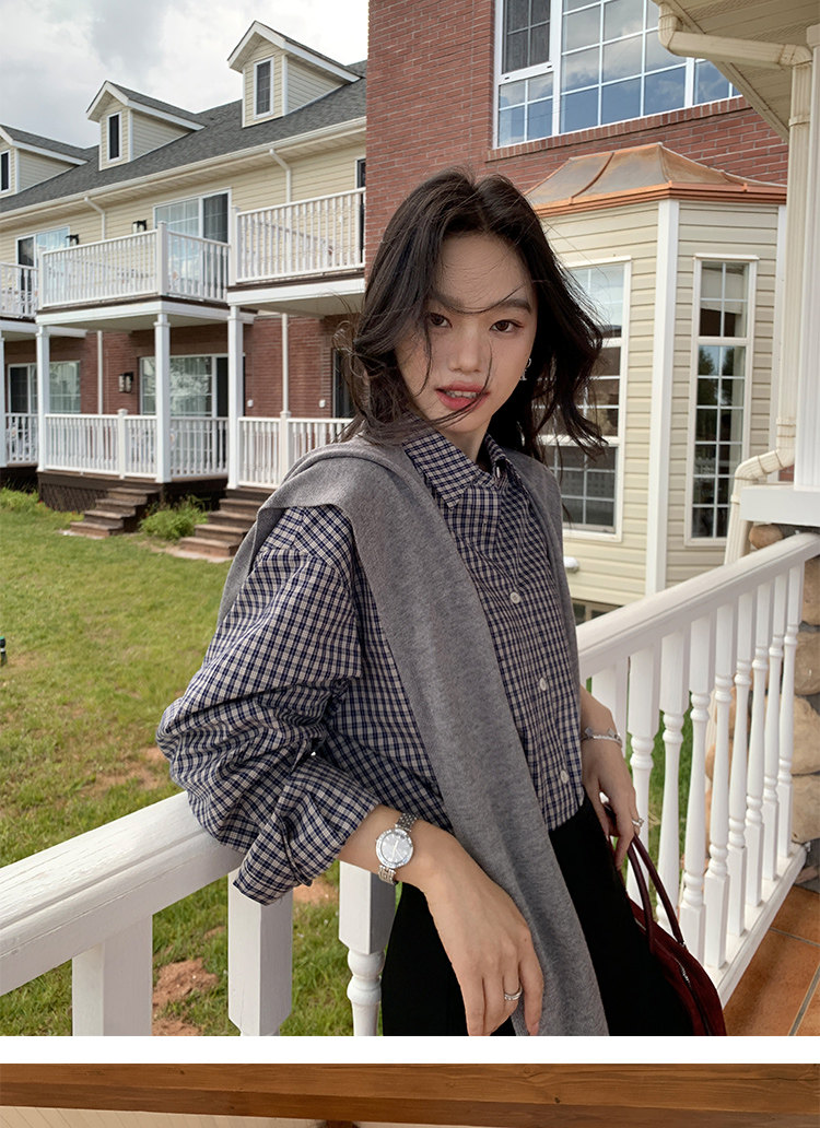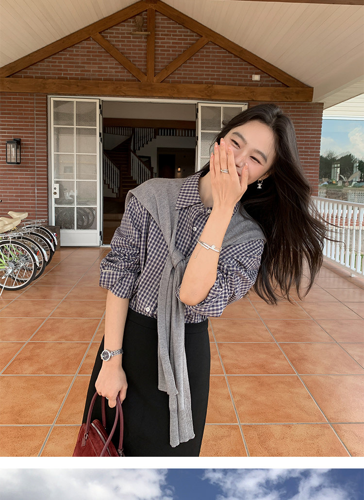 週末市場 格紋長袖襯衫 紫粉