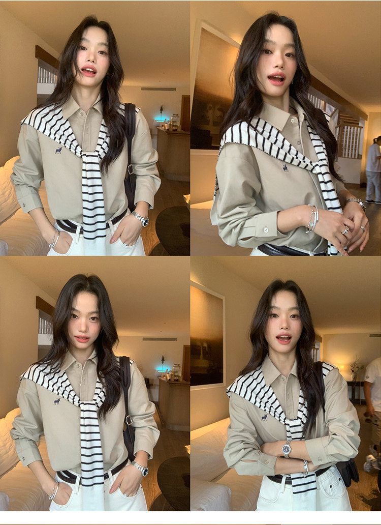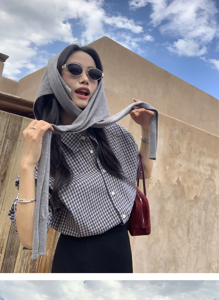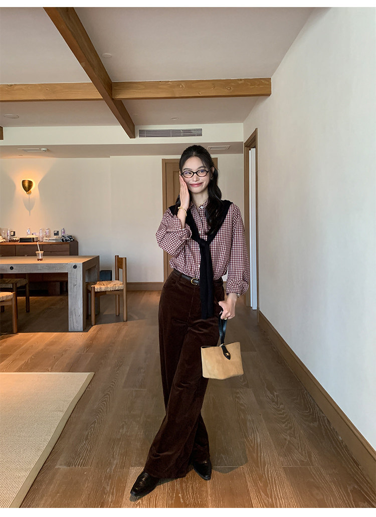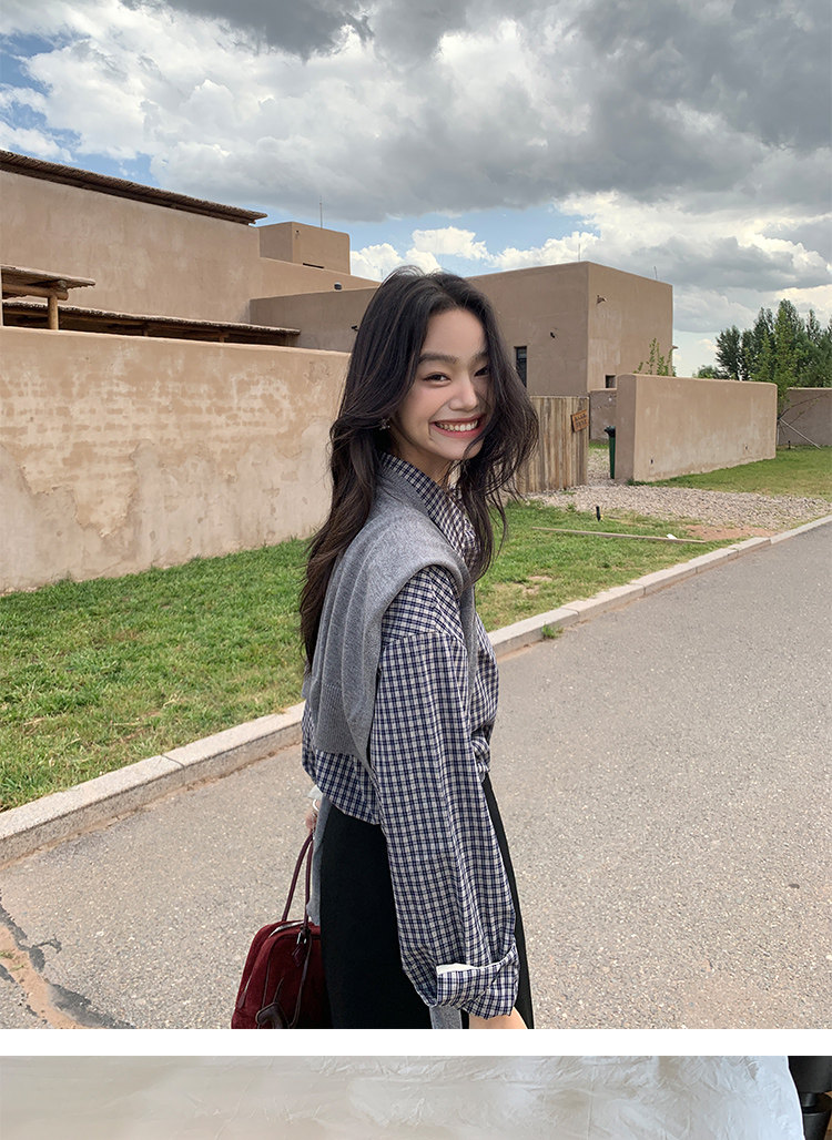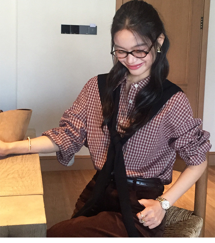 週末市場 格紋長袖襯衫 紫粉