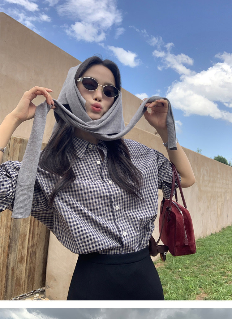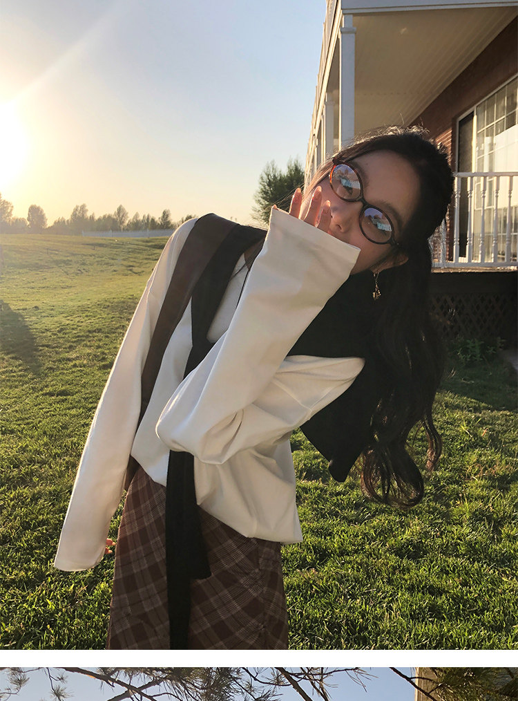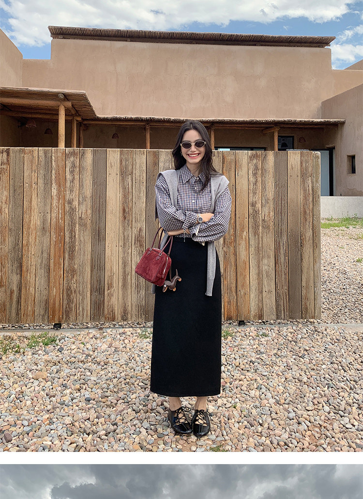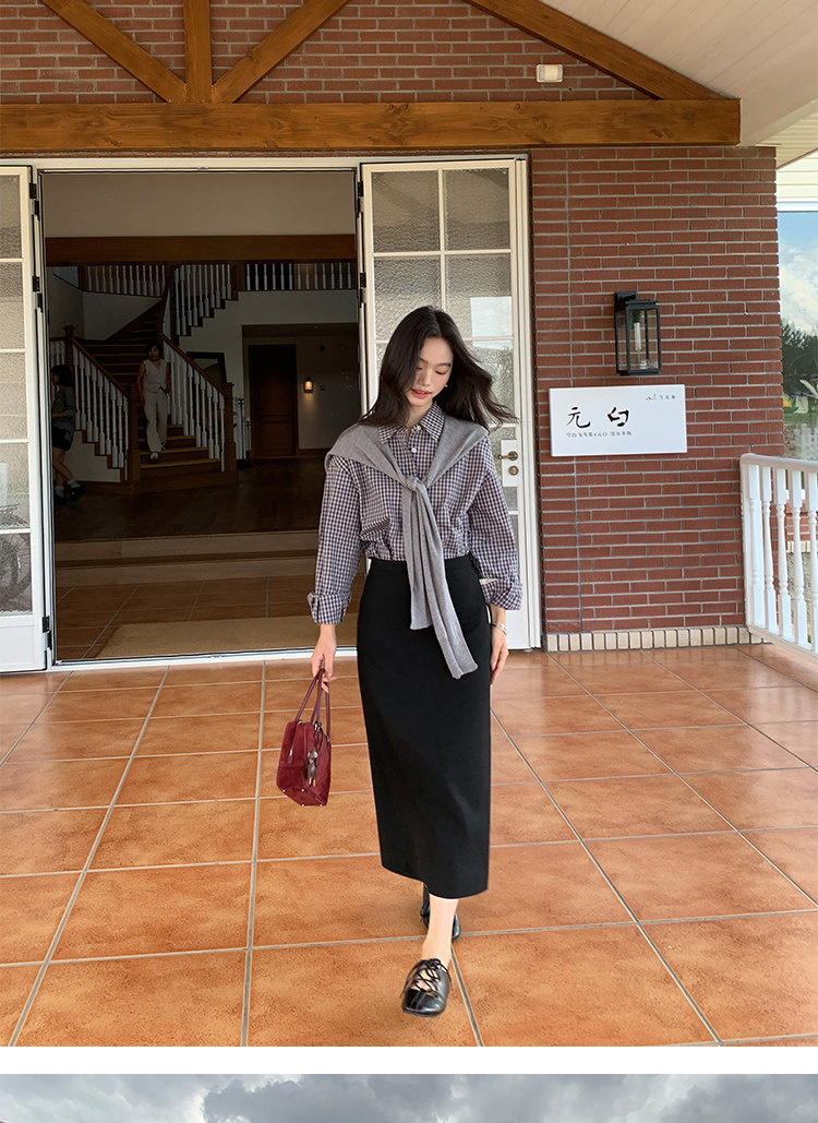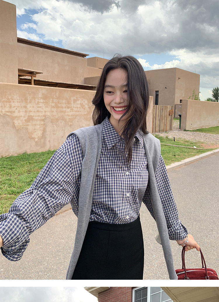 週末市場 格紋長袖襯衫 黑白