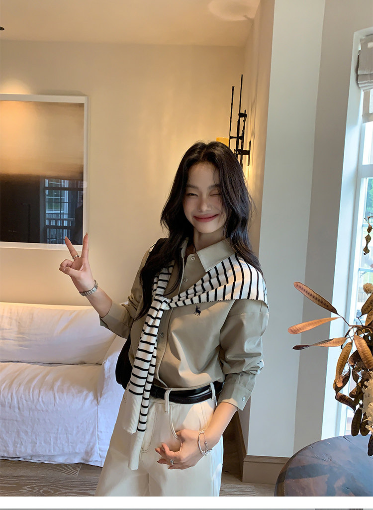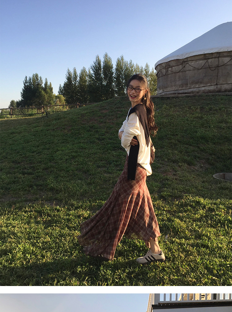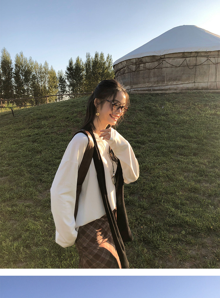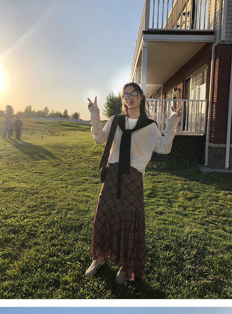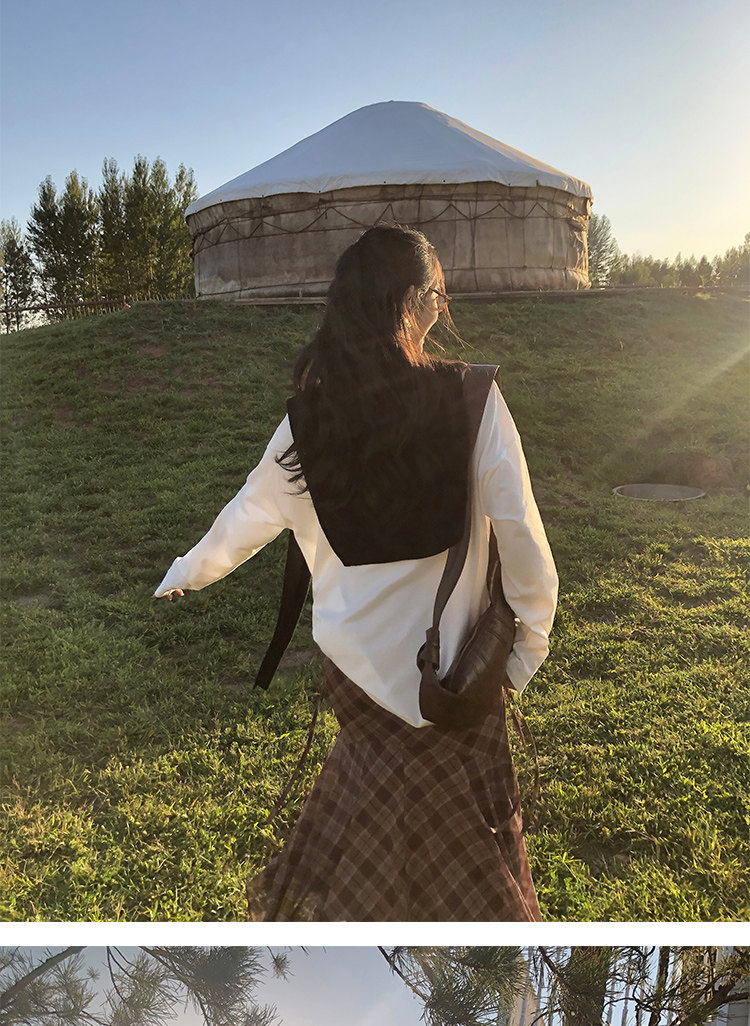 週末市場 格紋長袖襯衫 黑白