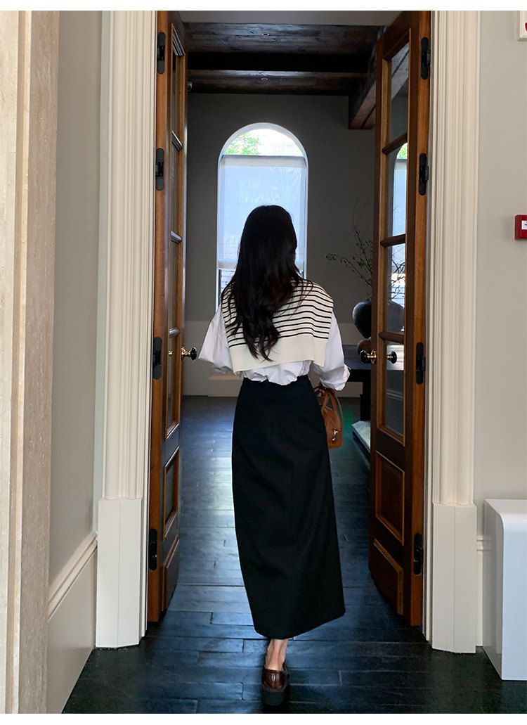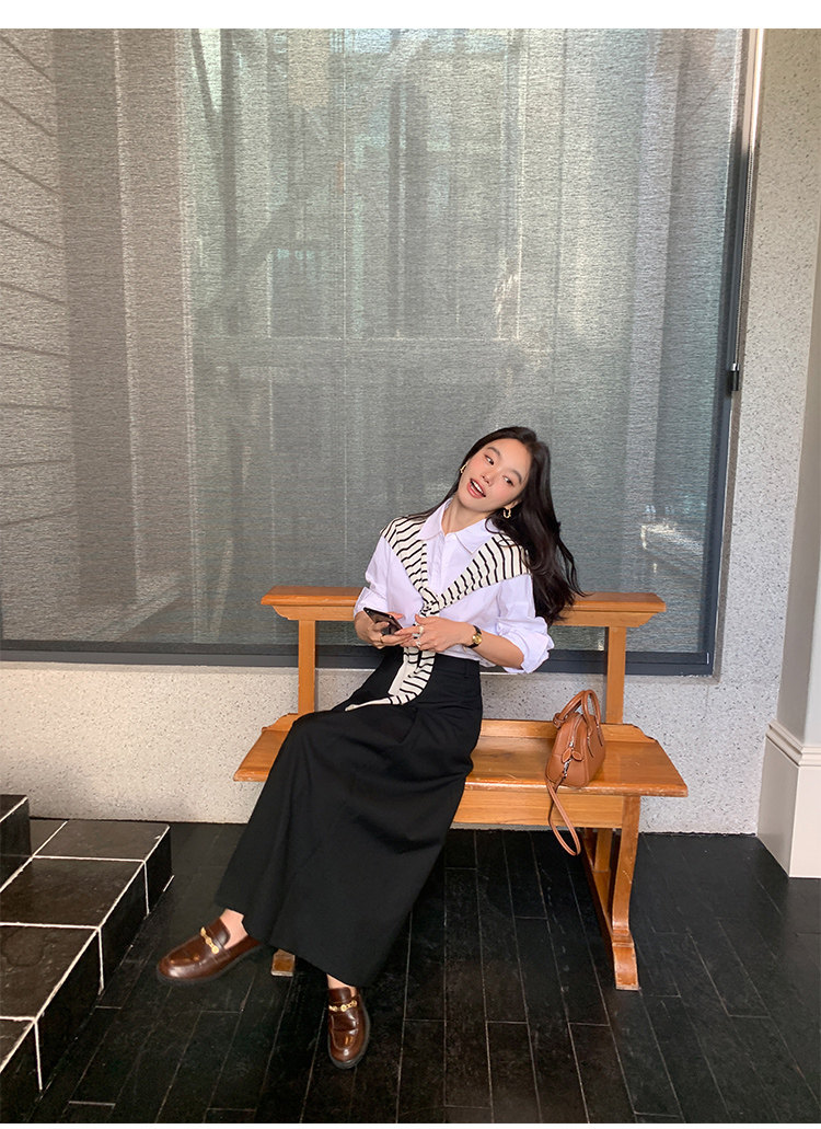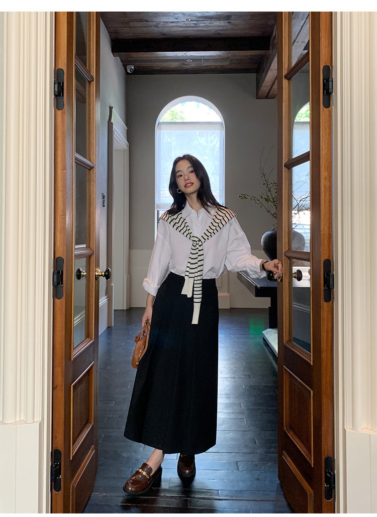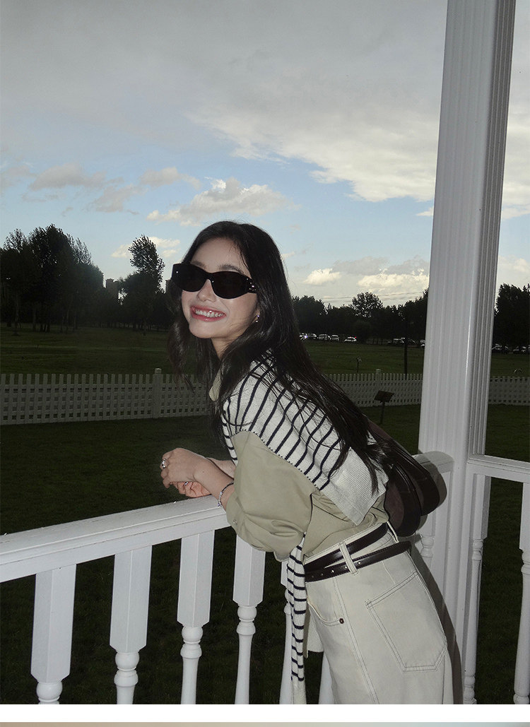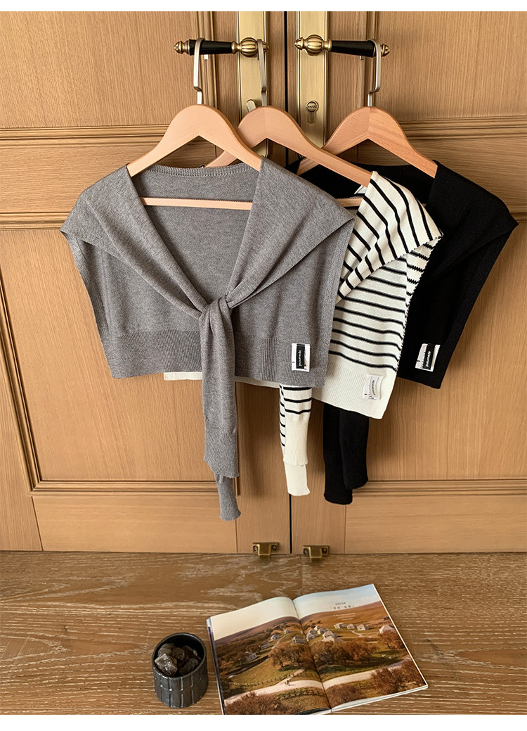 時尚疊搭 經典條紋針織披肩 黑