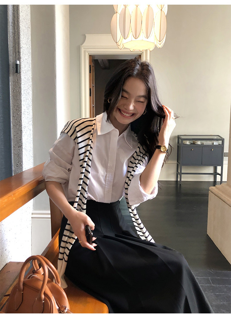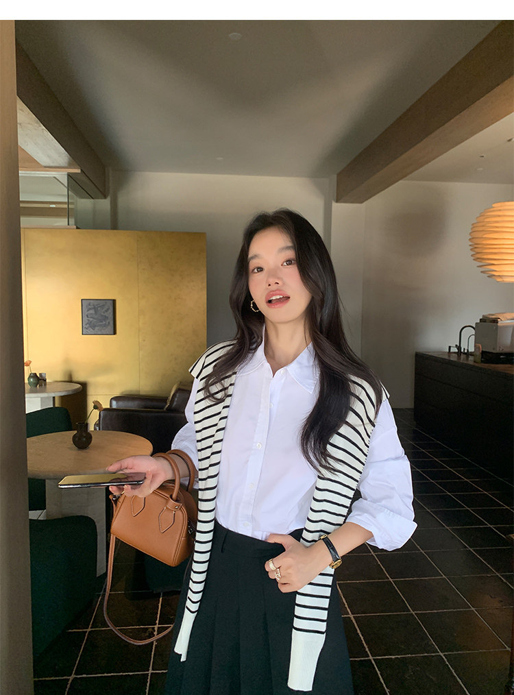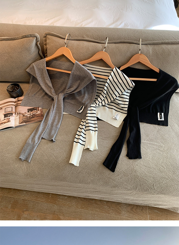 時尚疊搭 經典條紋針織披肩 黑 數量