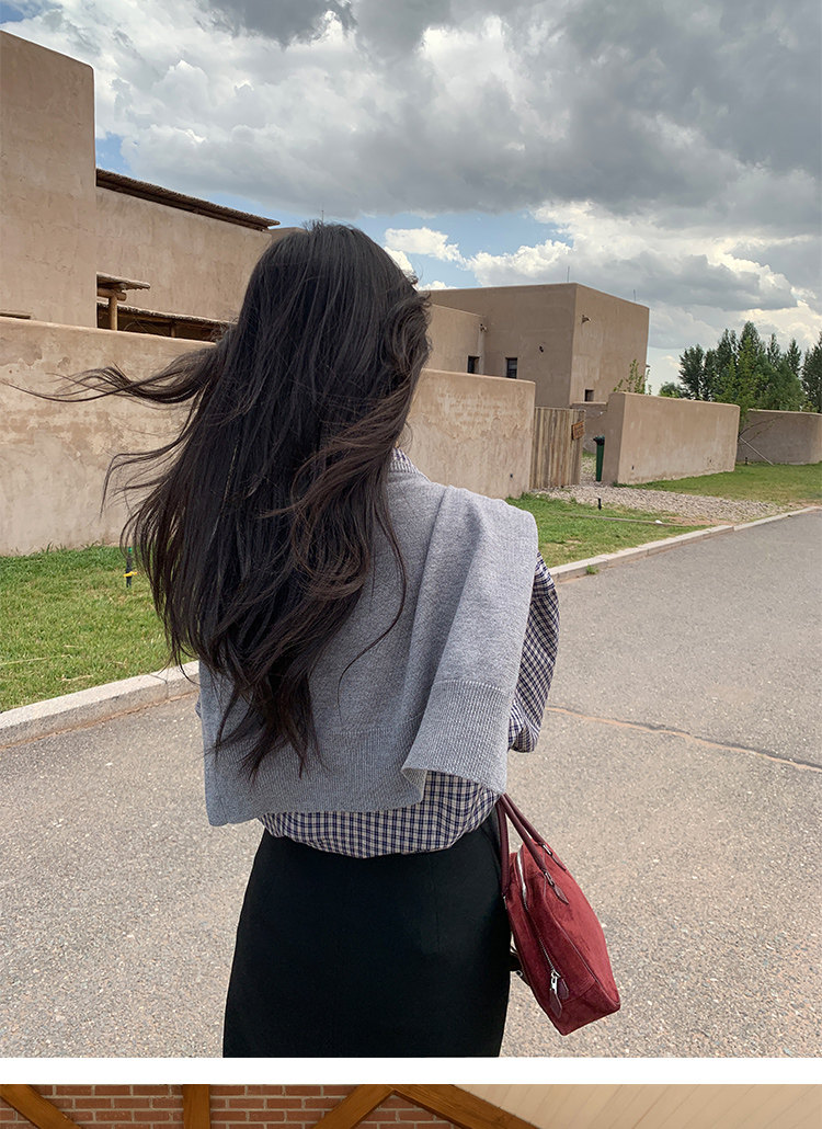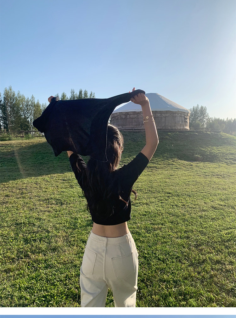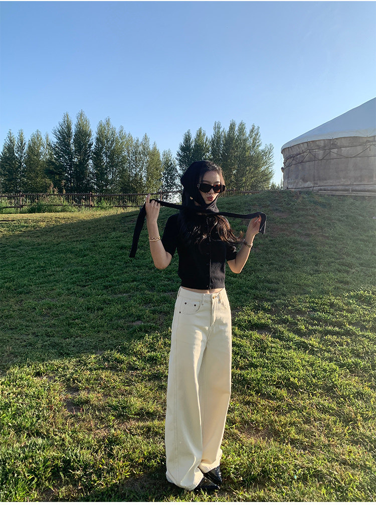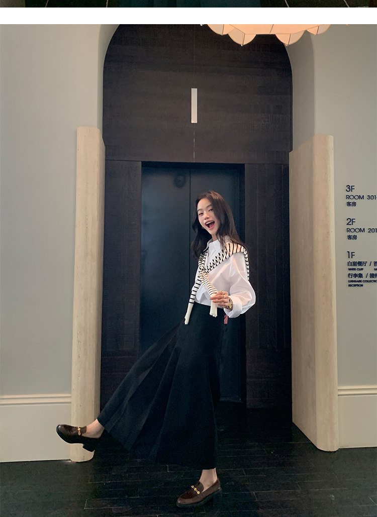 兩穿法 翻領高領羊毛針織開衫 黑