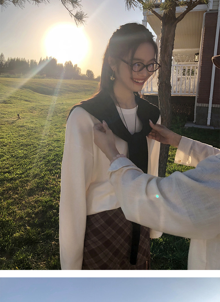 心動Crush 蕾絲v領針織開衫 白