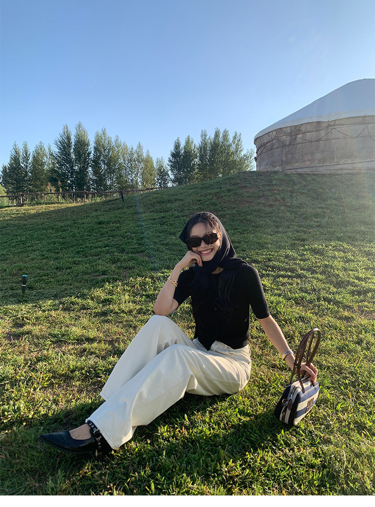 那日天晴 天絲亞麻針織開衫 黑