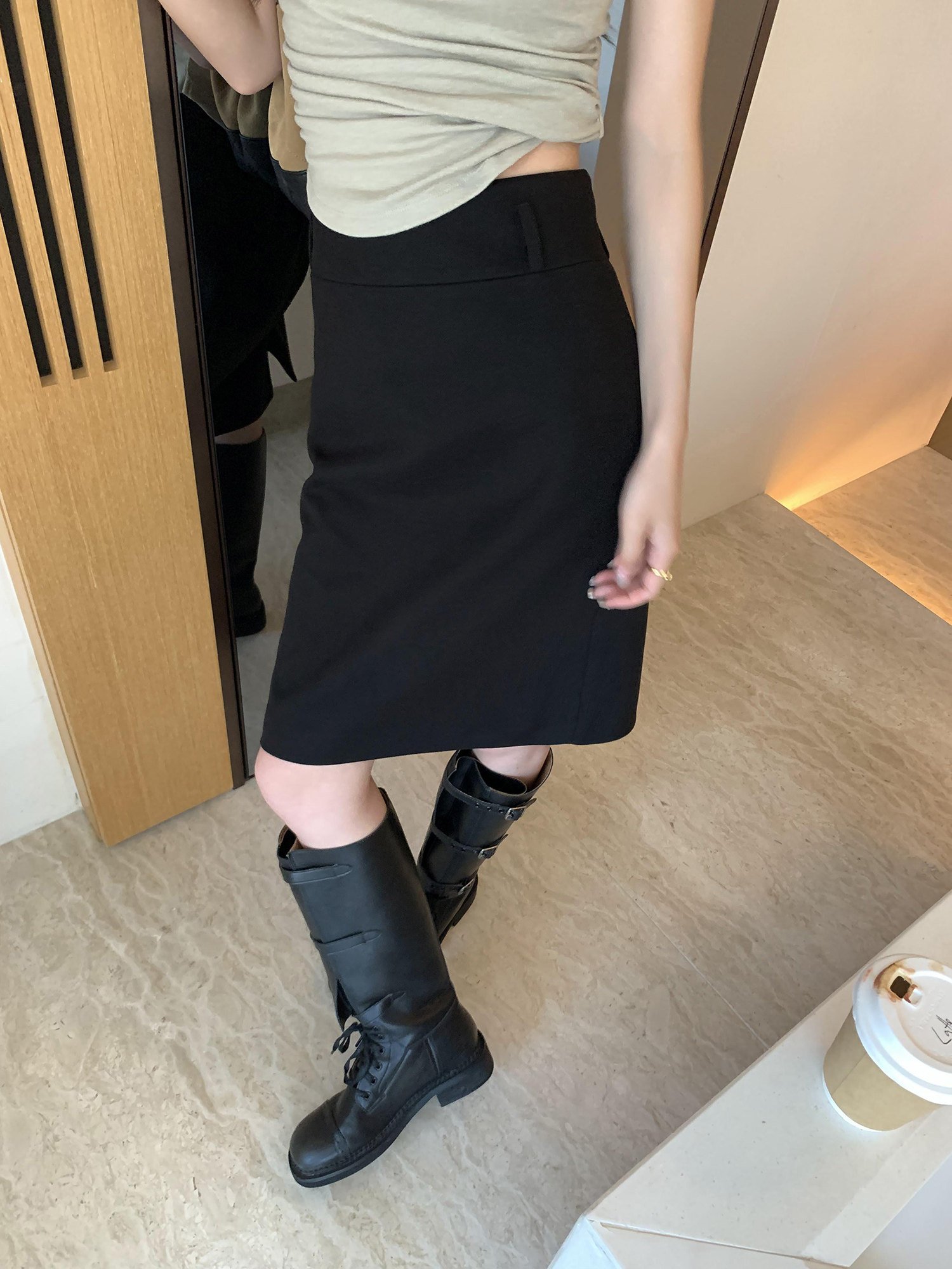 溫莎往事 復古直筒毛呢A字半裙 黑