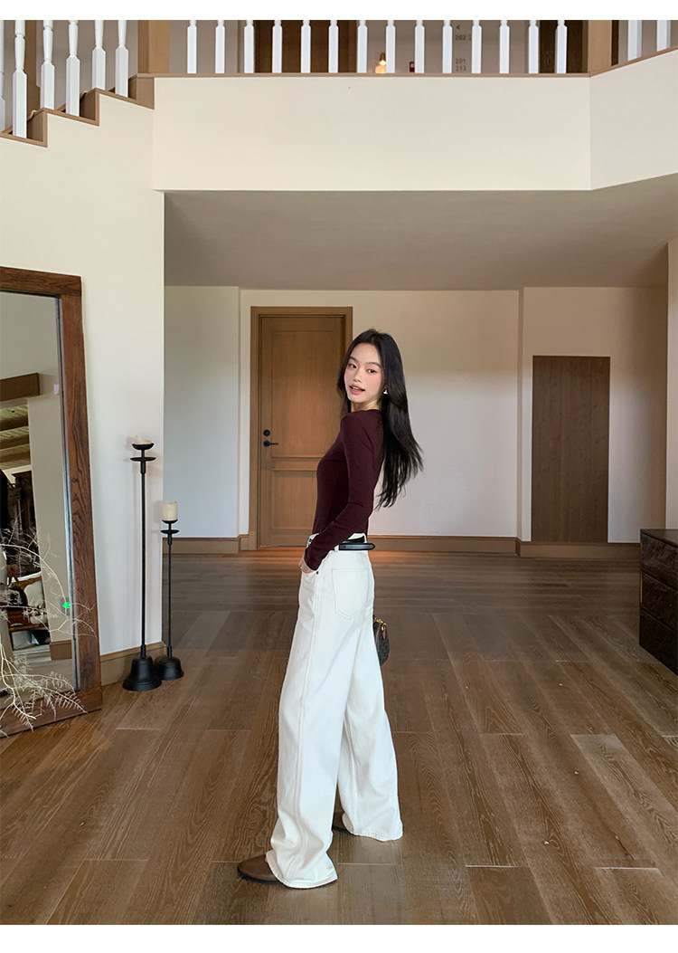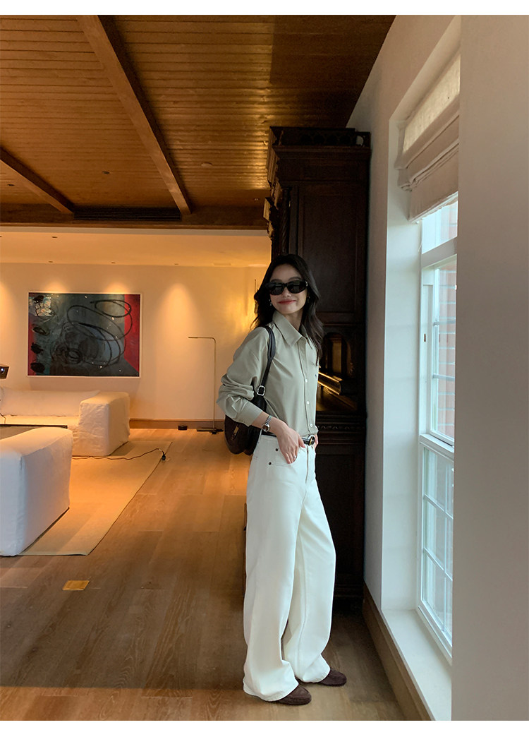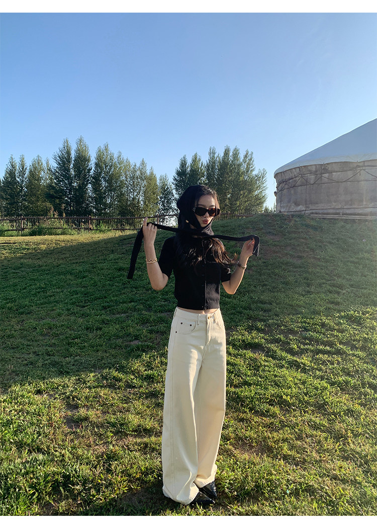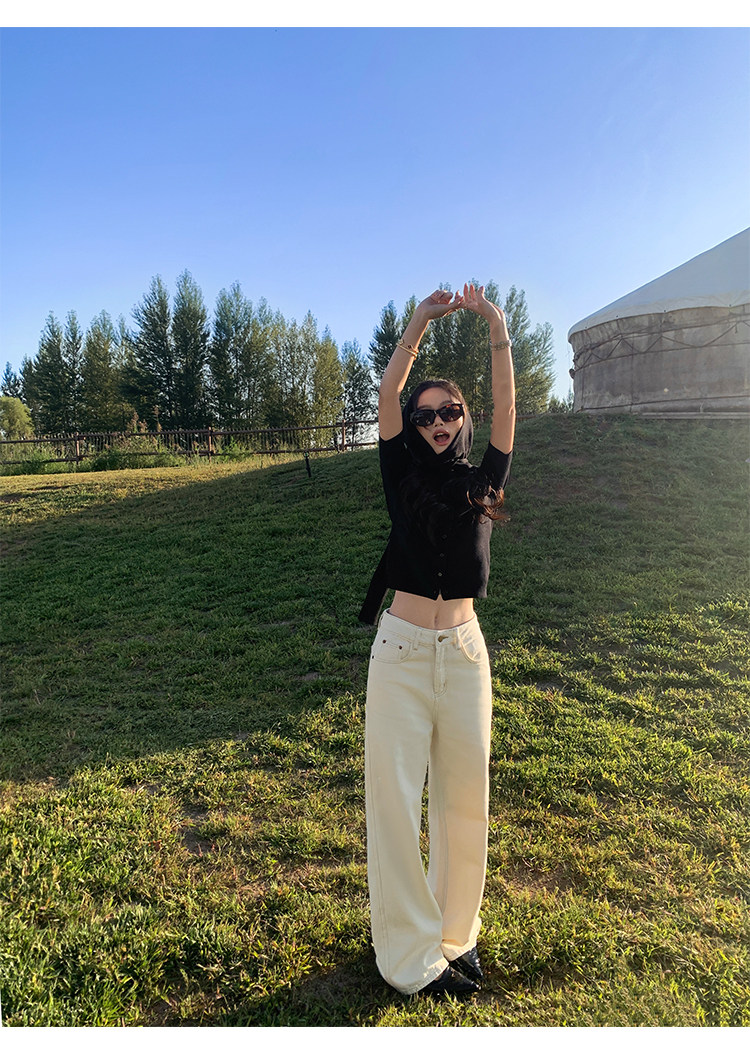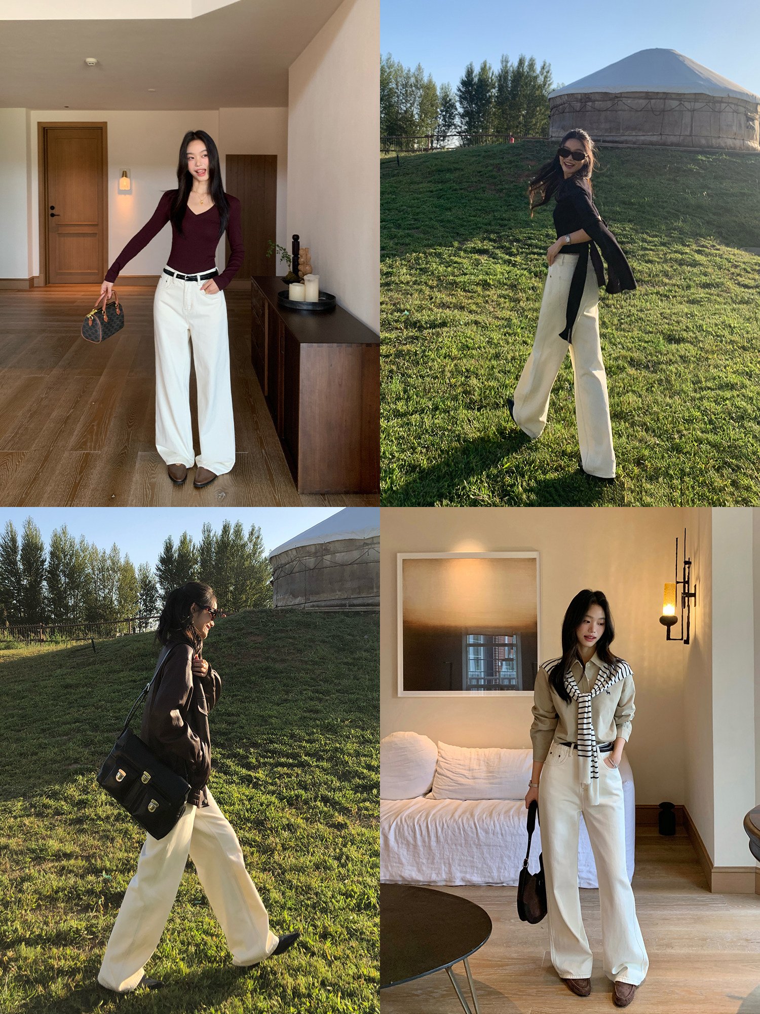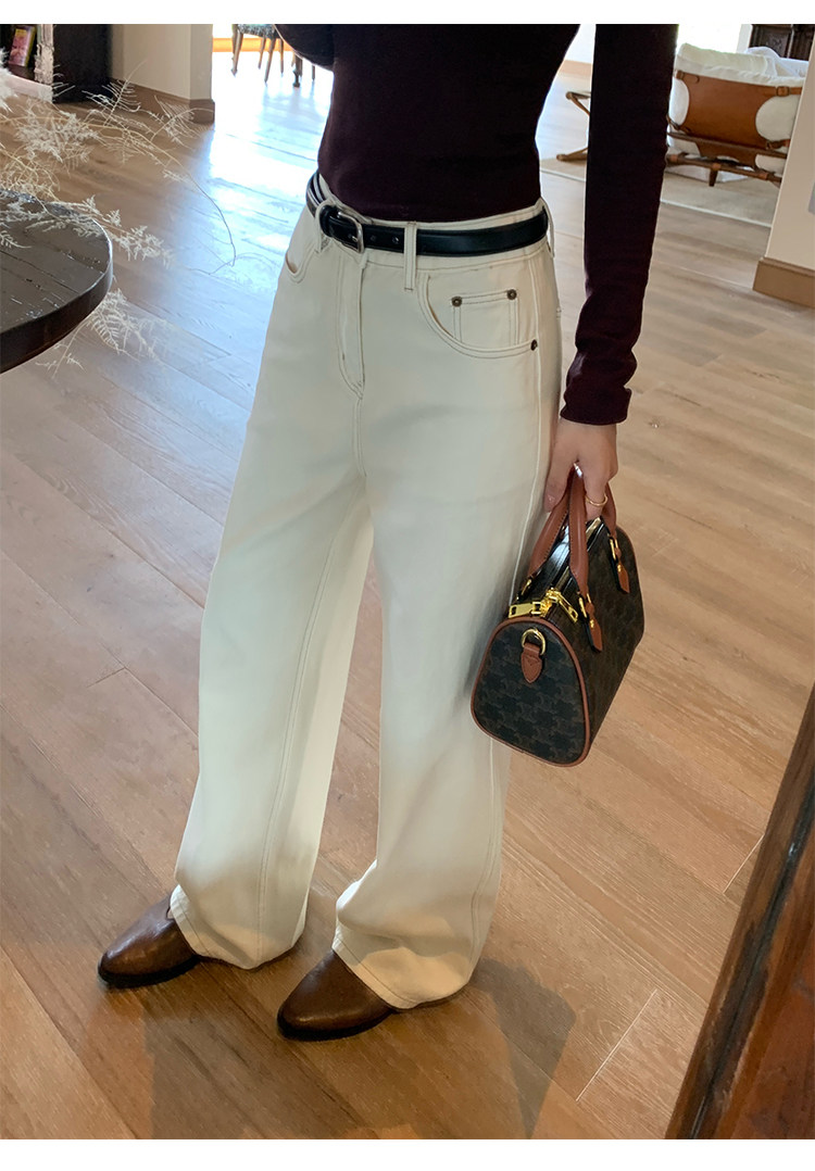 版型超讚 簡約高腰直筒牛仔褲 米白