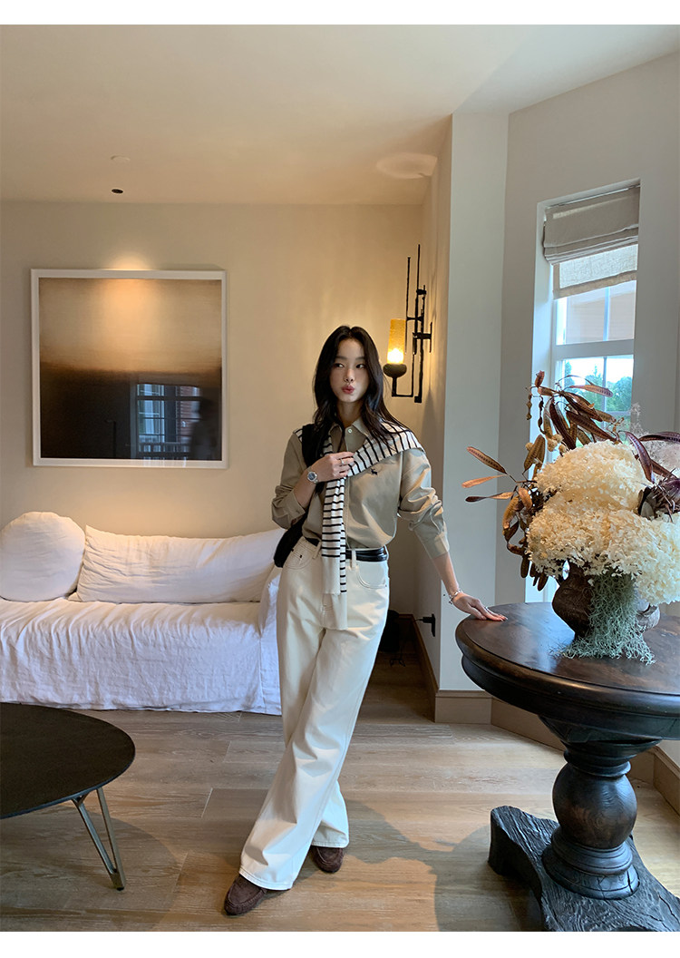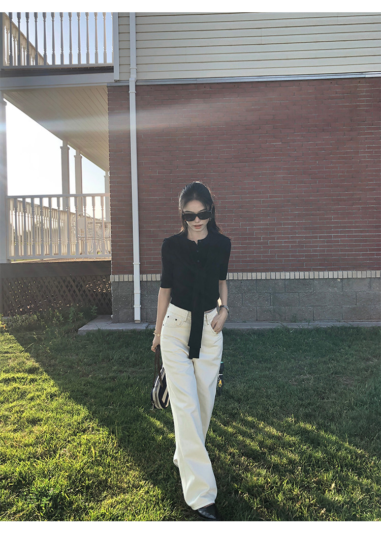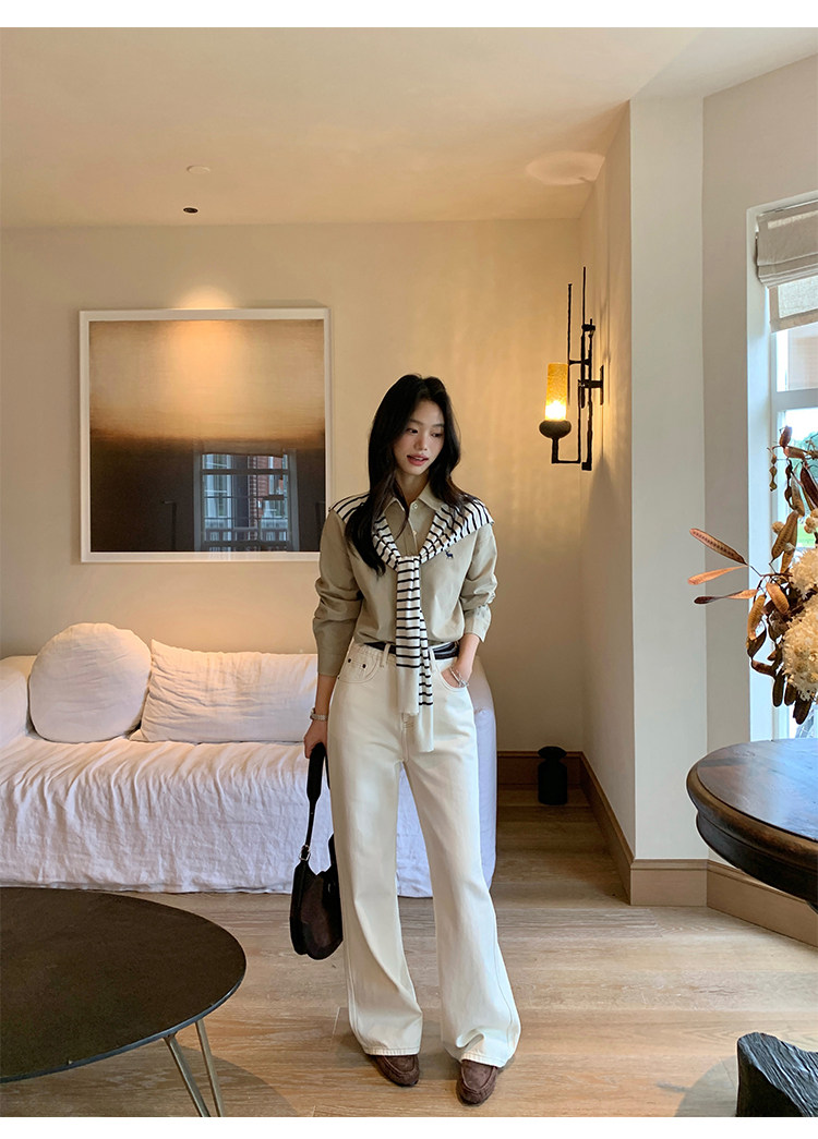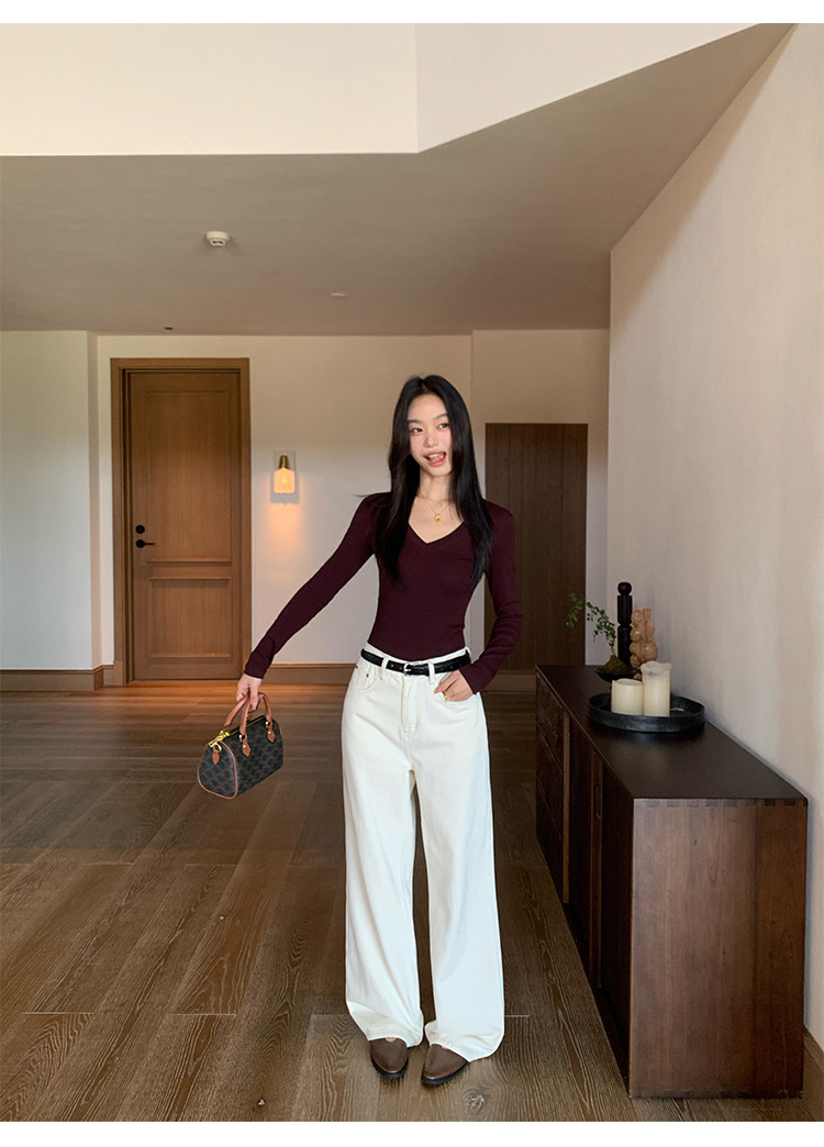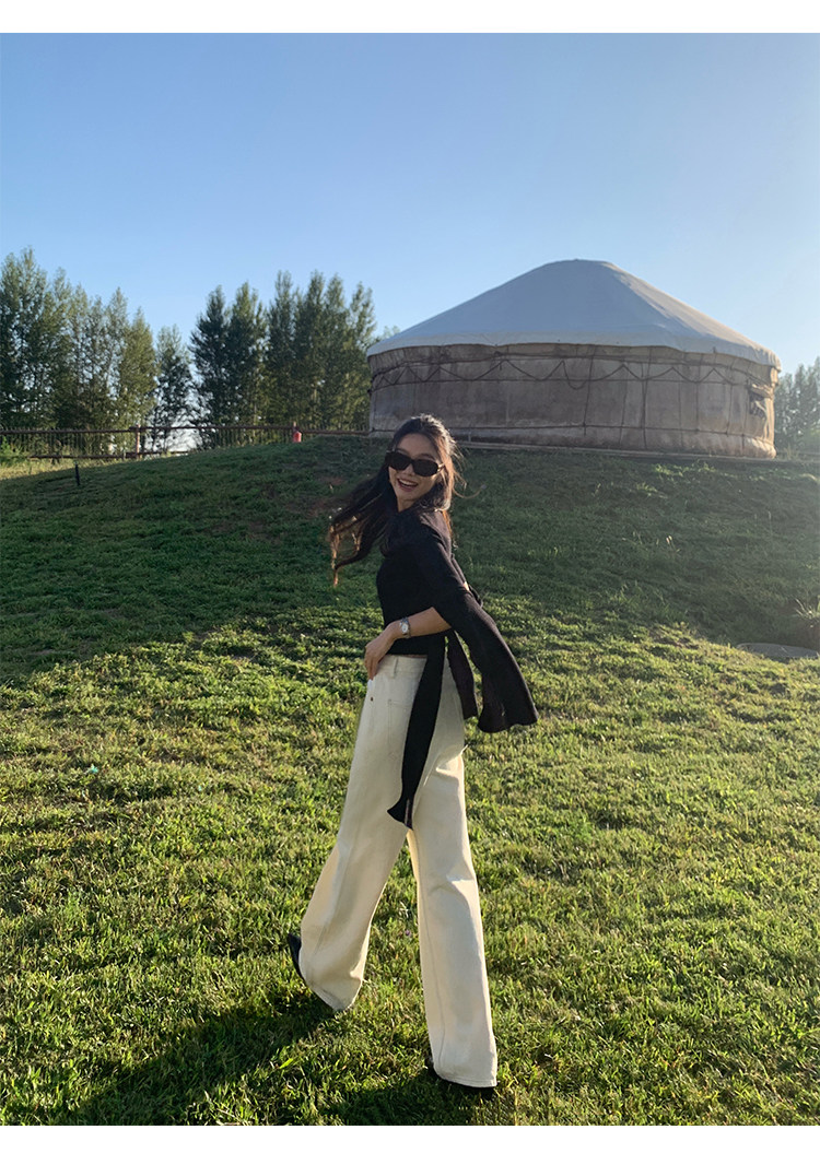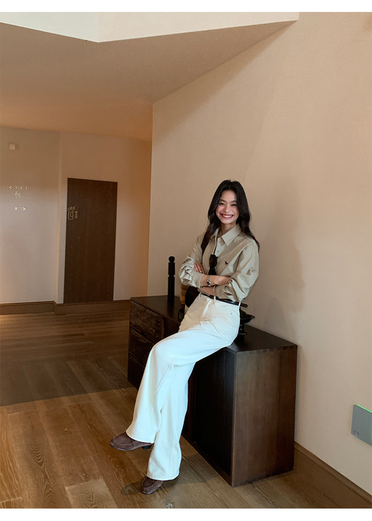 版型超讚 簡約高腰直筒牛仔褲 米白