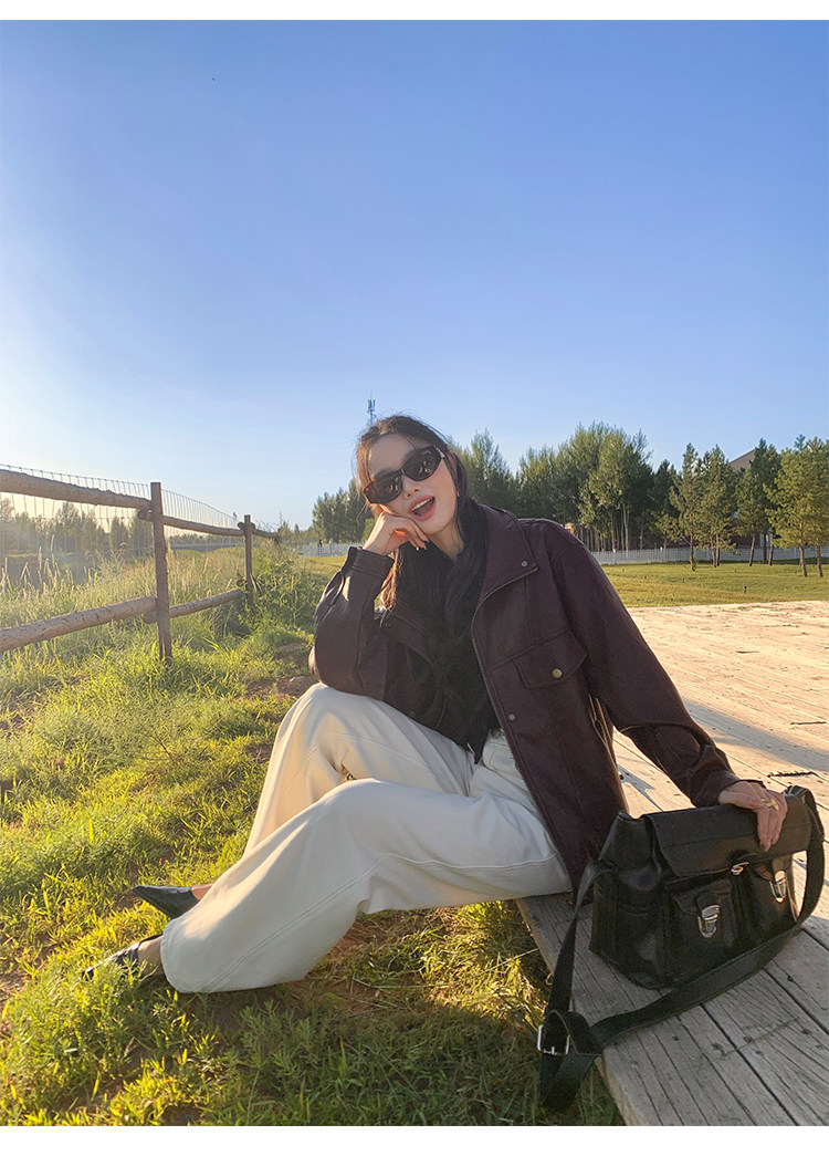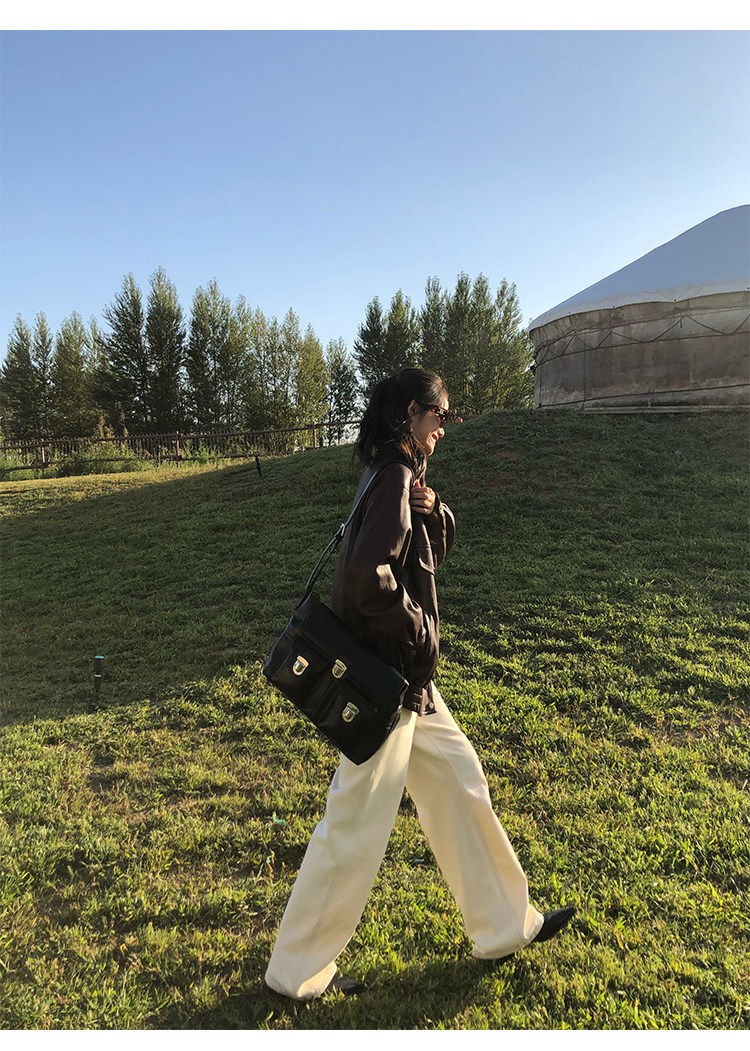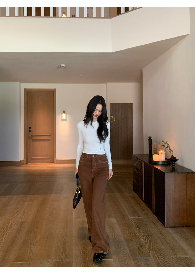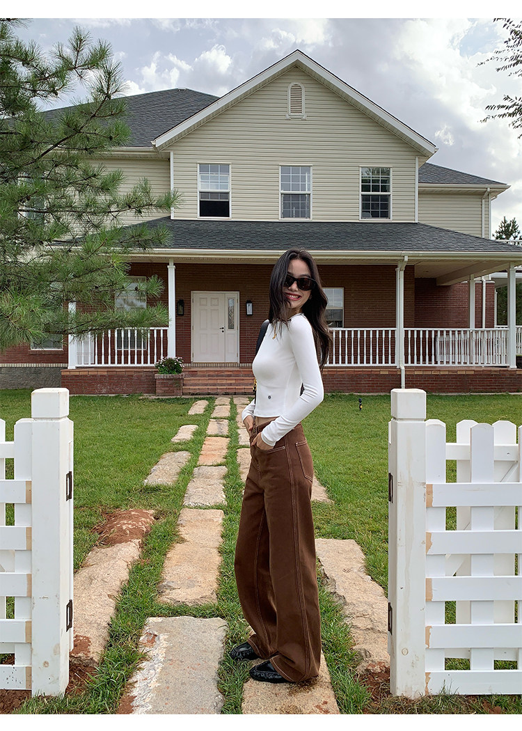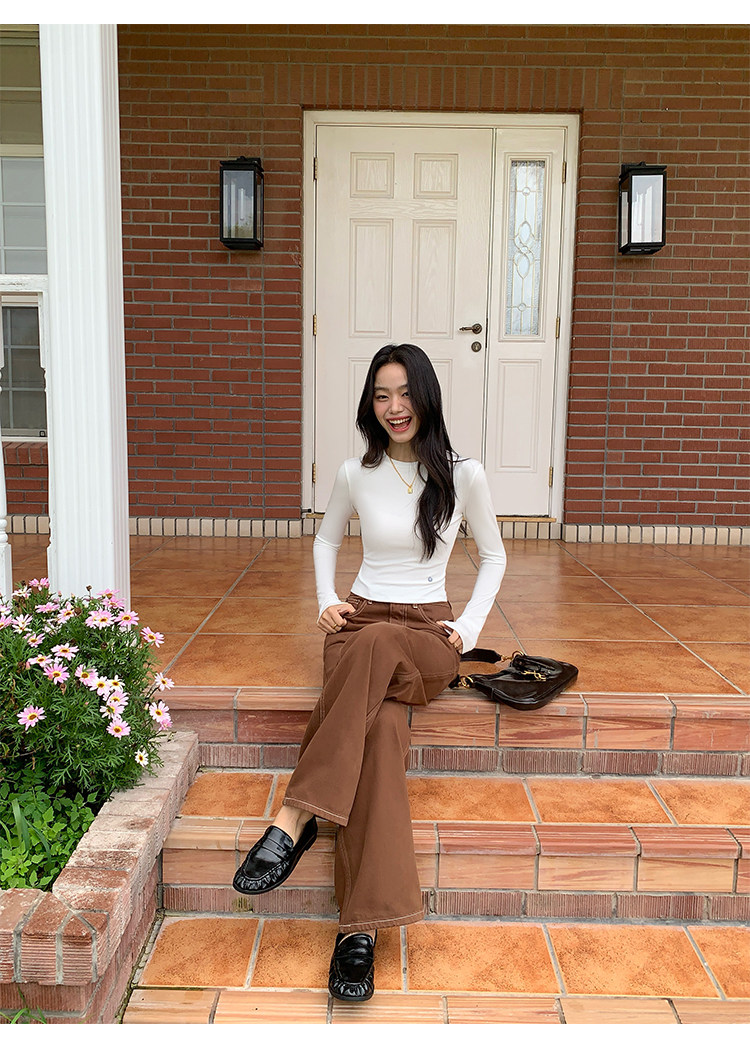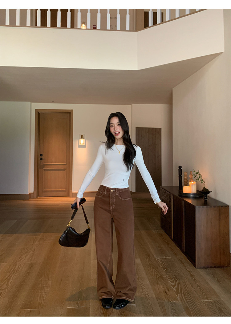 週末漫步 輪廓寬鬆彎刀褲 棕