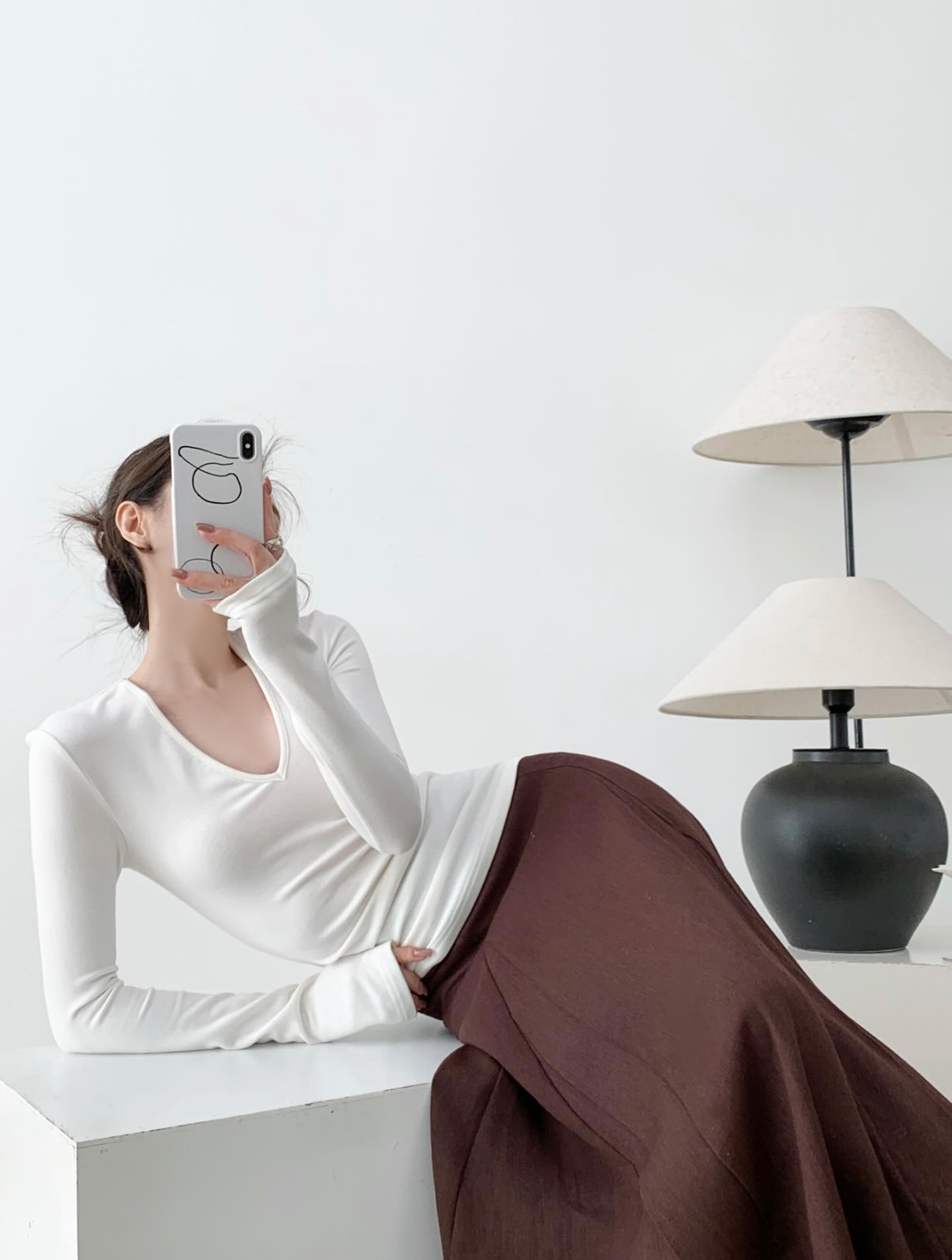 紙片人 高彈萊賽爾針織上衣 白