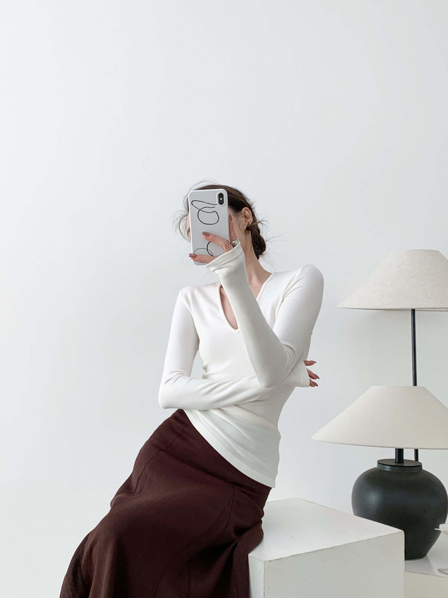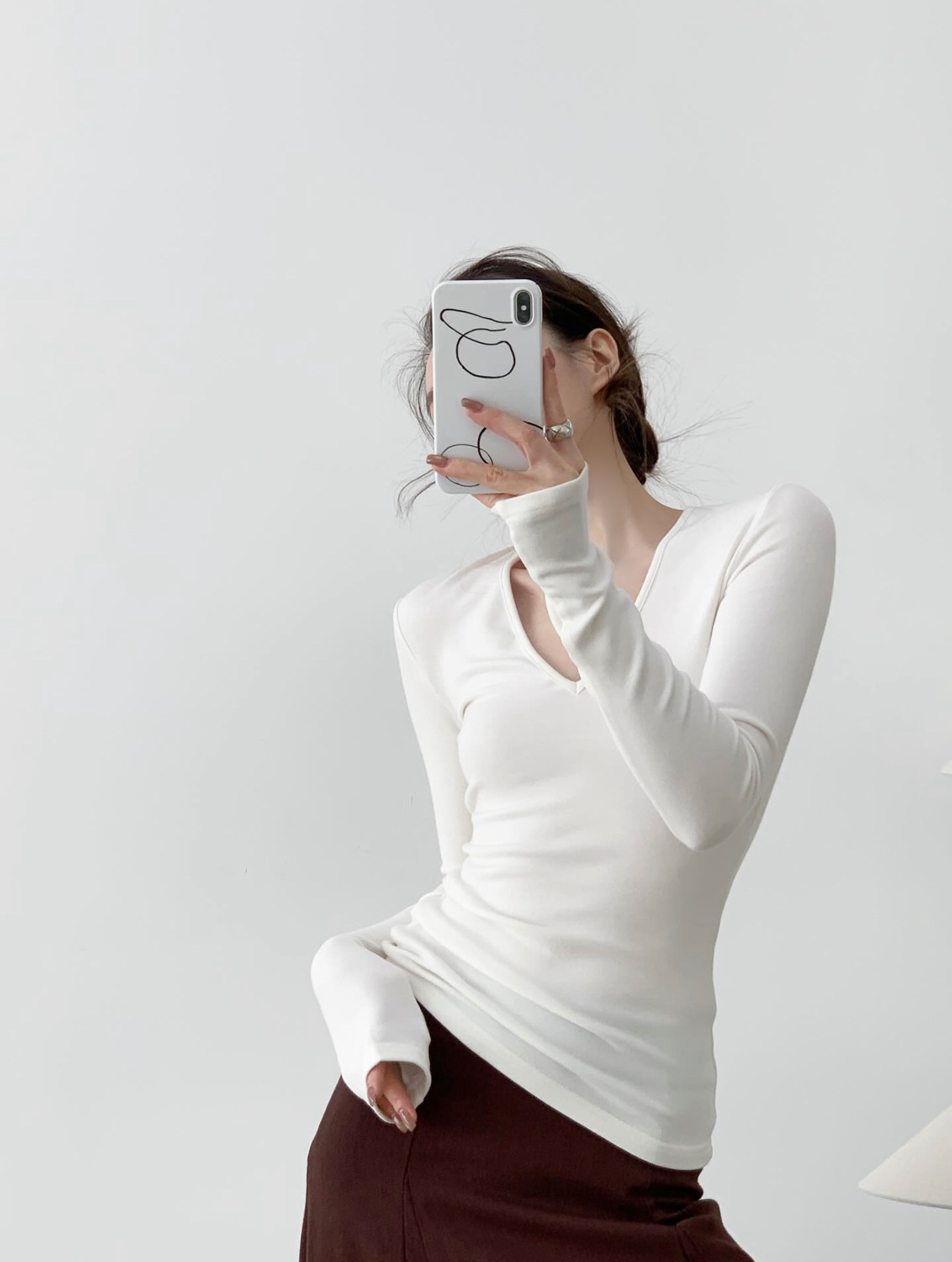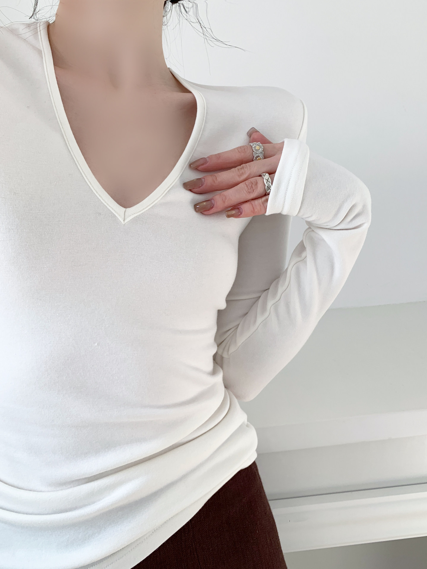 絲滑微絨 基本V領白打底針織衫