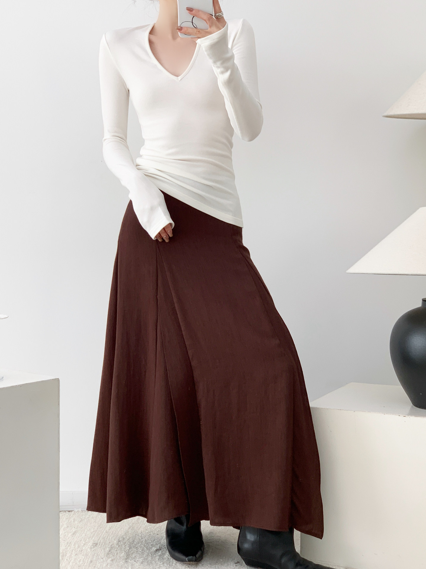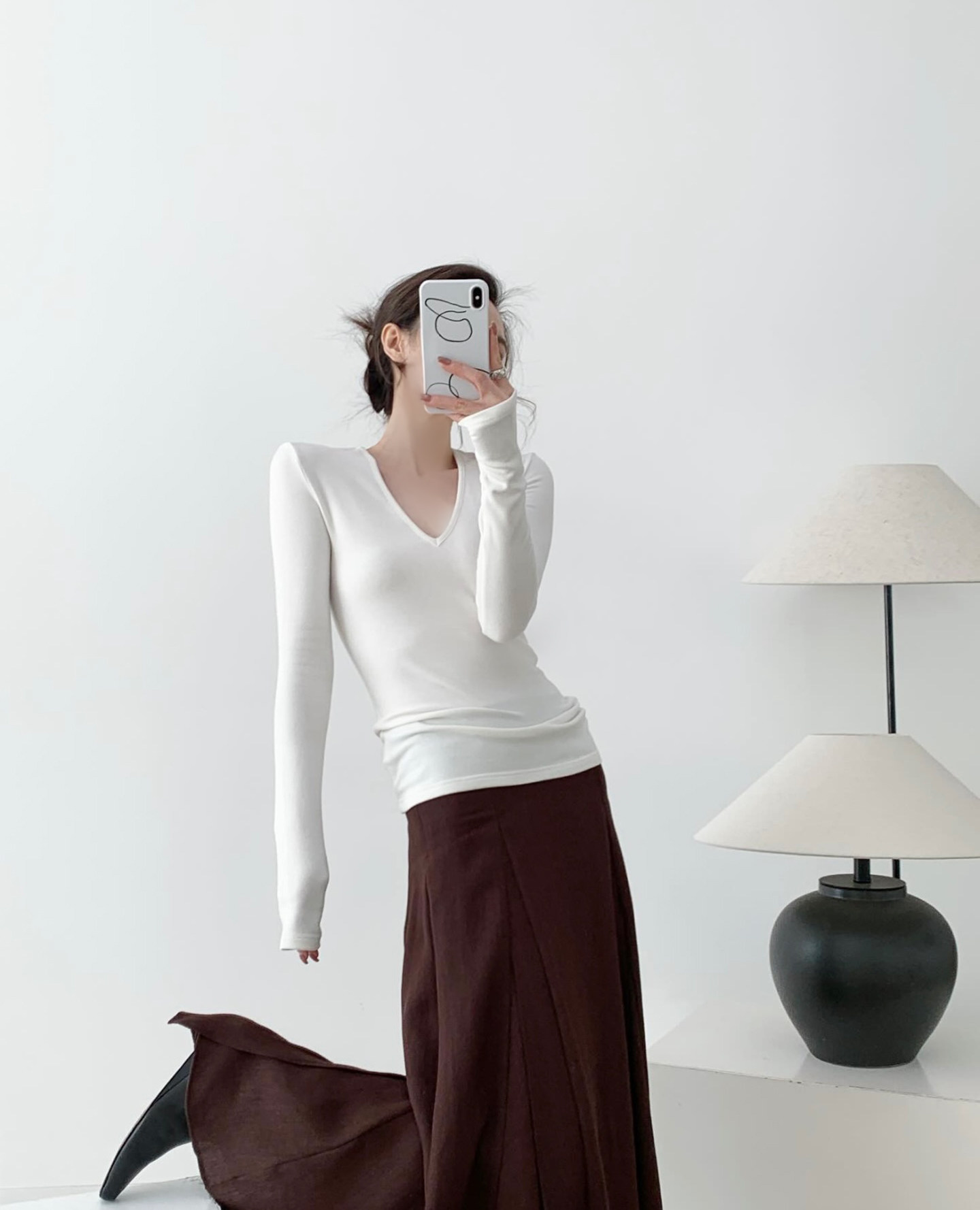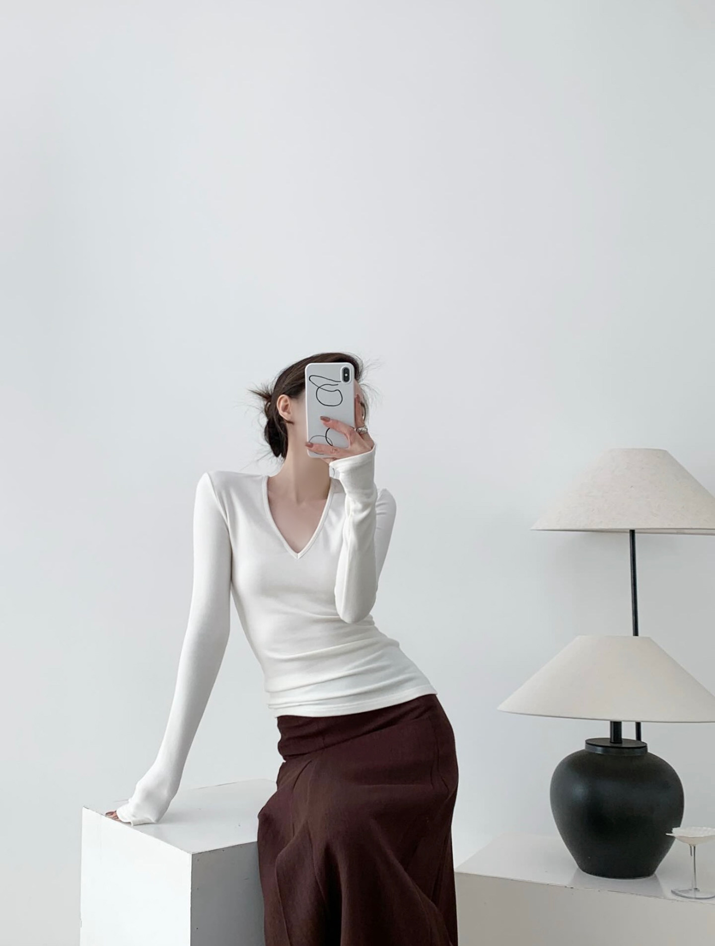 絲滑微絨 基本V領白打底針織衫