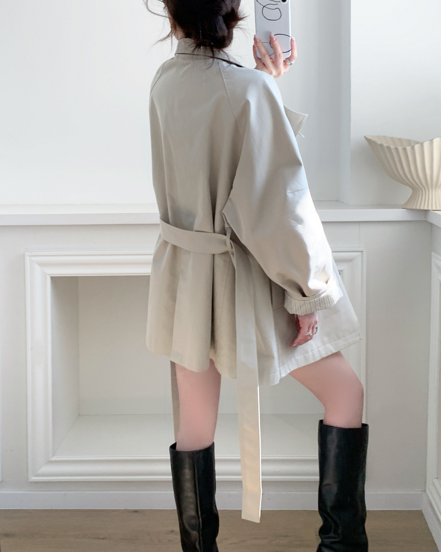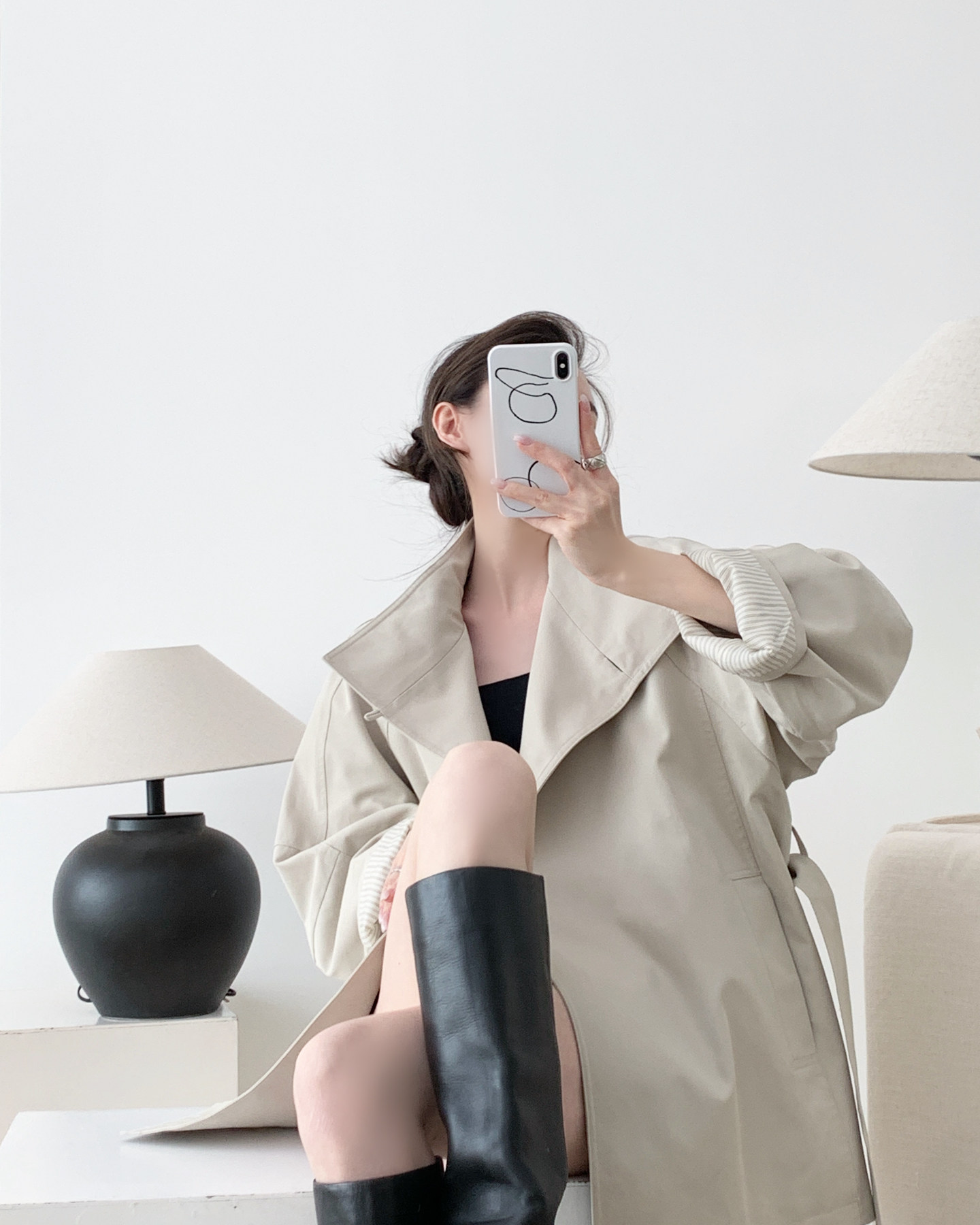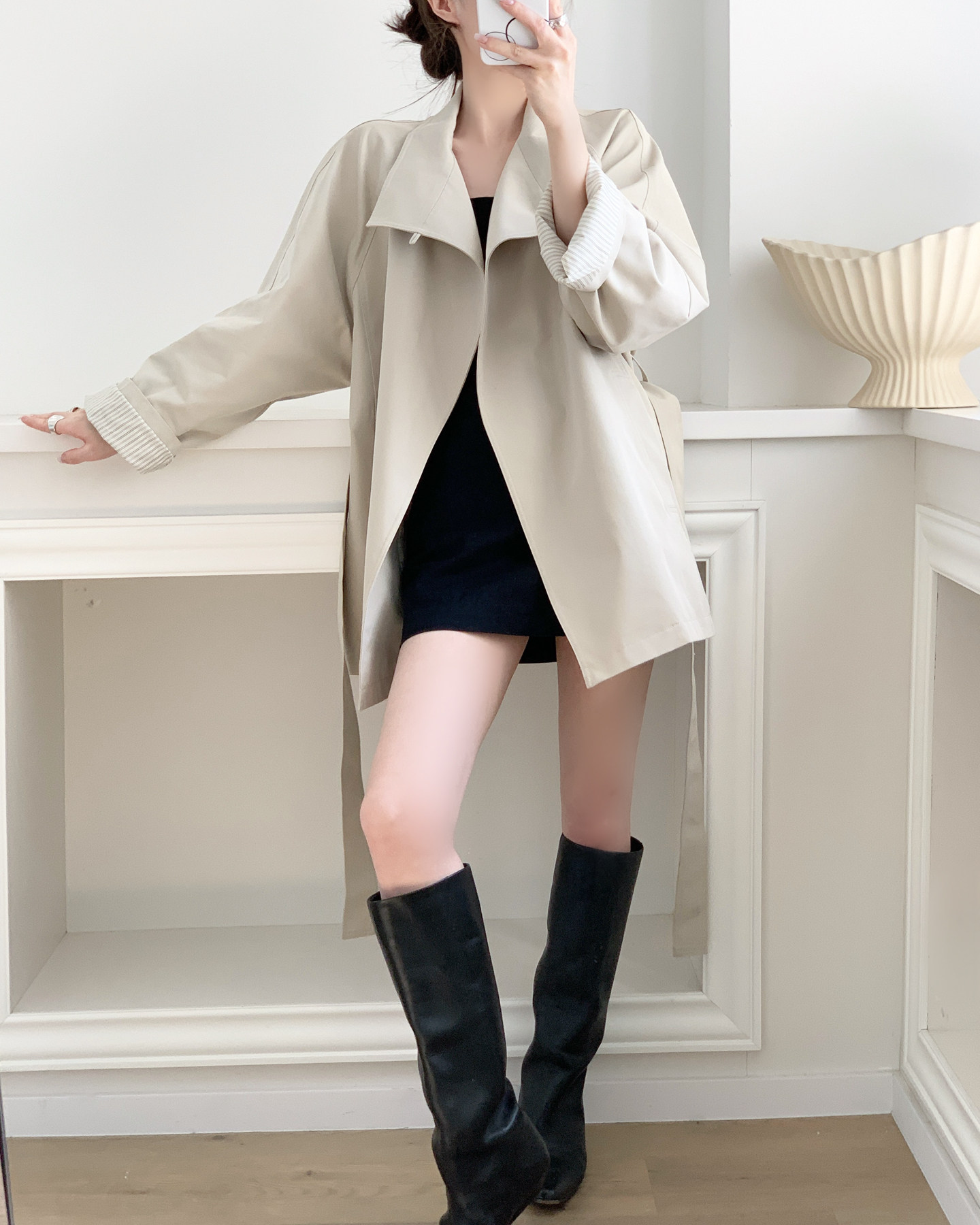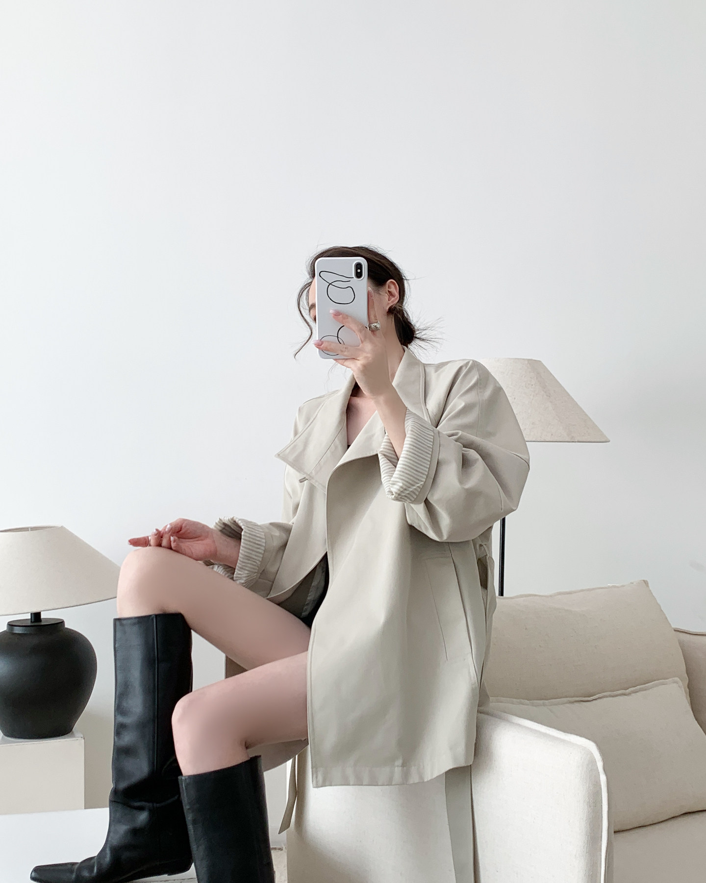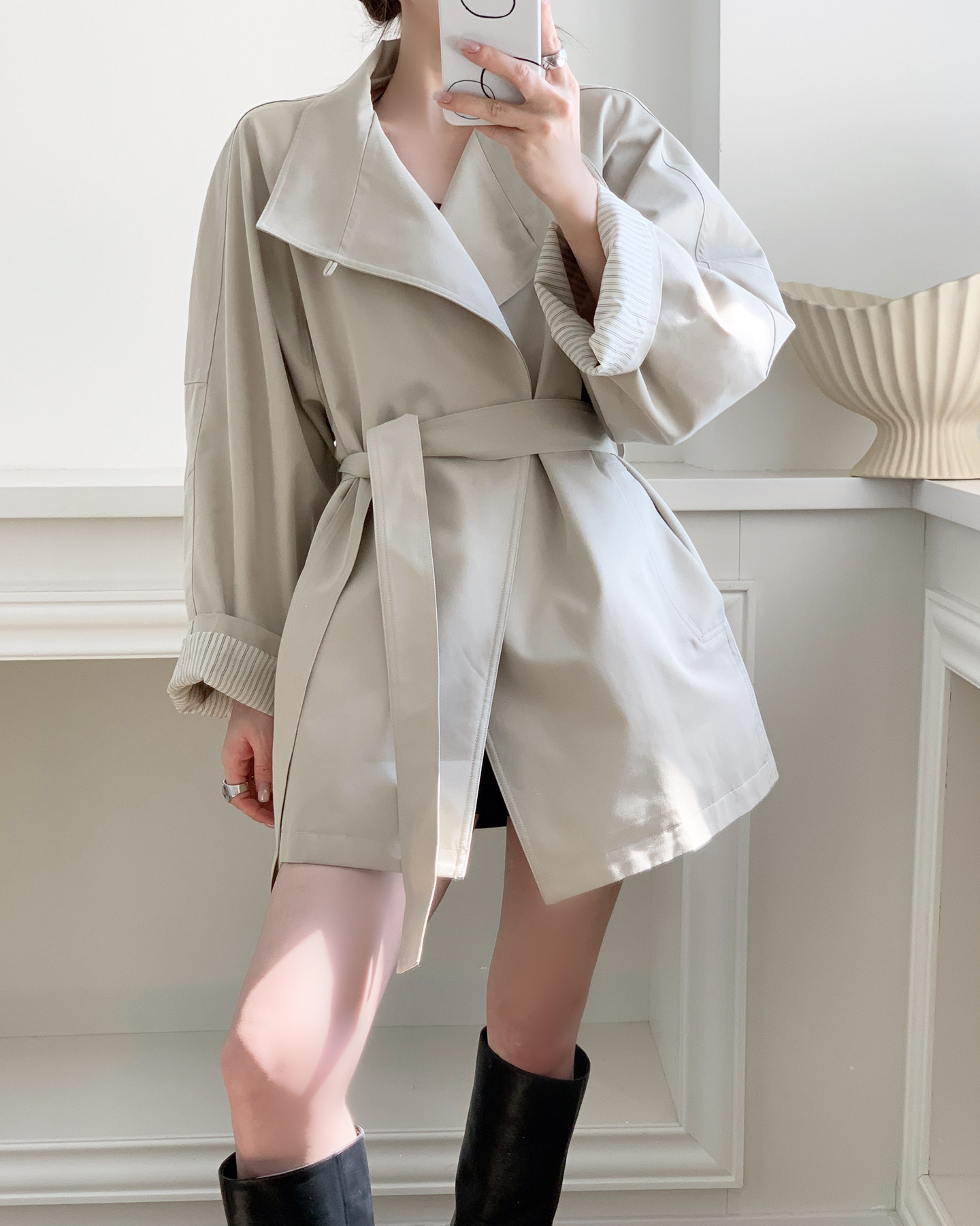 版型寬鬆休閒與通勤並存,長款百搭且氣場強,短款慵輕鬆幹練,布料選用斜紋棉混紡布料,挺括有型,立領設計簡約大氣,領子簡約一粒明扣設計,營造自然斜門襟效果,胸部兩側有貼袋設計,豐富層次感,袖口拼接條紋袖裡,翻折穿著時增加休閒細節。