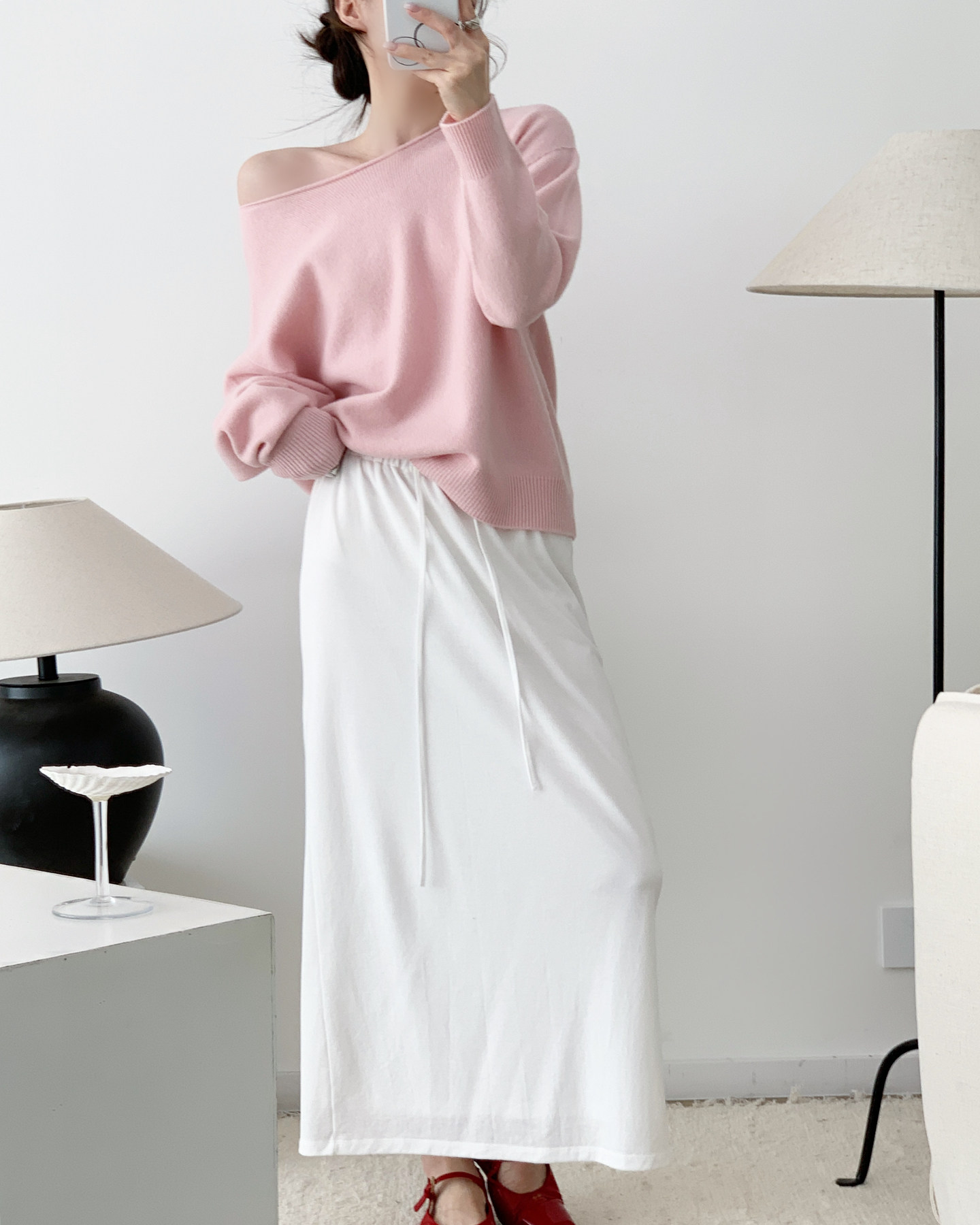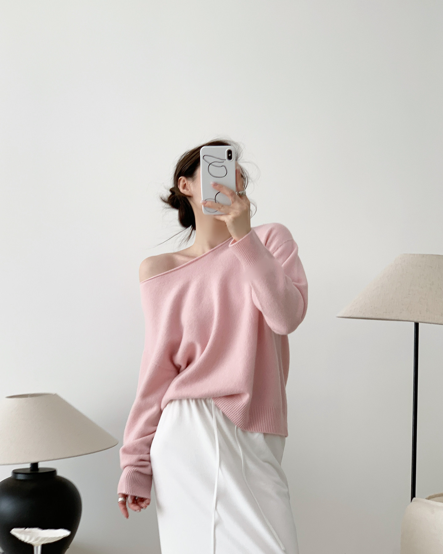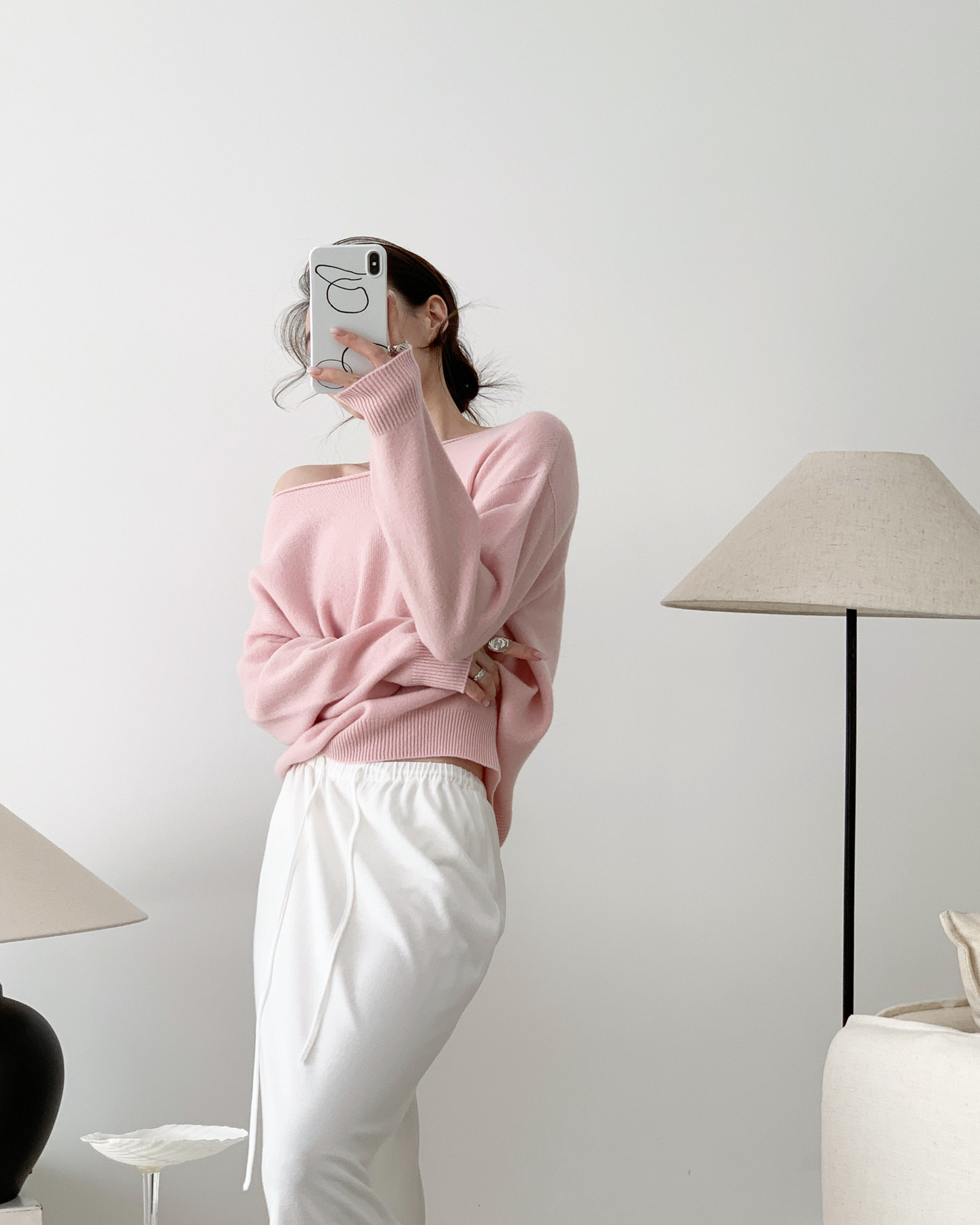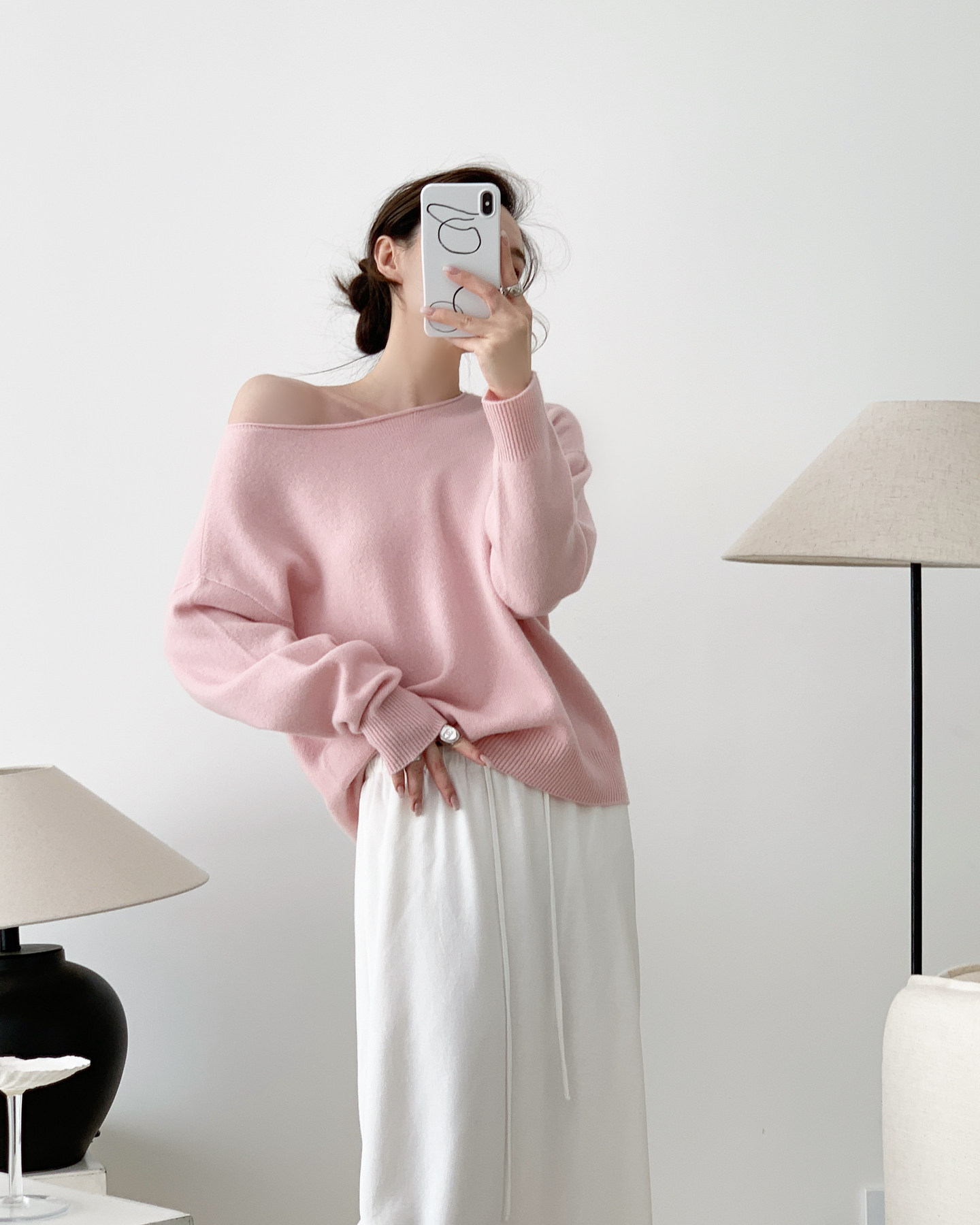 簡約骨感 鏤空長袖針織衫 米白
