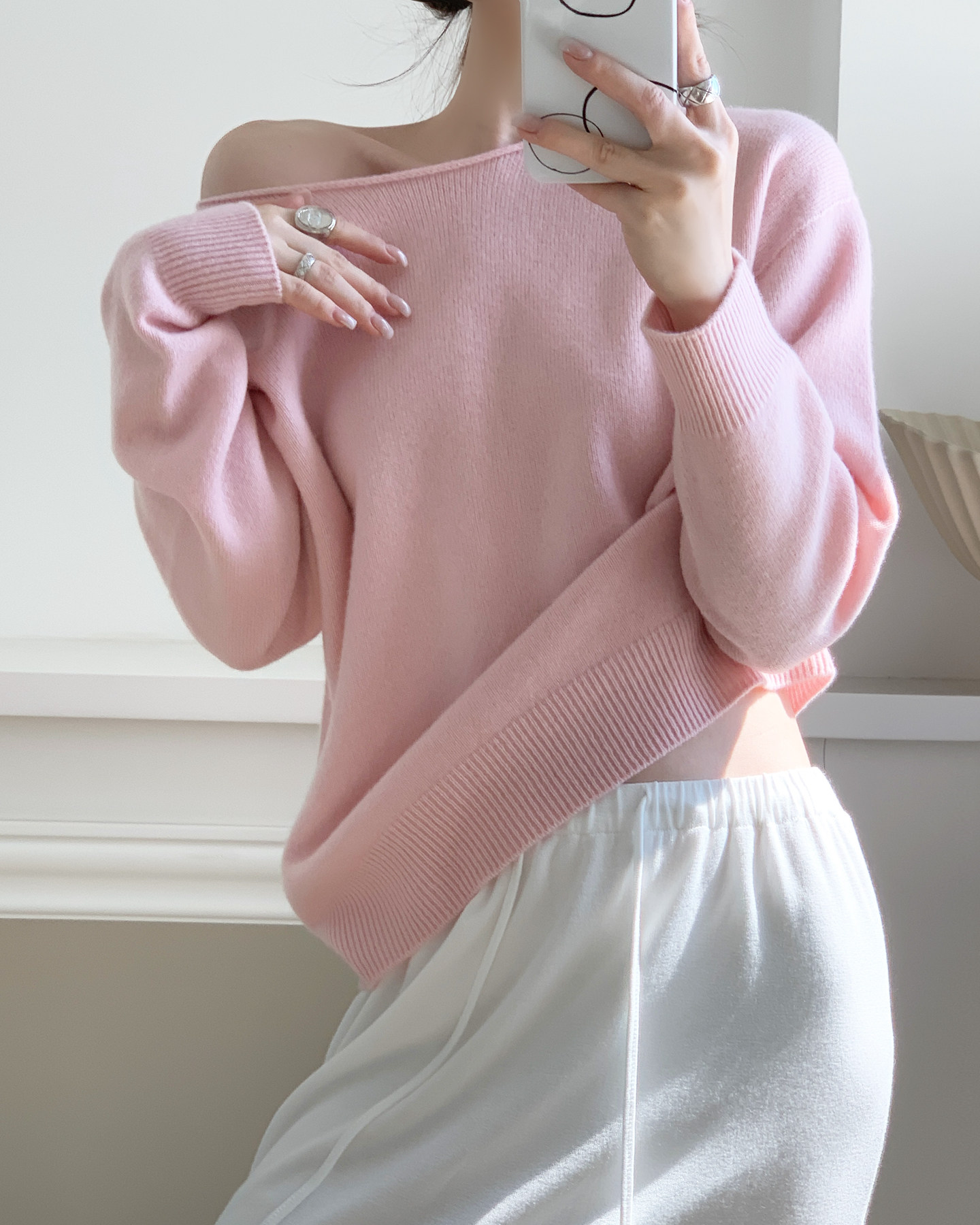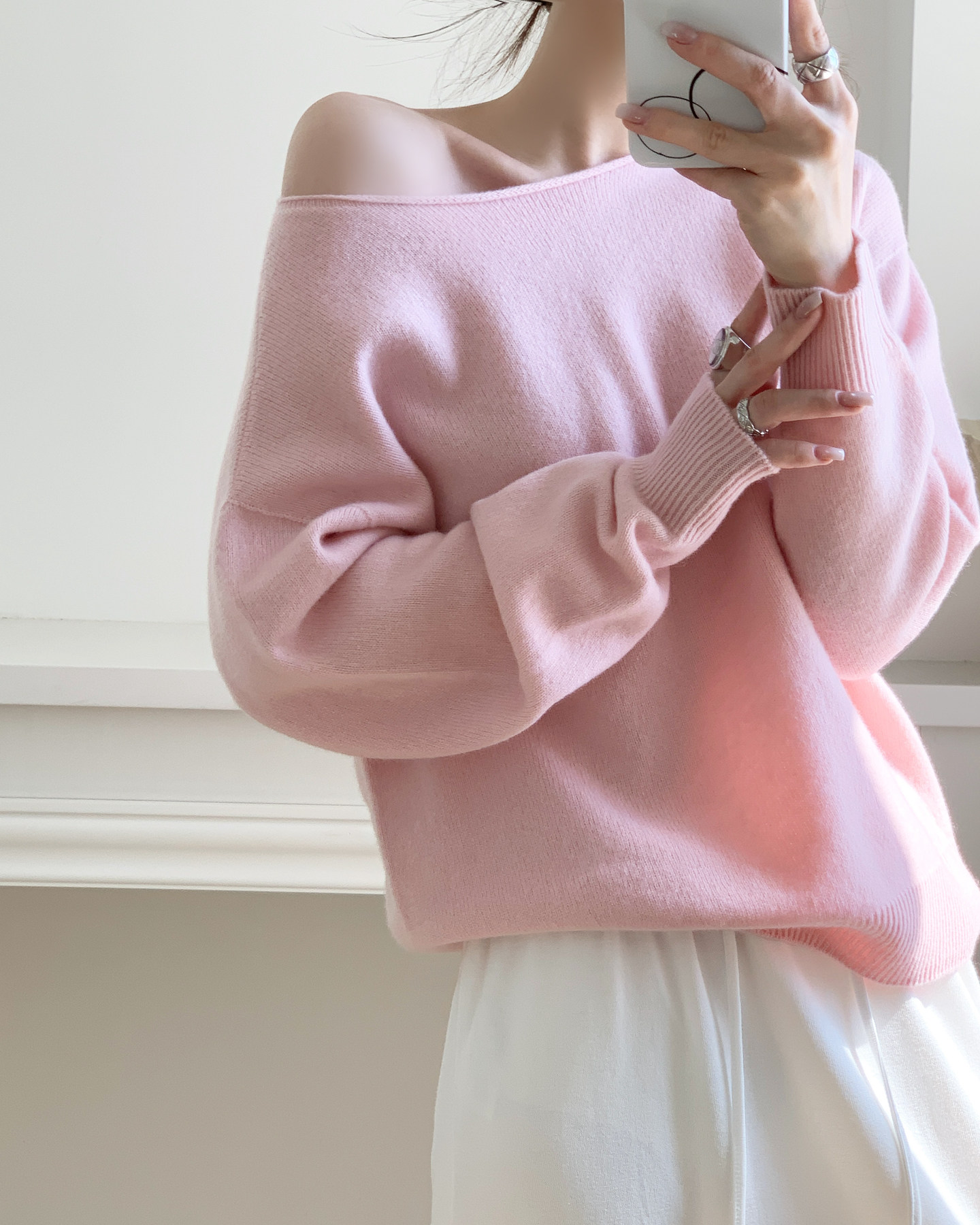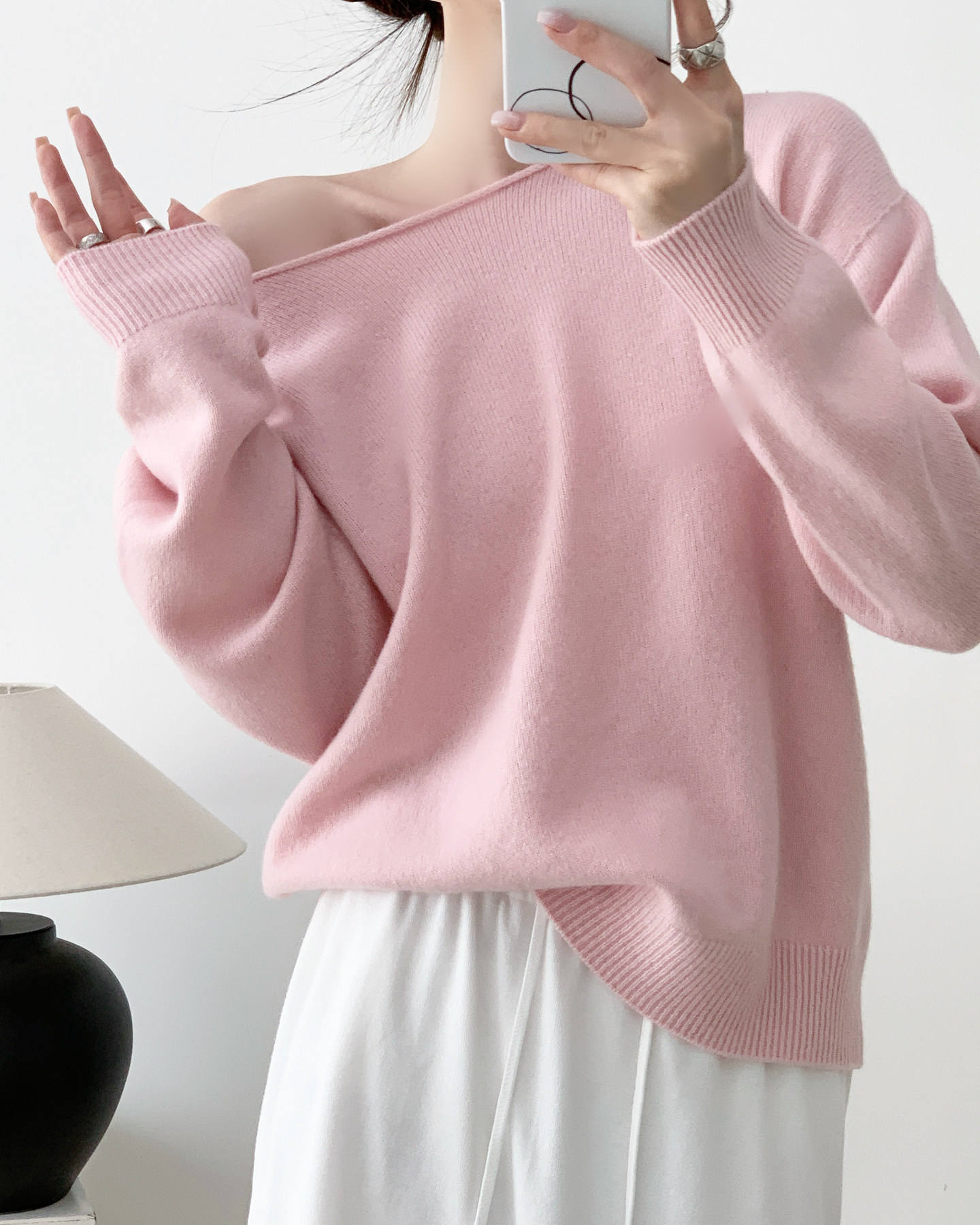 多巴胺雲朵 無縫一體羊絨衫 桃花粉