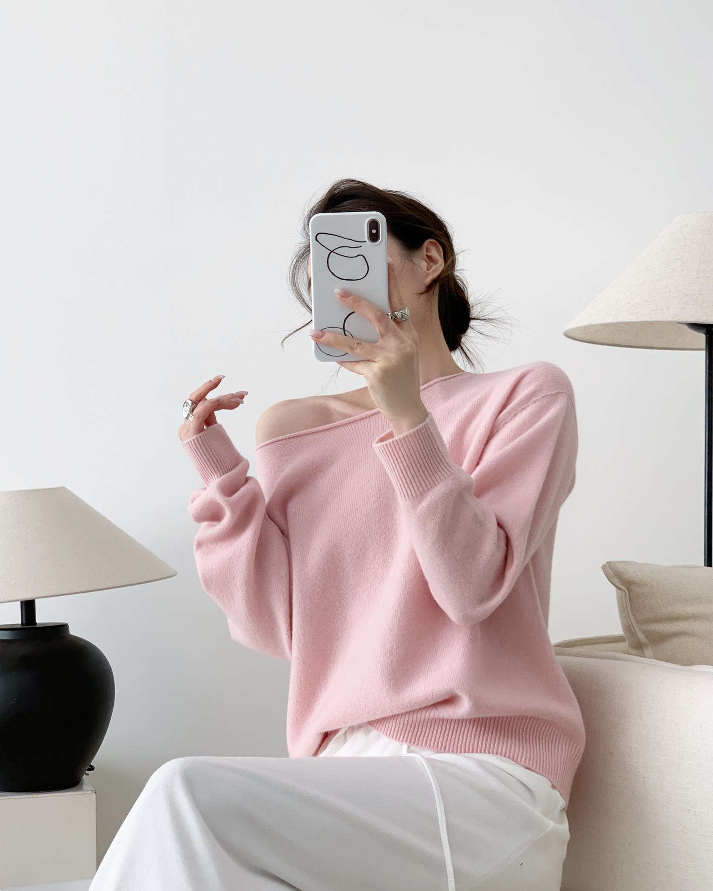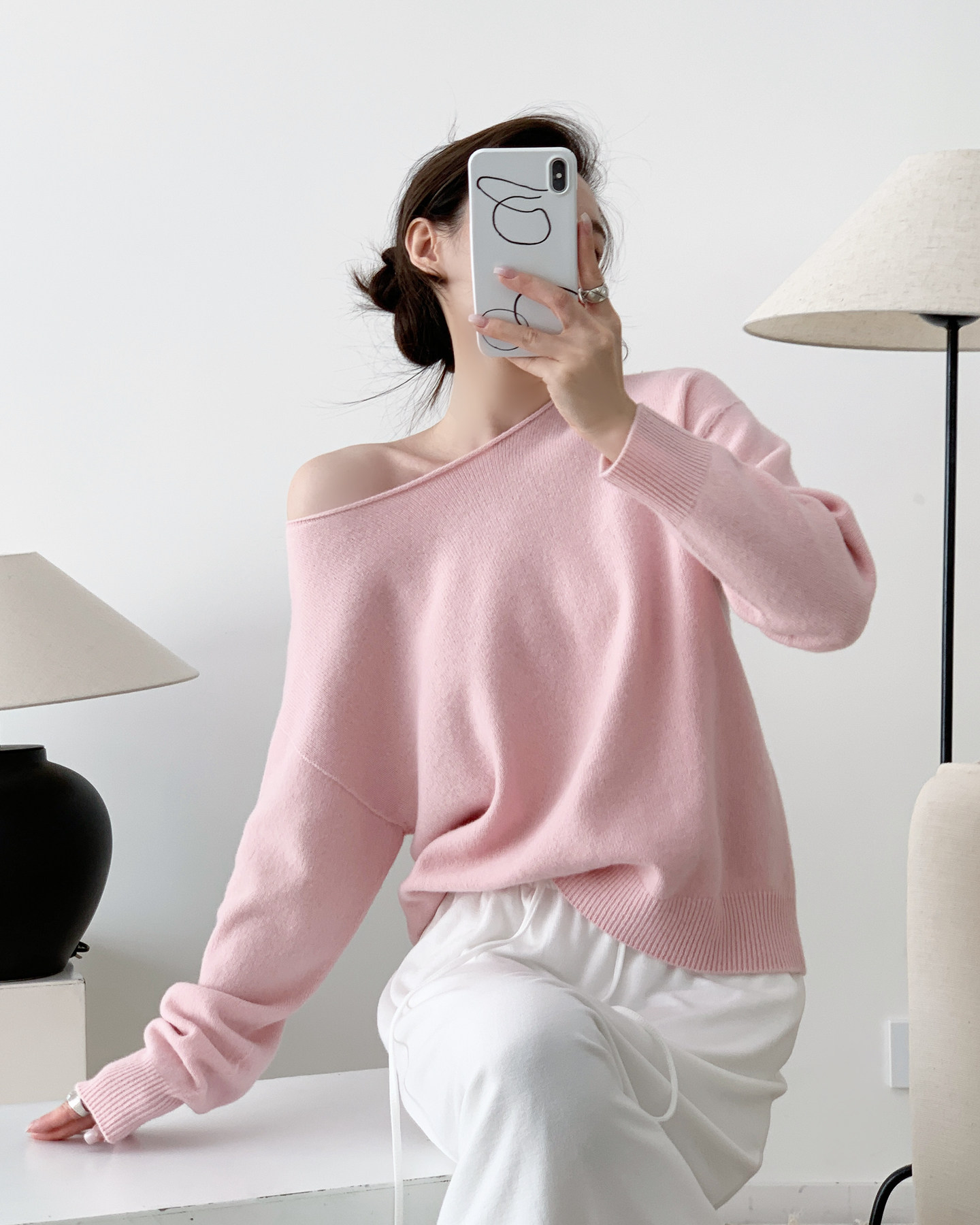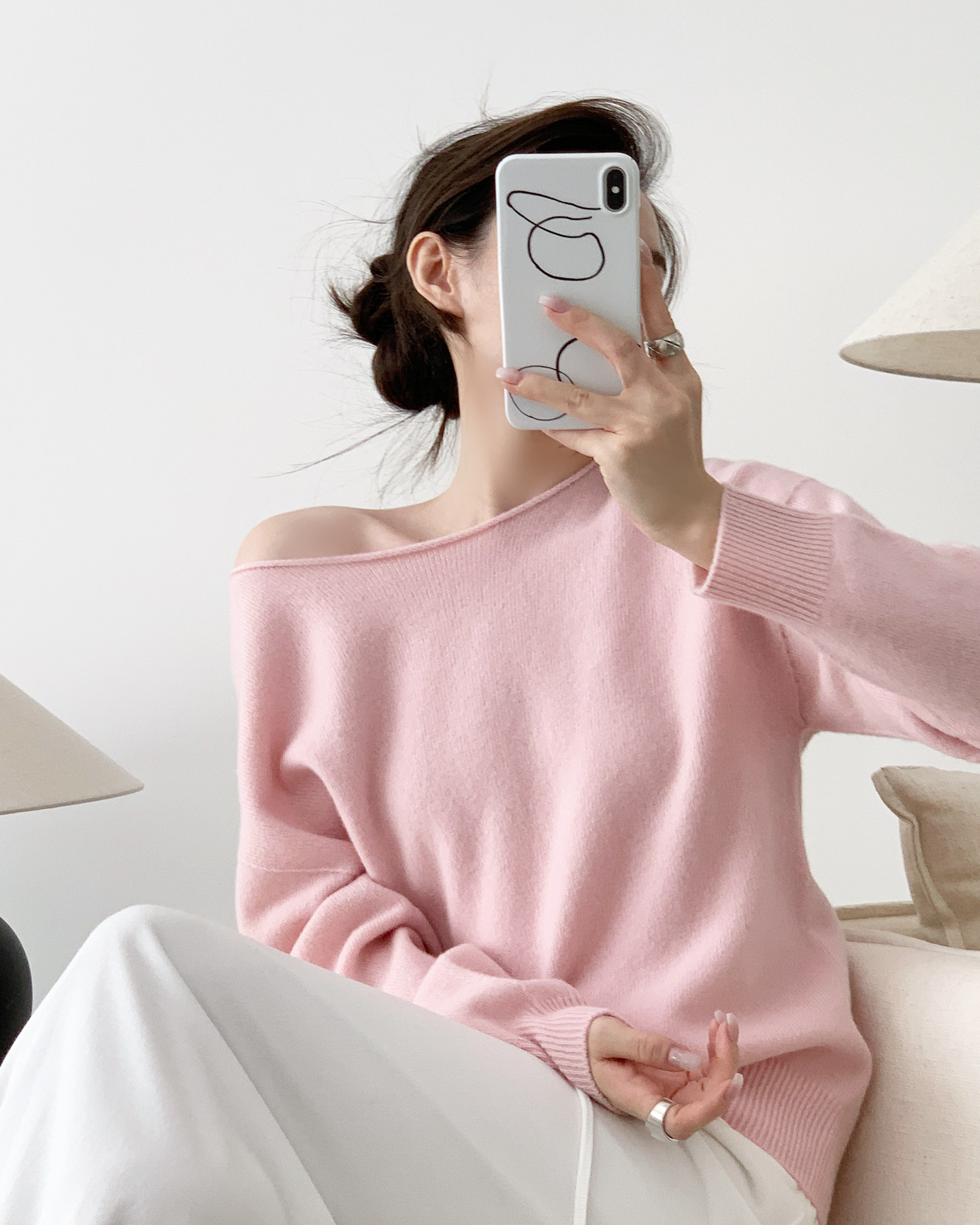 多巴胺雲朵 無縫一體羊絨衫 桃花粉