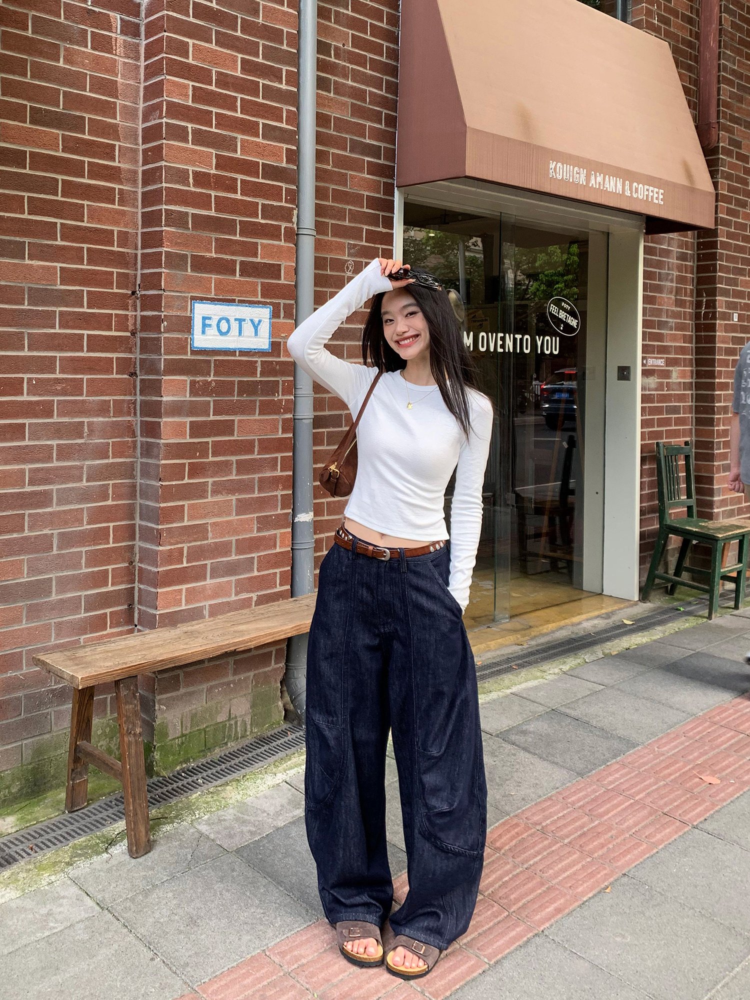 週末漫步 輪廓寬鬆彎刀褲 棕