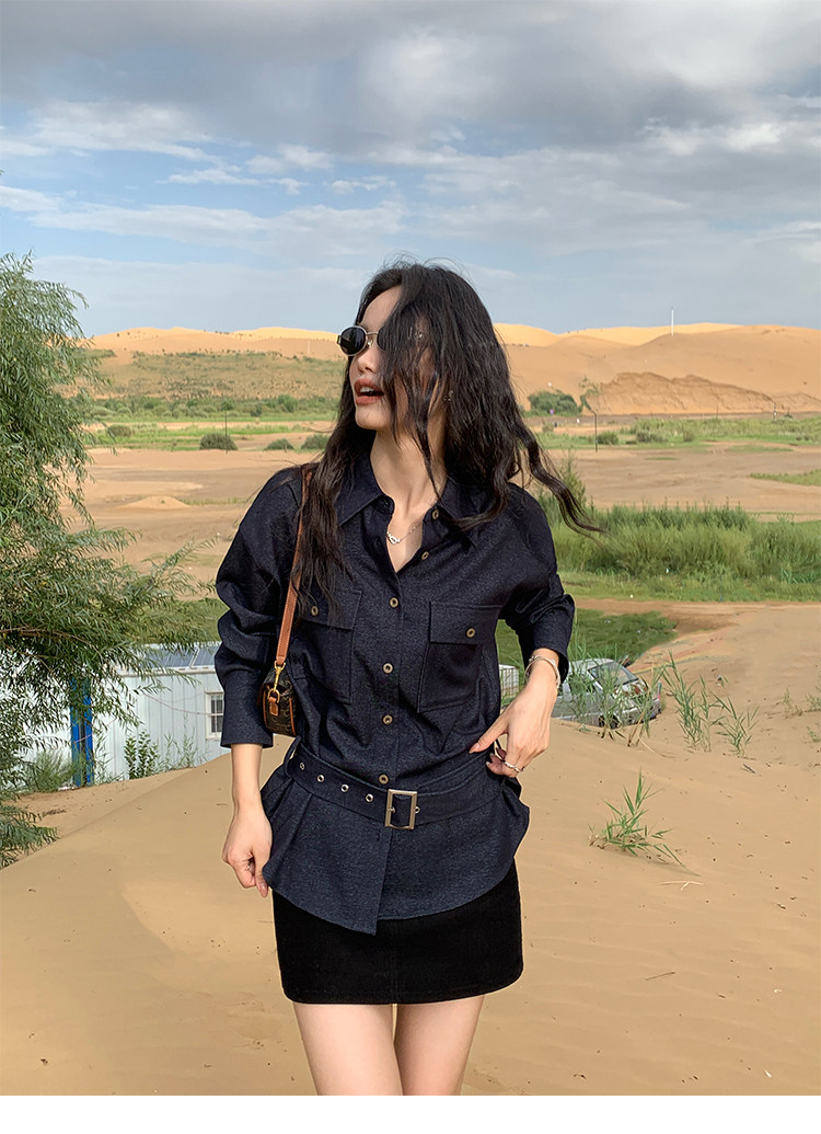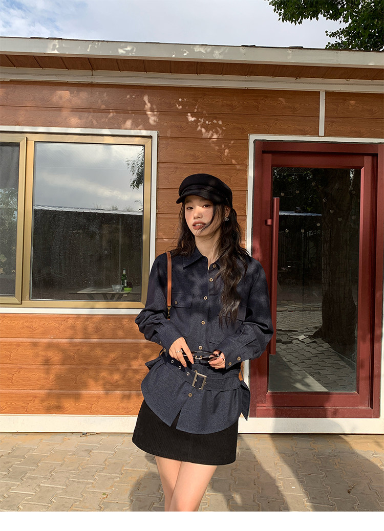 設計感工裝 復古拖地彎刀褲 藏藍