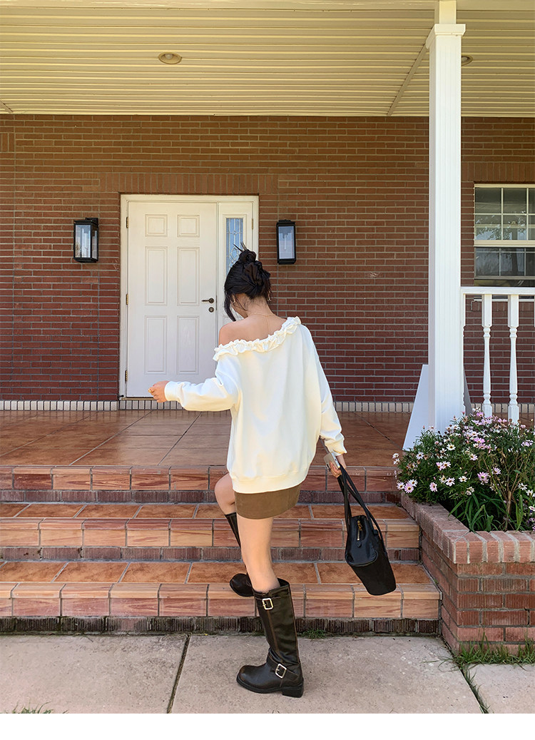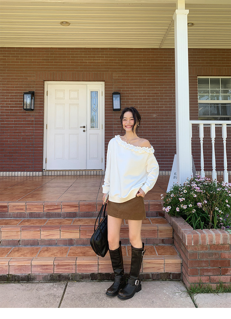 週末漫步 輪廓寬鬆彎刀褲 白