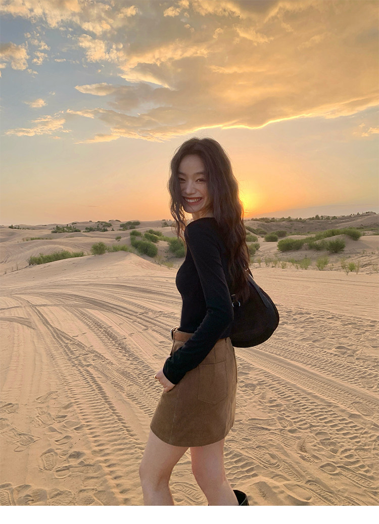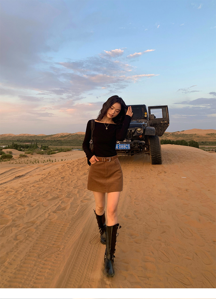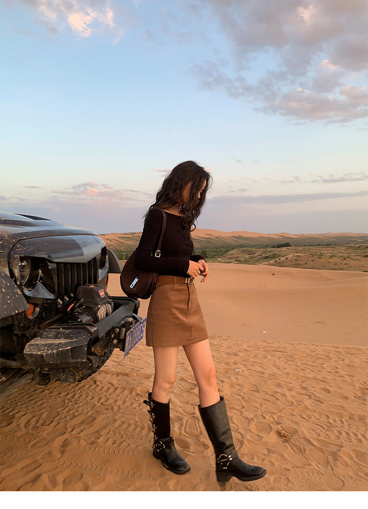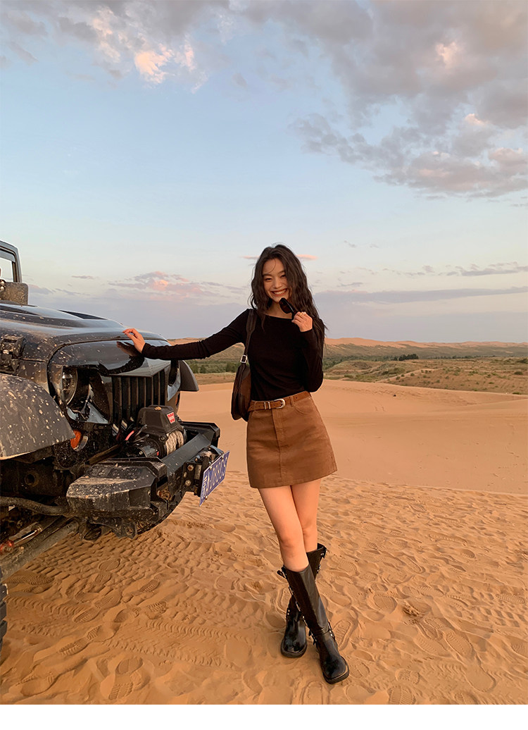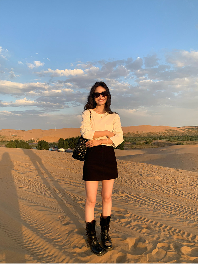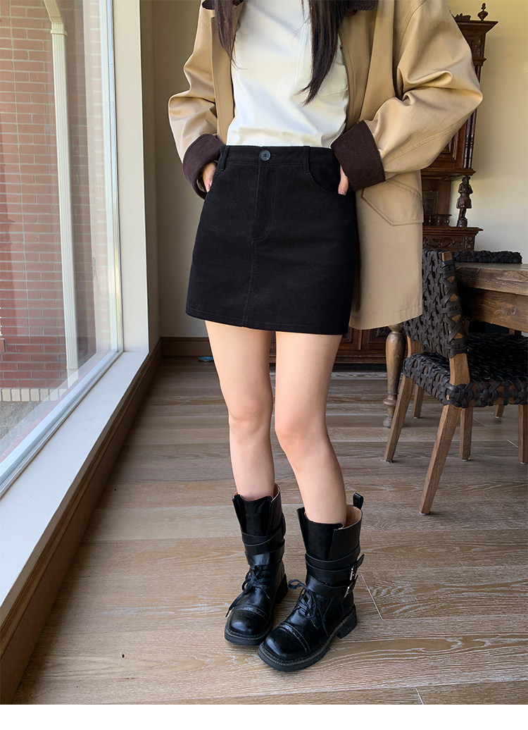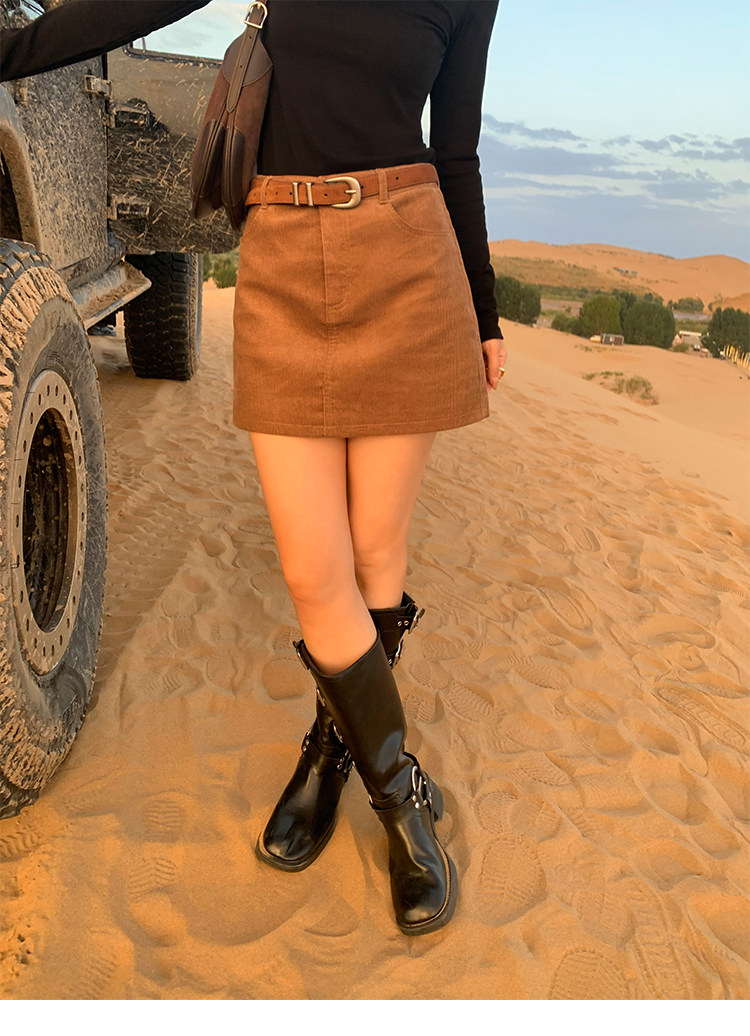 諾丁山下 燈芯絨直筒A字半裙 黃卡其