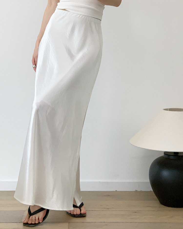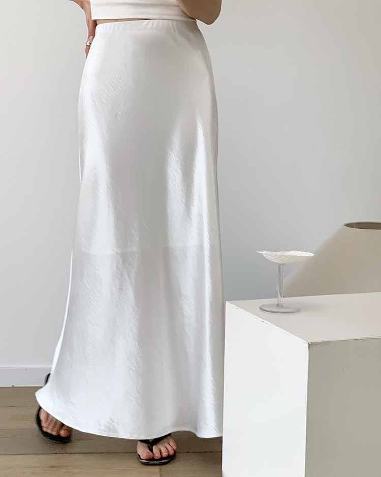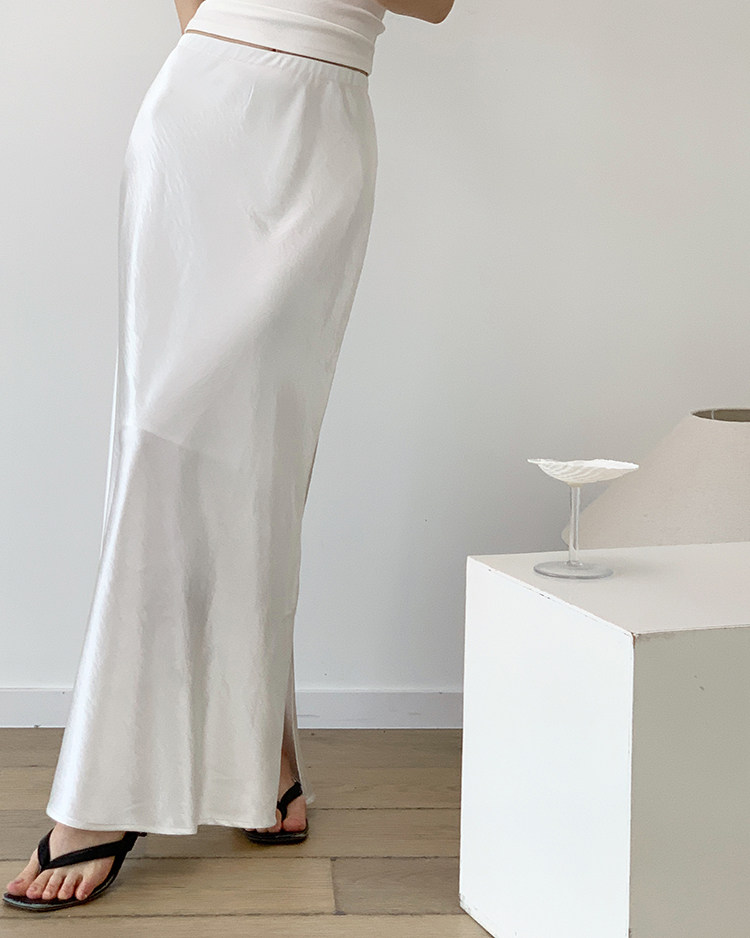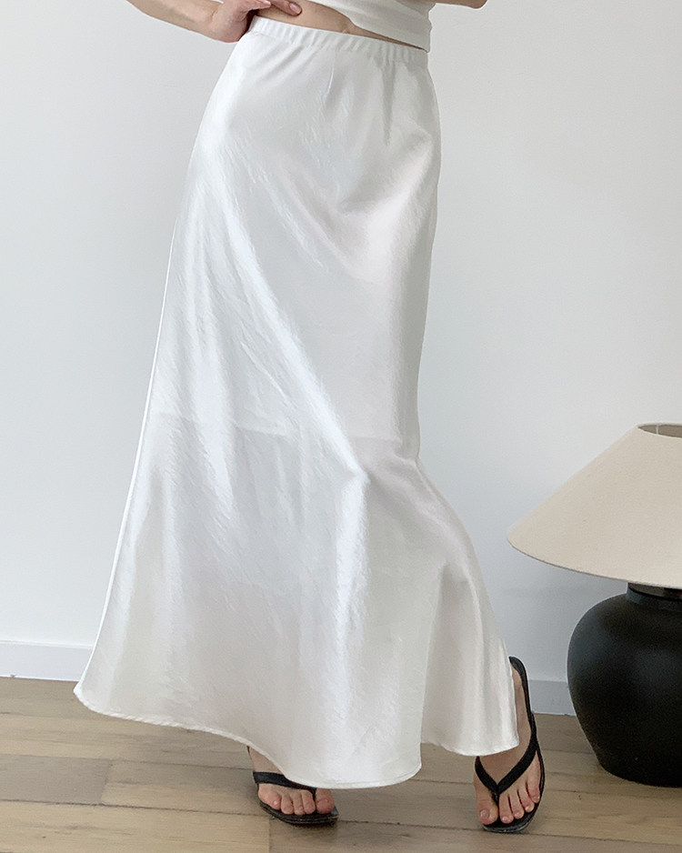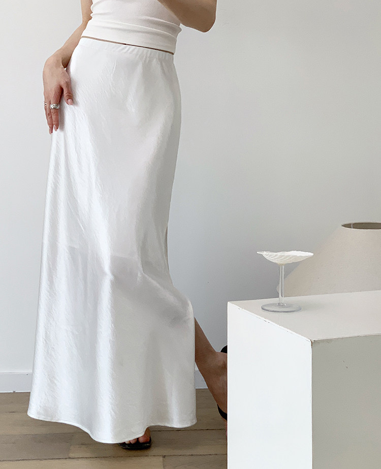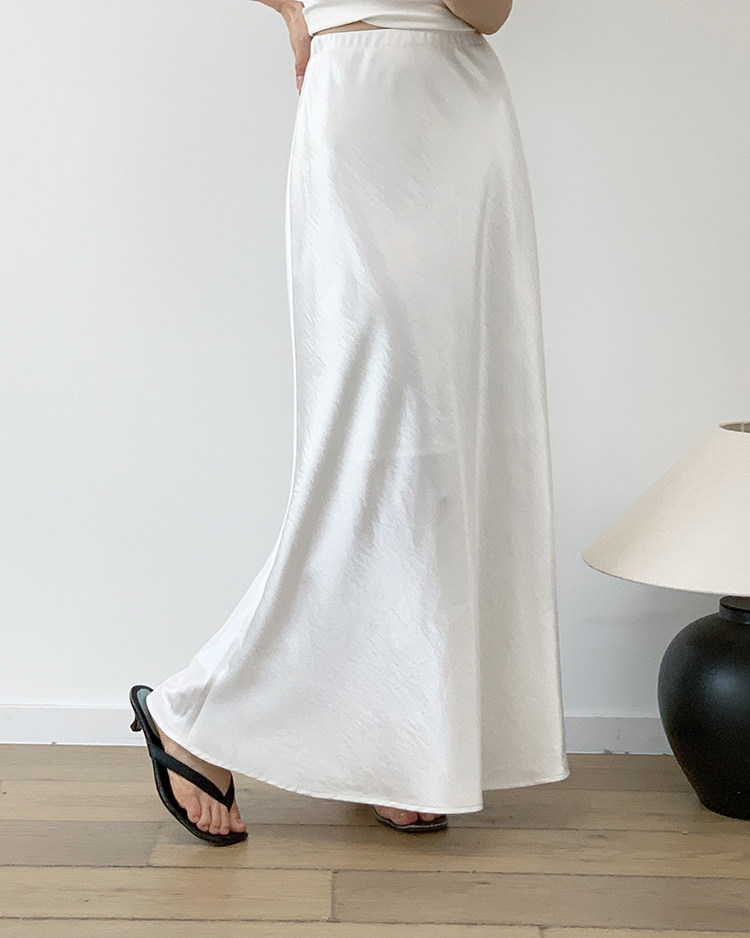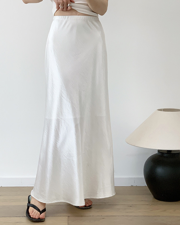鎏光微緞 銀沙白絕美仿醋酸緞面半裙
