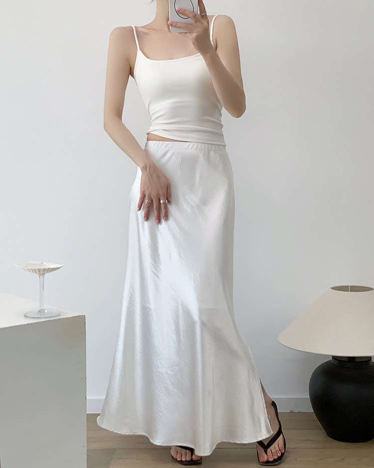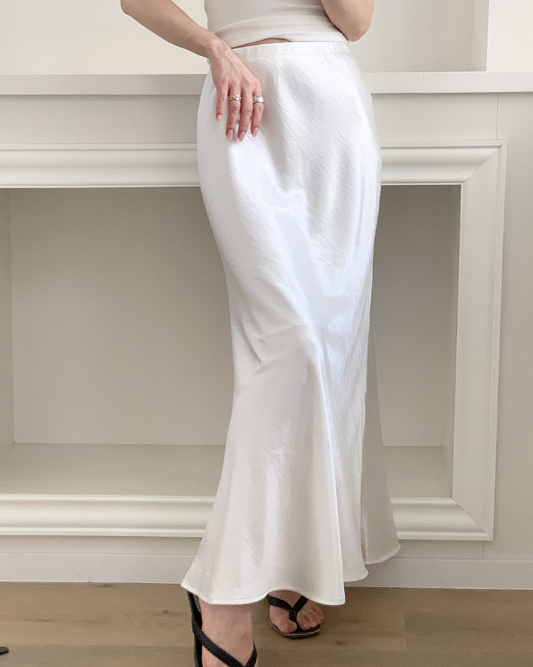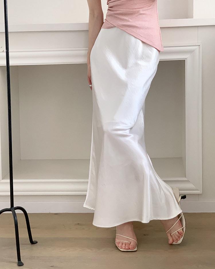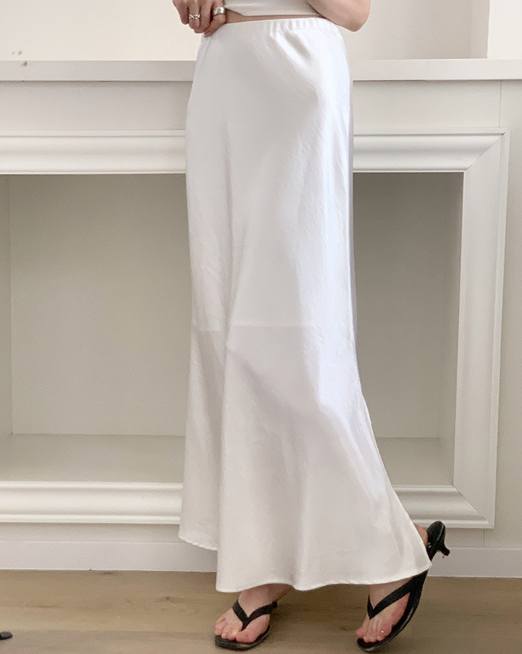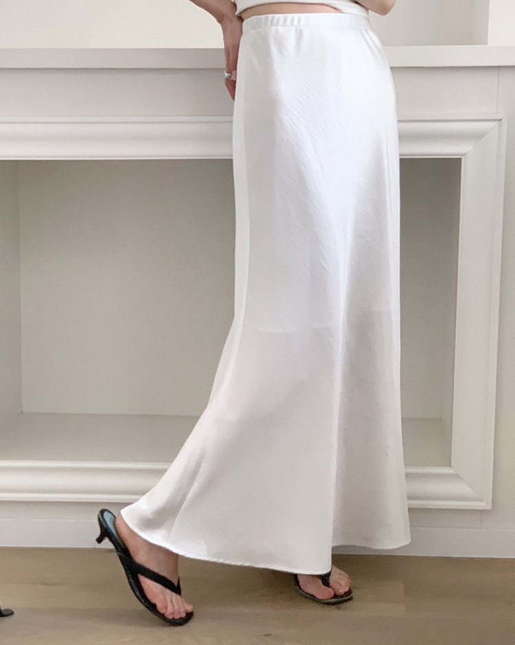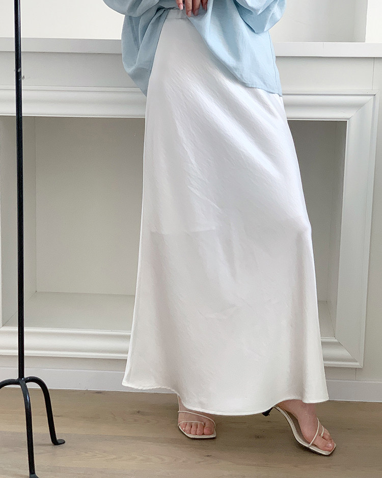 鎏光微緞 銀沙白絕美仿醋酸緞面半裙