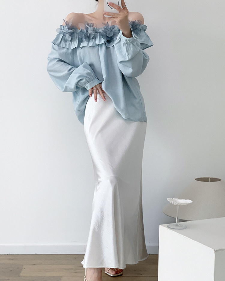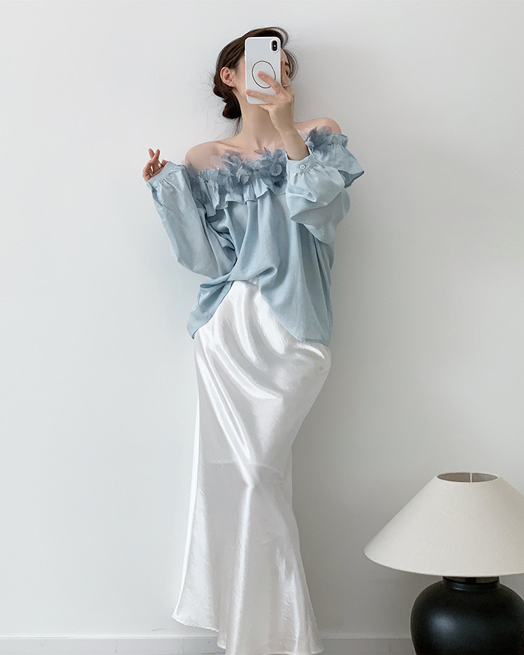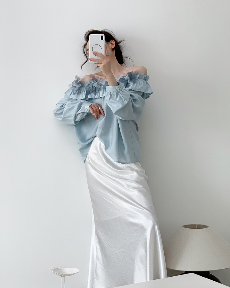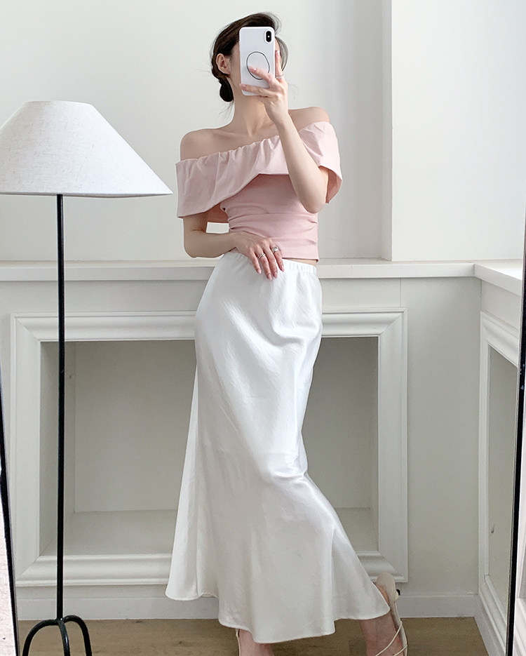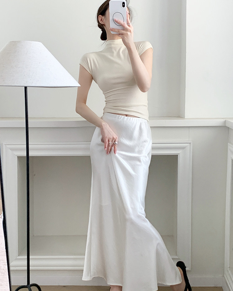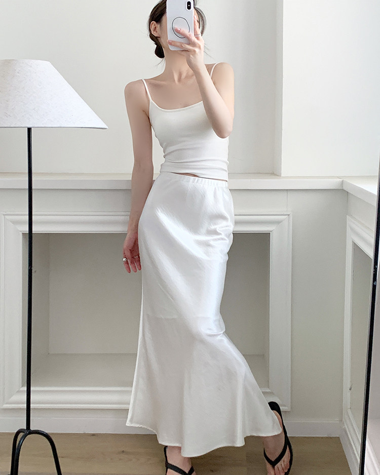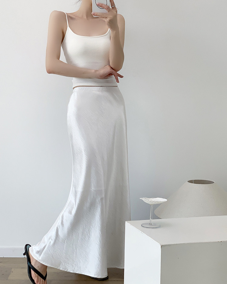 鎏光微緞 銀沙白絕美仿醋酸緞面半裙