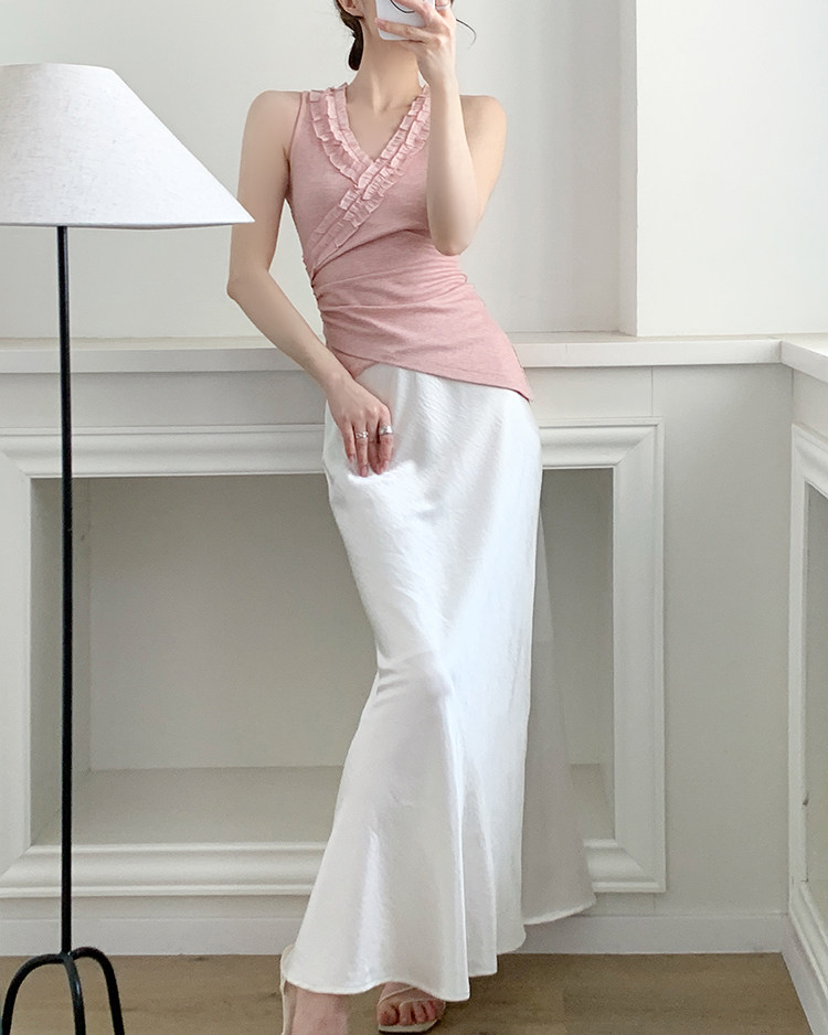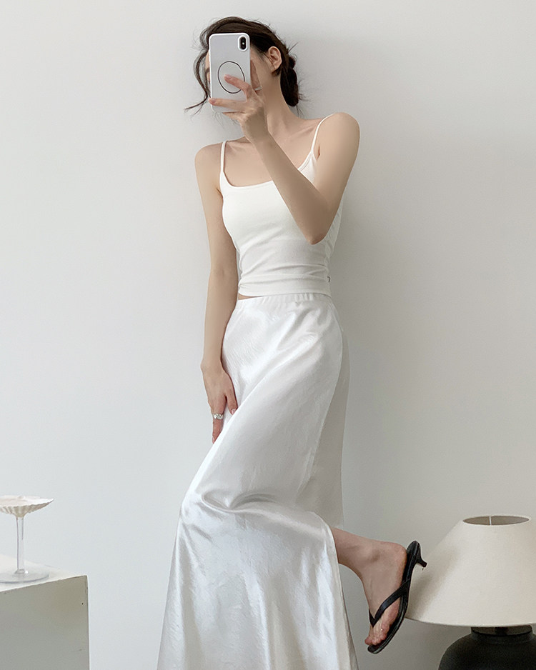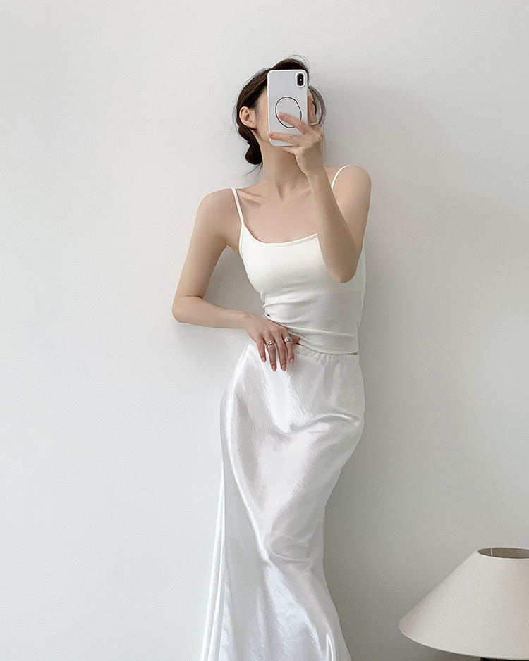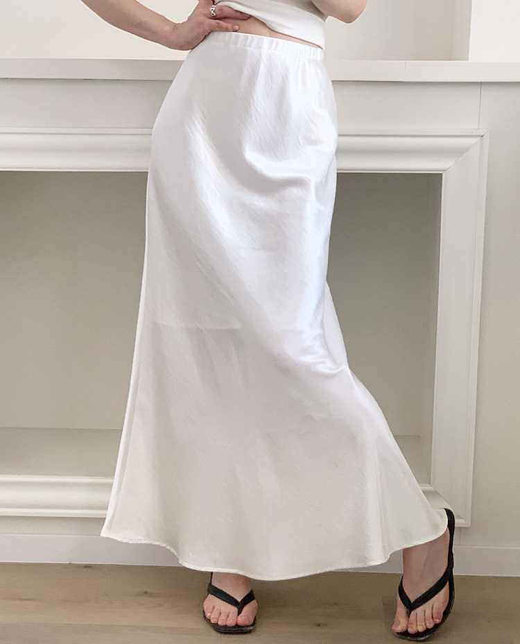仿醋酸垂感布料光澤好質感丸全不輸醋酸布料,鬆緊腰頭對身材包容度好,白色布料微微透感,給大家做了長度在膝蓋下的襯布,跟在大腿處的襯布長度相比會更不明顯,斜裁工藝裙型貼合身材曲線修身顯瘦橫向有量無束縛感。