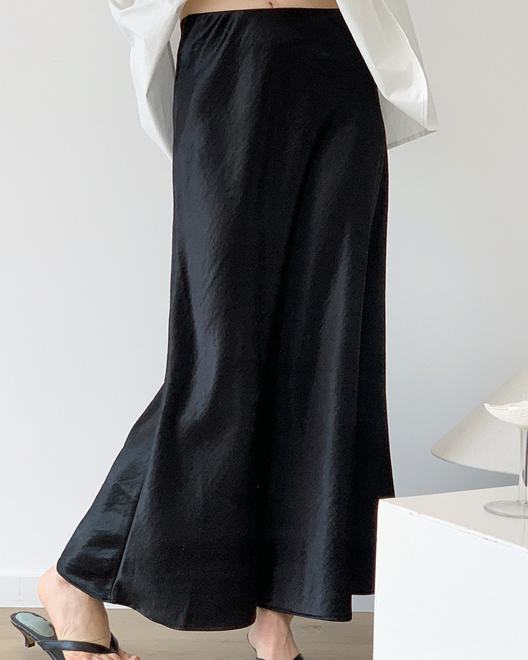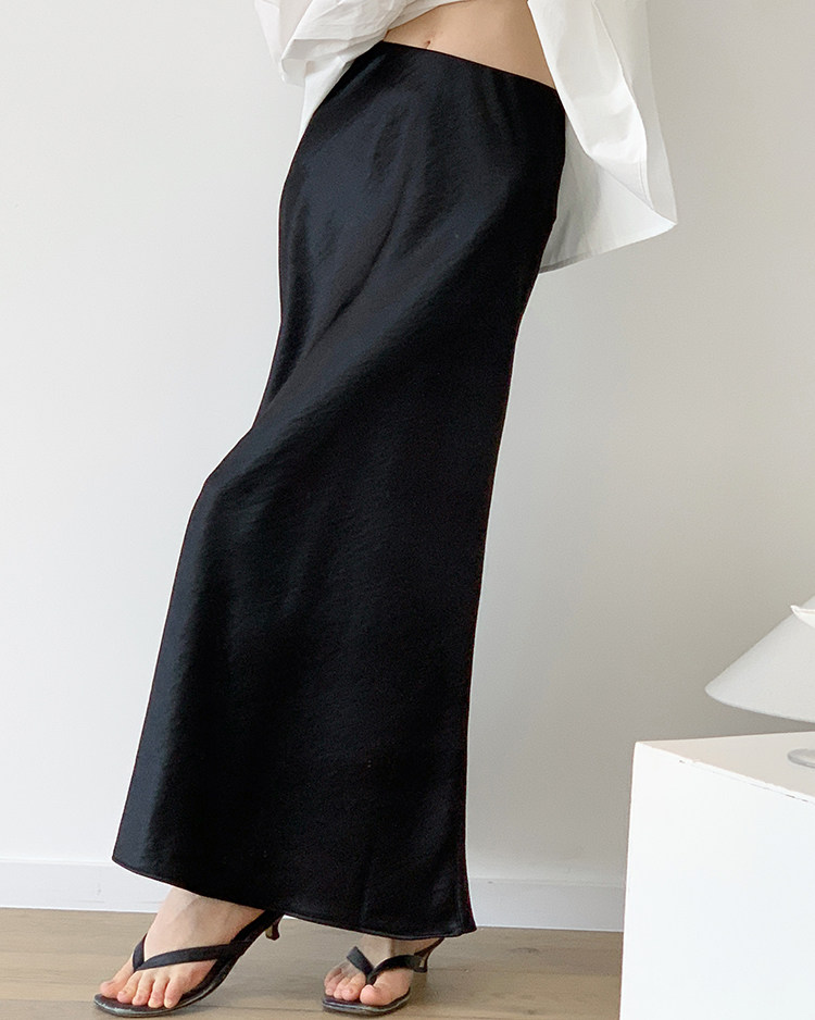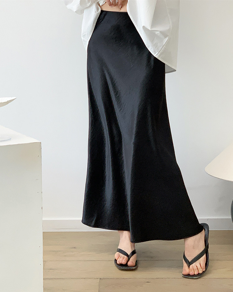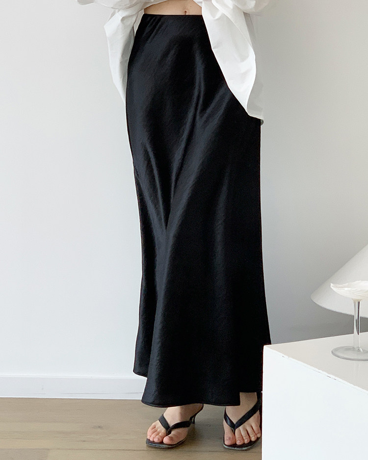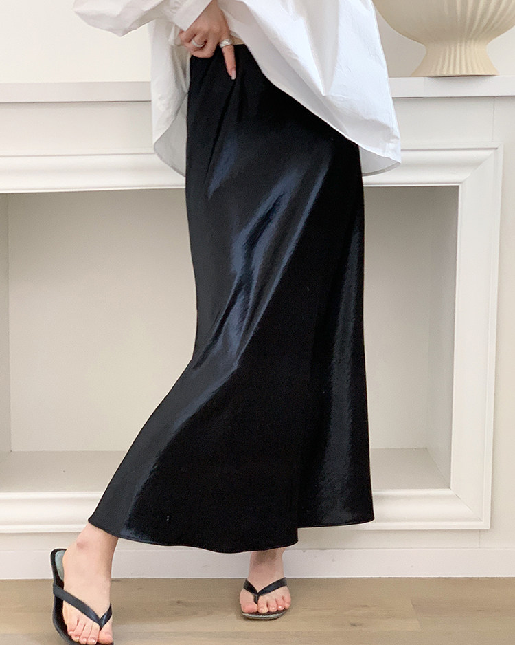 韓系赫本 光澤肌理感緞面黑半裙 數量